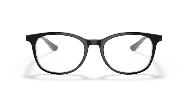 Ray-Ban RB5433 Optics features a sleek and modern design, perfect for those who want to make a statement. The pillow-shaped frame is flattering on all face shapes, while the black on transparent color adds a touch of sophistication. These eyeglasses are sure to turn heads wherever you go.frontOuterColor:Black On Transparent,bridgeSize:5219,color:Polished Black On Transparent,shape:Pillow,templeLength:140,templeColor:Black On Transparent,description:Black,materialPrimary:Acetate