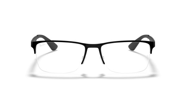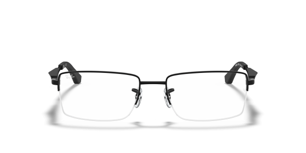 Never miss a beat. This rectangular half-rim Ray-Ban look in high-shine acetate has a comfotable molded bridge and adjustable nose pads, with sculpted arms and flared arm tips for wearability.frontOuterColor:Black,bridgeSize:5417,color:Matte Black,shape:Rectangle,templeLength:145,templeColor:Black,description:Black,materialPrimary:Metal