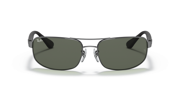 Ray-Ban \u00ae RB3379 men’s Sunglasses are a monel constructed navigator with a contoured, rectangular shape and a wrapped fit. Each of the nose pads and propionate plastic temples are engraved as well as an embossed with a Ray-Ban signature logo. Available with polarized lenses. frontOuterColor:Gunmetal,bridgeSize:6415,color:Polished Gunmetal,shape:Rectangle,templeLength:130,templeColor:Black,description:Silver,materialPrimary:Metal
