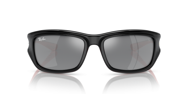 Ray-Ban RB4414M Scuderia Ferrari Collection sunglasses are perfect for those who want to make a statement. The matte black frame, silver mirror lenses, and irregular shape all add to the edgy and sporty look of these shades. Plus, with the iconic Ferrari branding on the temples, you’ll be sure to turn heads wherever you go.frontOuterColor:Black,bridgeSize:5817,color:Matte…