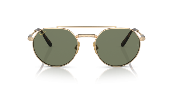 As edgy as it is smooth, the Jack is pure Ray-Ban fusion. The slim metal frame is a riff on two i-shape icons \u2013 Round and Hexagonal. The Jack joins the Titanium family, featuring world-renowned Japanese craftsmanship, immaculate design and high-end quality. Available in classic colours with an ultra-lightweight, Made-in-Japan frame.frontOuterColor:Gold,bridgeSize:5320,color:Polished Gold,shape:Irregular,templeLength:145,templeColor:Gold,materialSecondary:Premium Materials,description:Gold,materialPrimary:Titanium