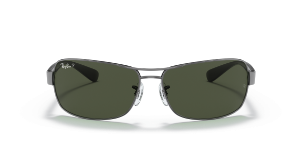 Ray-Ban \u00ae RB3379 men’s Sunglasses are a monel constructed navigator with a contoured, rectangular shape and a wrapped fit. Each of the nose pads and propionate plastic temples are engraved as well as an embossed with a Ray-Ban signature logo. Available with polarized lenses. frontOuterColor:Gunmetal,bridgeSize:6415,color:Polished Gunmetal,shape:Rectangle,templeLength:130,templeColor:Black,description:Silver,materialPrimary:Metal