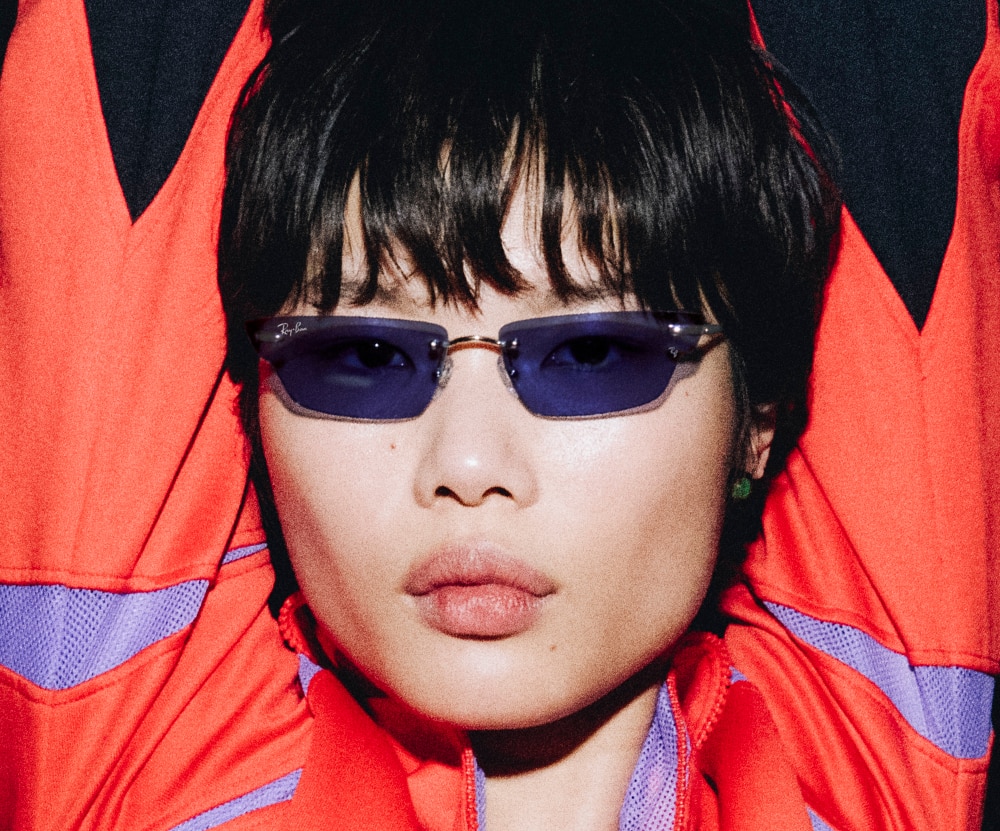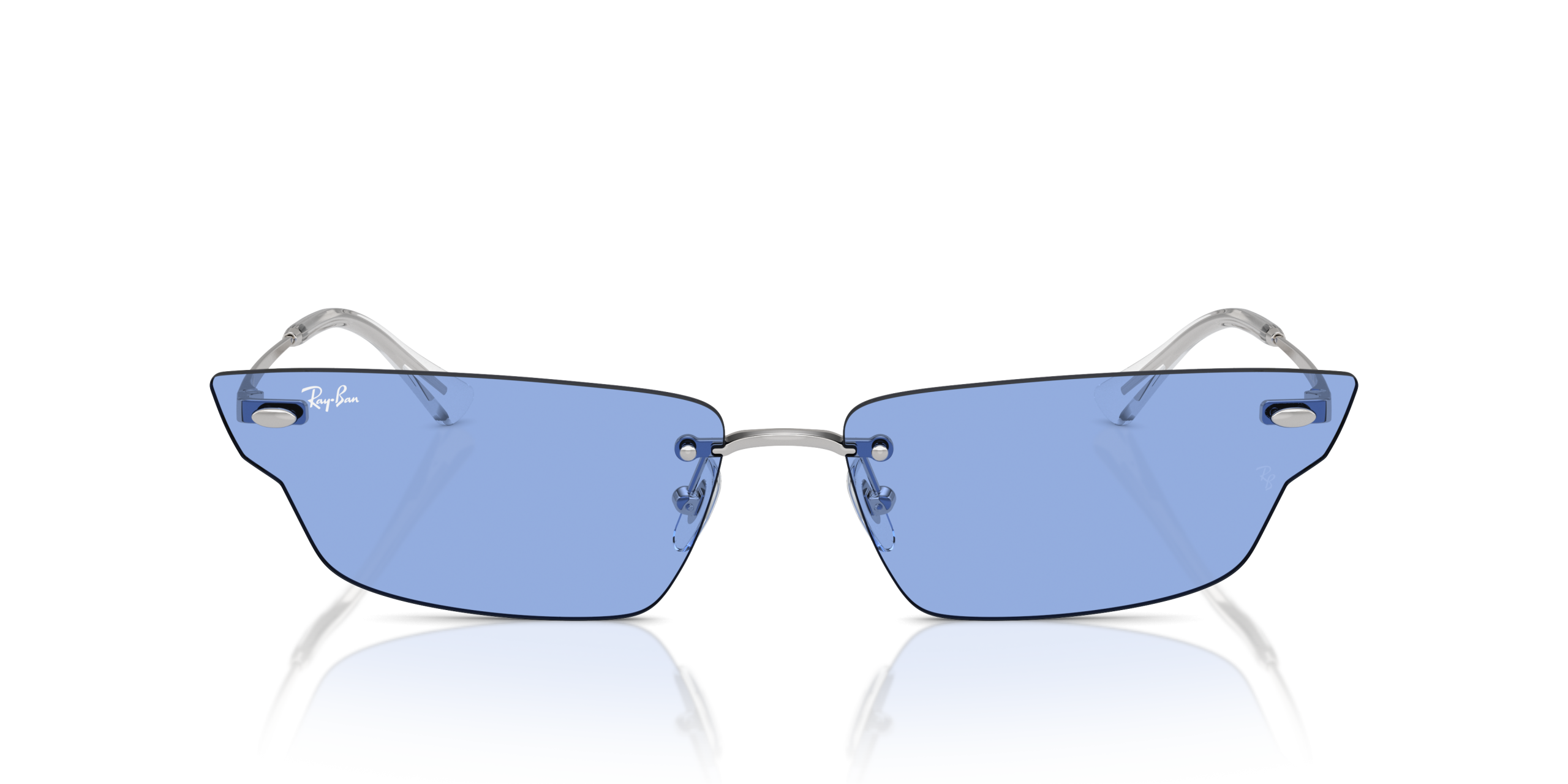 Ahn is a new Y2K-inspired butterfly shape with a thin metal frame and bio-nylon* lenses. Limited edition silver frame and blue lenses available only in Ray-Ban stores and rayban.com.