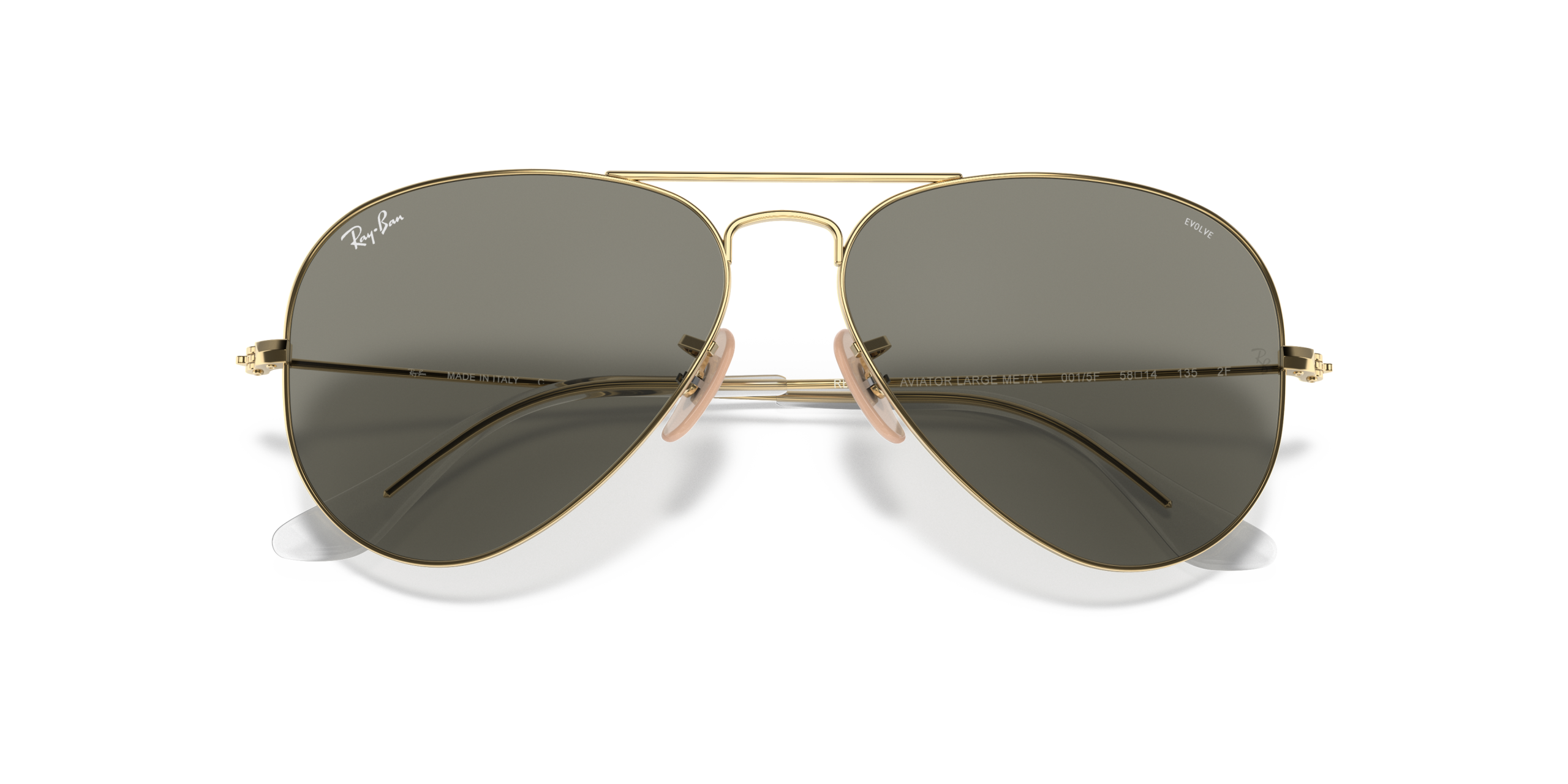 Currently one of the most iconic sunglass models in the world, Aviator shades were originally designed for U.S. aviators in 1937. Today, Aviator is available with photochromic lenses that shift from clear to grey in changing light conditions \u2013 so you’ll never need to take them off. Aviator Clear Evolve combines timeless design with exceptional quality, performance and protection. The slim metal frames are set with crystal lenses for maximum clarity; they filter 100% of UV rays and feature a front-side anti-reflective treatment. From sunrise run to sunset bar, if they’re always on you’re always covered.