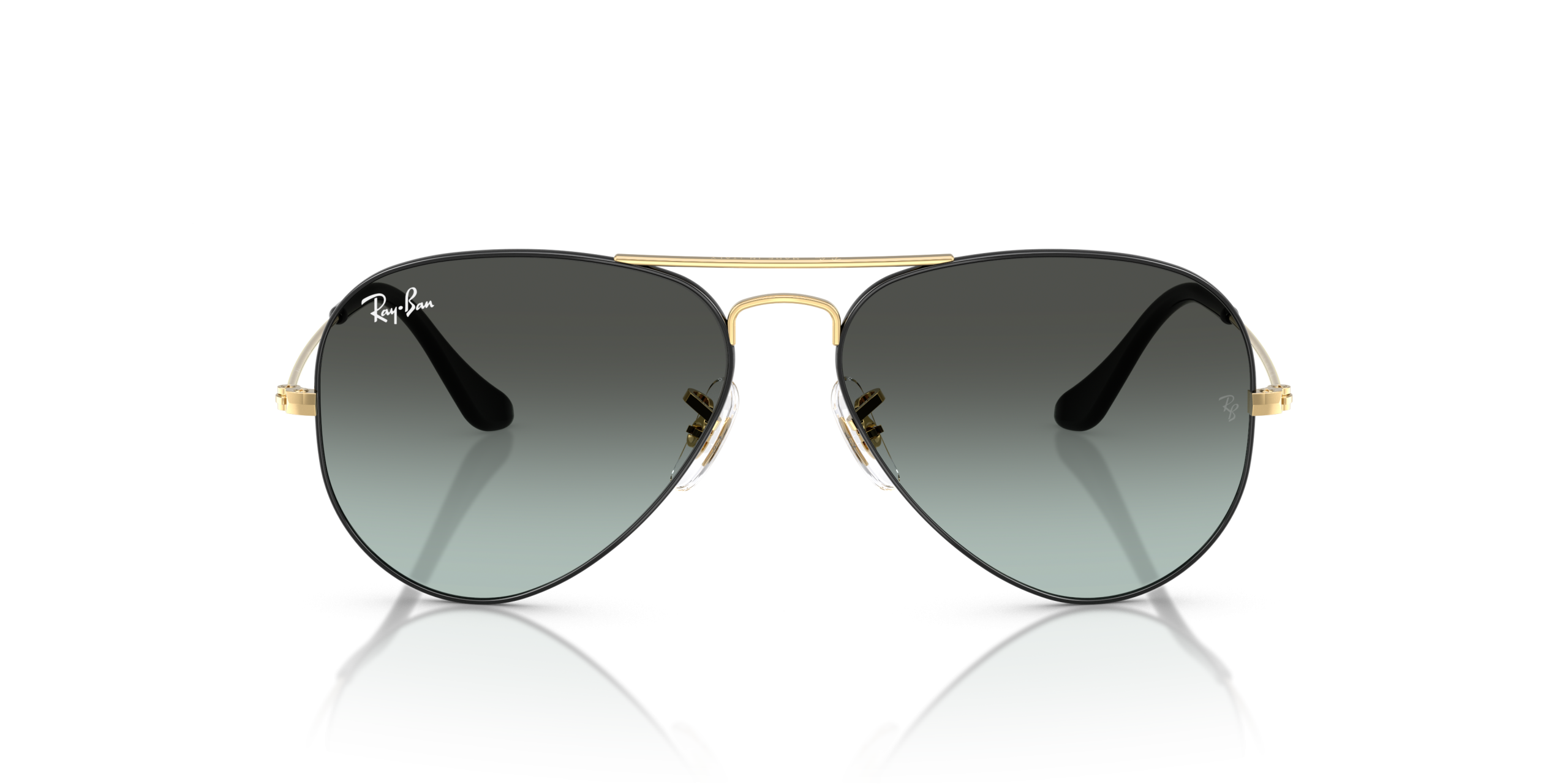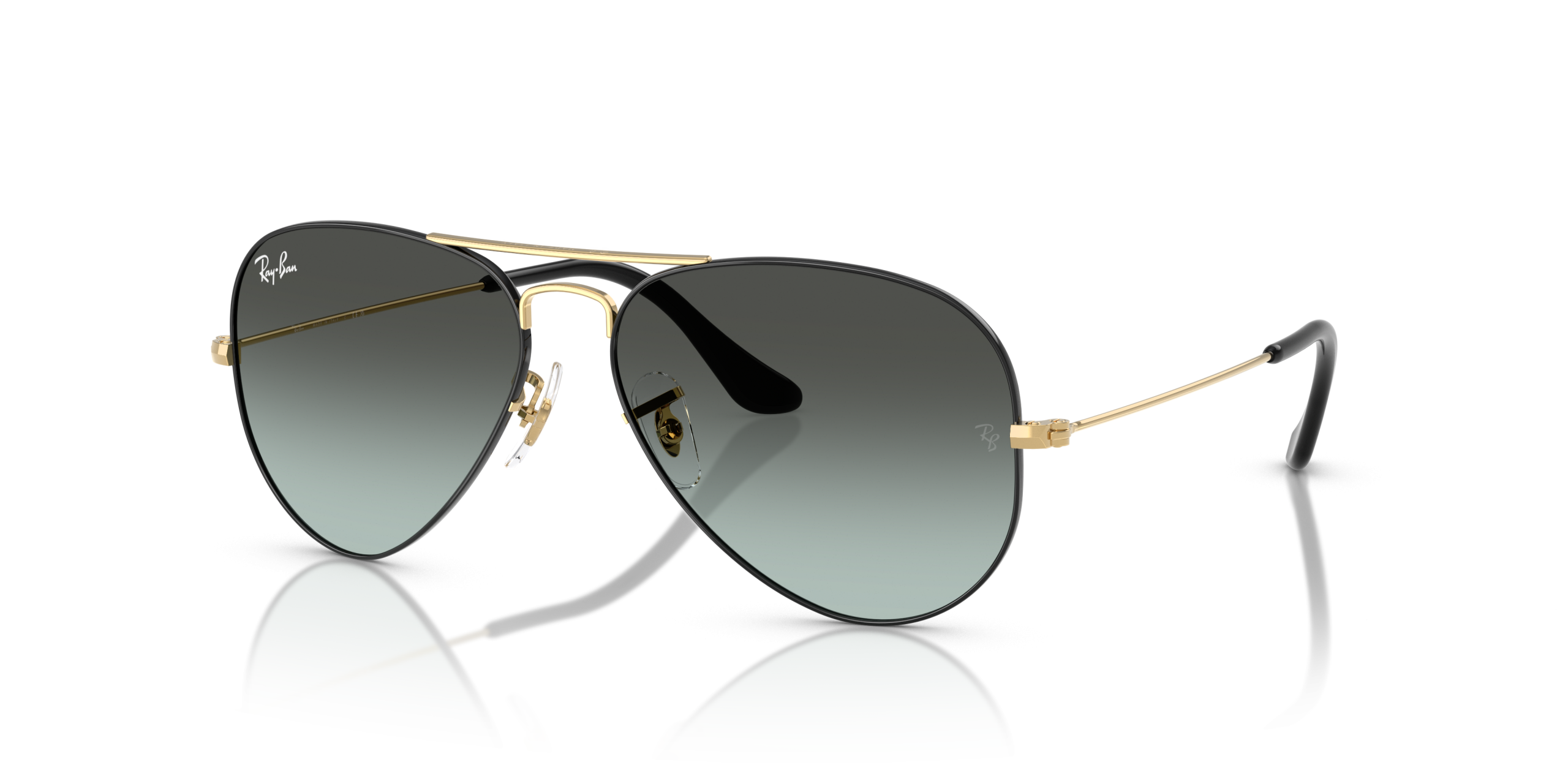 Personalize your favorite frames with our range of custom sunglasses. Create your own custom Aviator and stand out from the crowd. Ray-Ban Aviator Large Metal pilot-shaped sunglasses in frame color black on arista are an iconic style that has been popular for decades. This modern touch to the classic pilot silhouette adds a sleek touch, while the blue vintage gradient black lenses provide 100% UV protection, making them perfect for everyday wear.