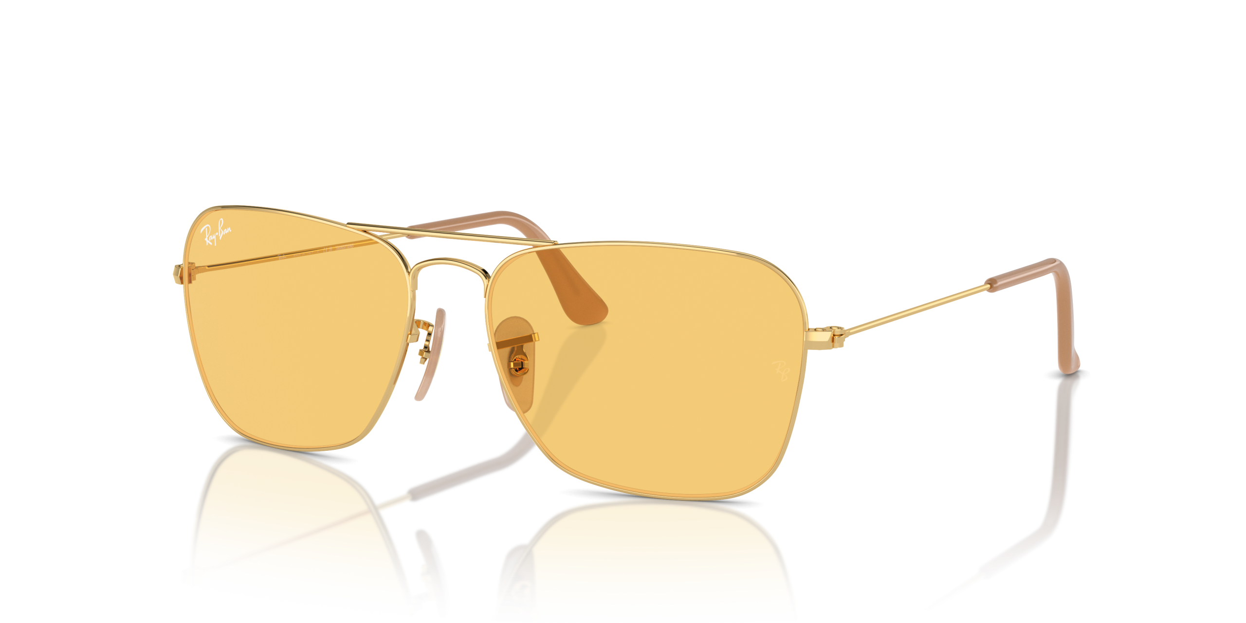 Personalize your favorite frames with our range of custom sunglasses. Create your own custom Caravan and stand out from the crowd. Featuring yellow Ambermatic lenses from the Ray-Ban archive, the new limited-edition Caravan is an inspired evolution of the classic Aviator, with square frames and lenses for a more streamlined, geometric model. Only 500 pieces available worldwide.