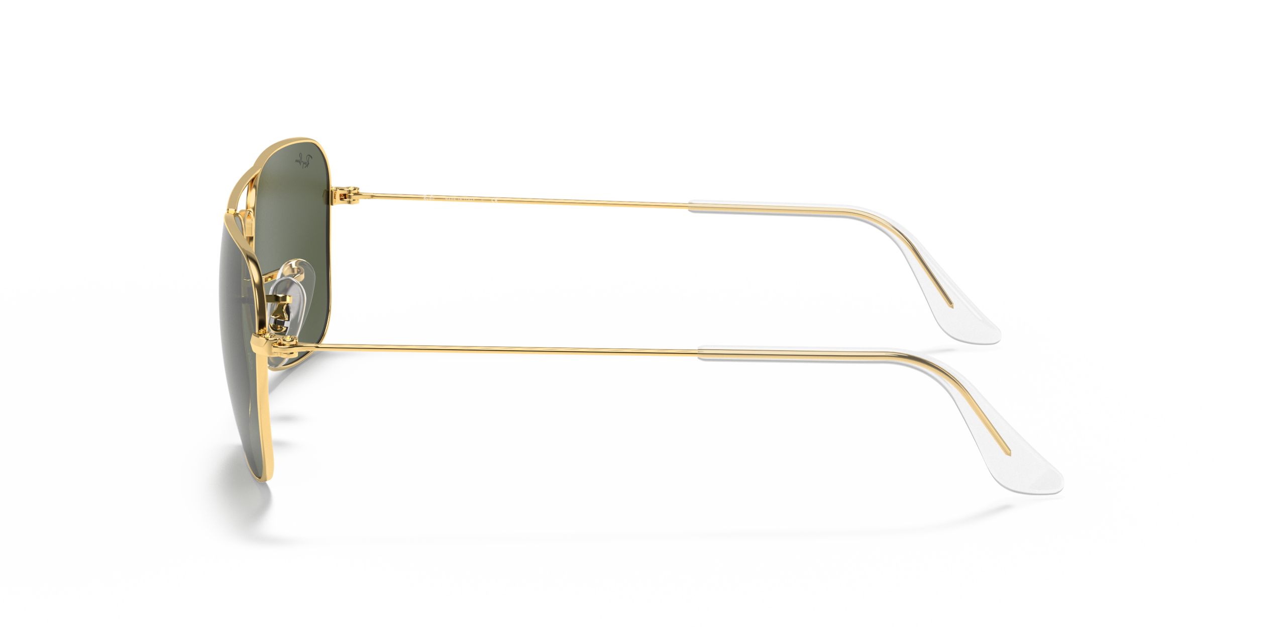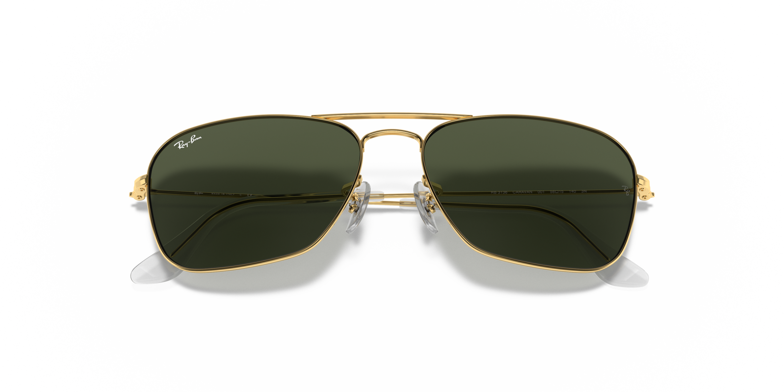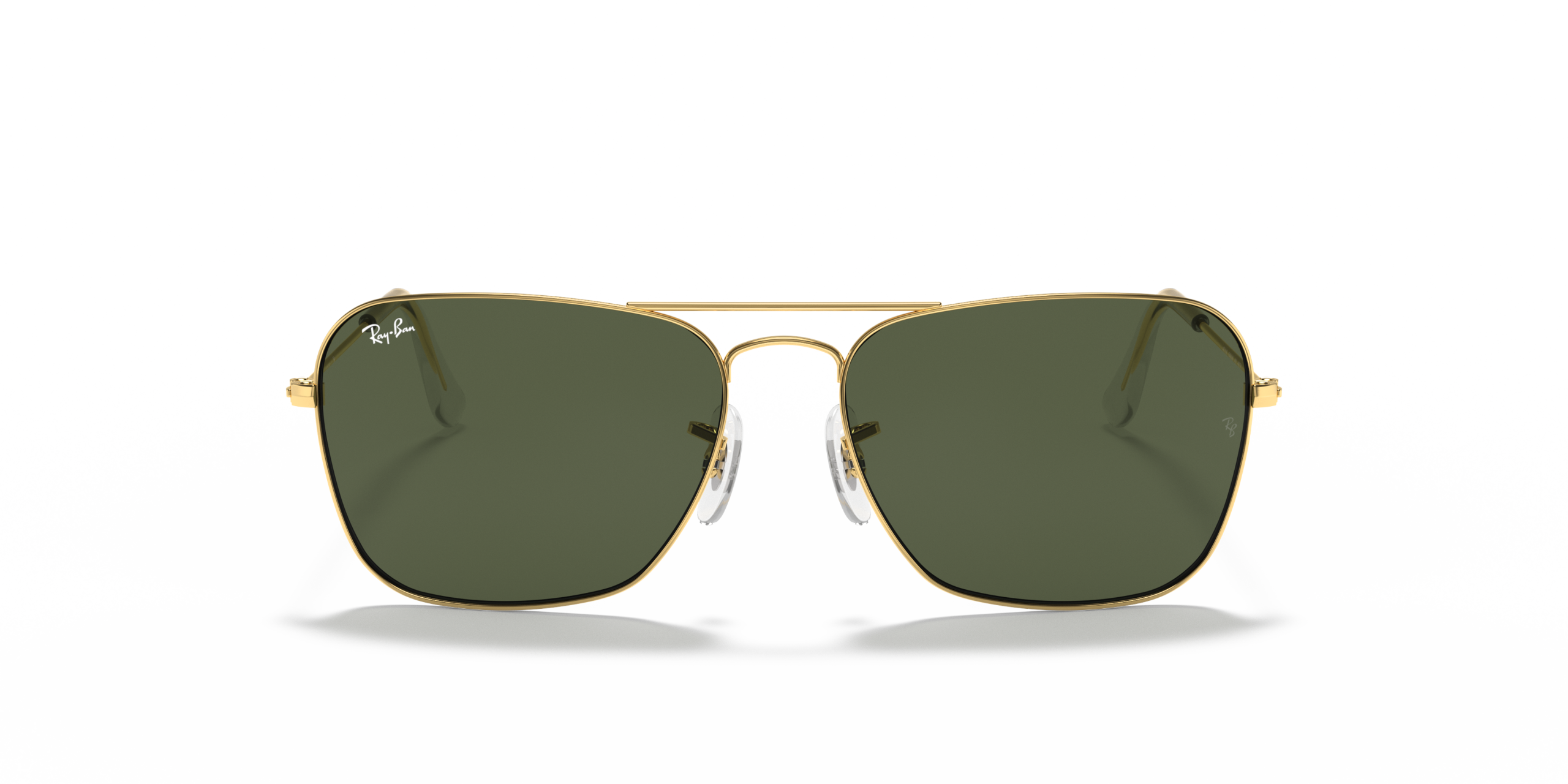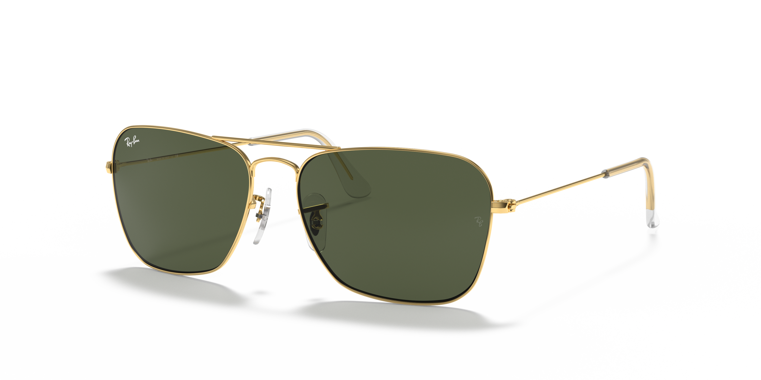 Originally launched in 1957, Ray-Ban Caravan sunglasses are a streamlined, geometric model and an alternative to the classic Aviator Sunglasses . The Ray-Ban signature logo is displayed on the nose pads and lenses. The Caravan features Square Sunglasses lenses and frames, as opposed to the teardrop lens shape sunglasses seen in the Aviator.