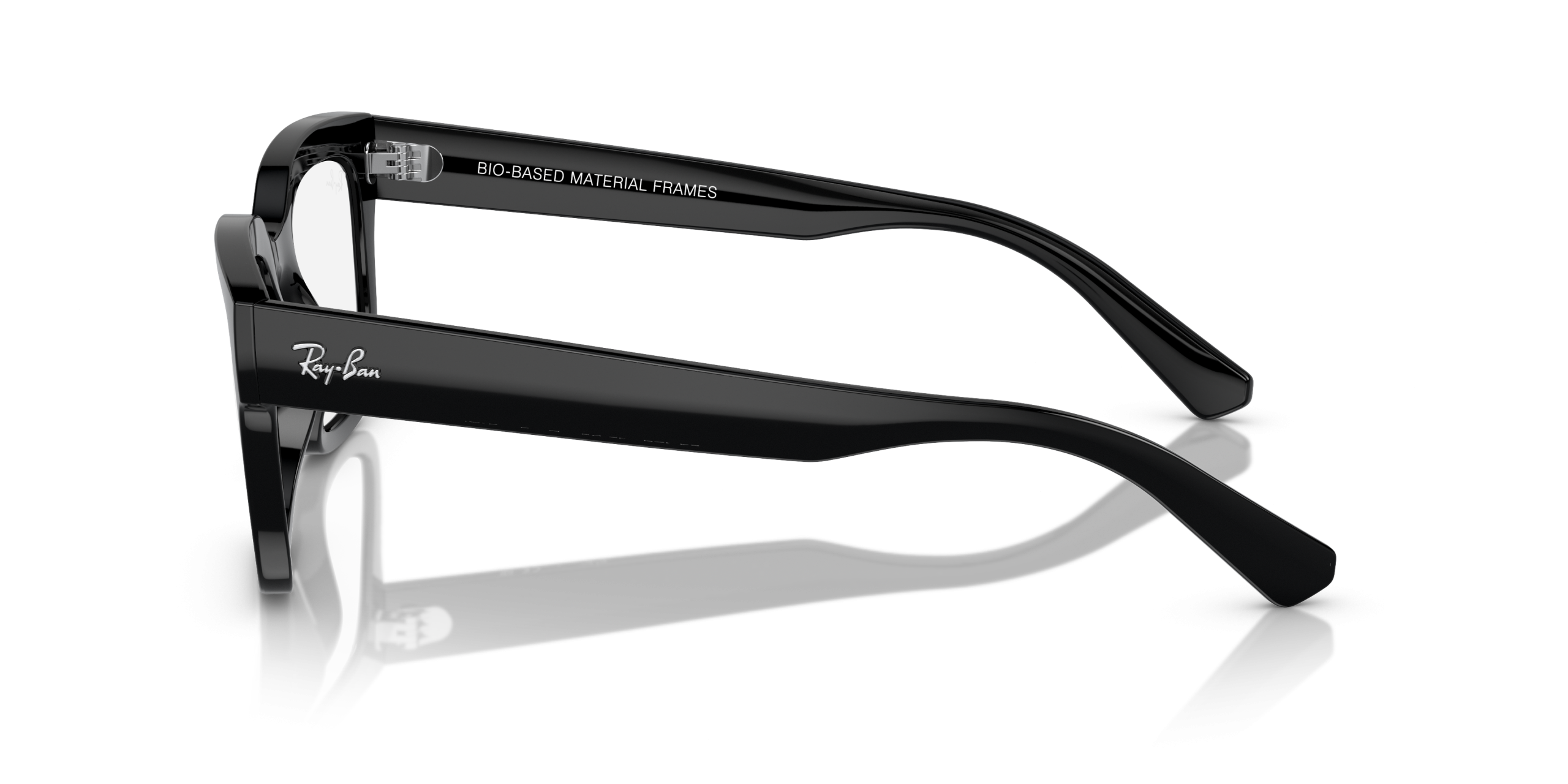 Ray-Ban RB7217 Chad Optics Bio-Based eyeglasses are an alternative way of making eyeglasses. The frame of the series is made with bio-acetate having 67% bio-based carbon content derived from plant-based sources, resulting in a frame has the same features of the traditional acetate frames. These frames are paired with black temples and clear lenses.