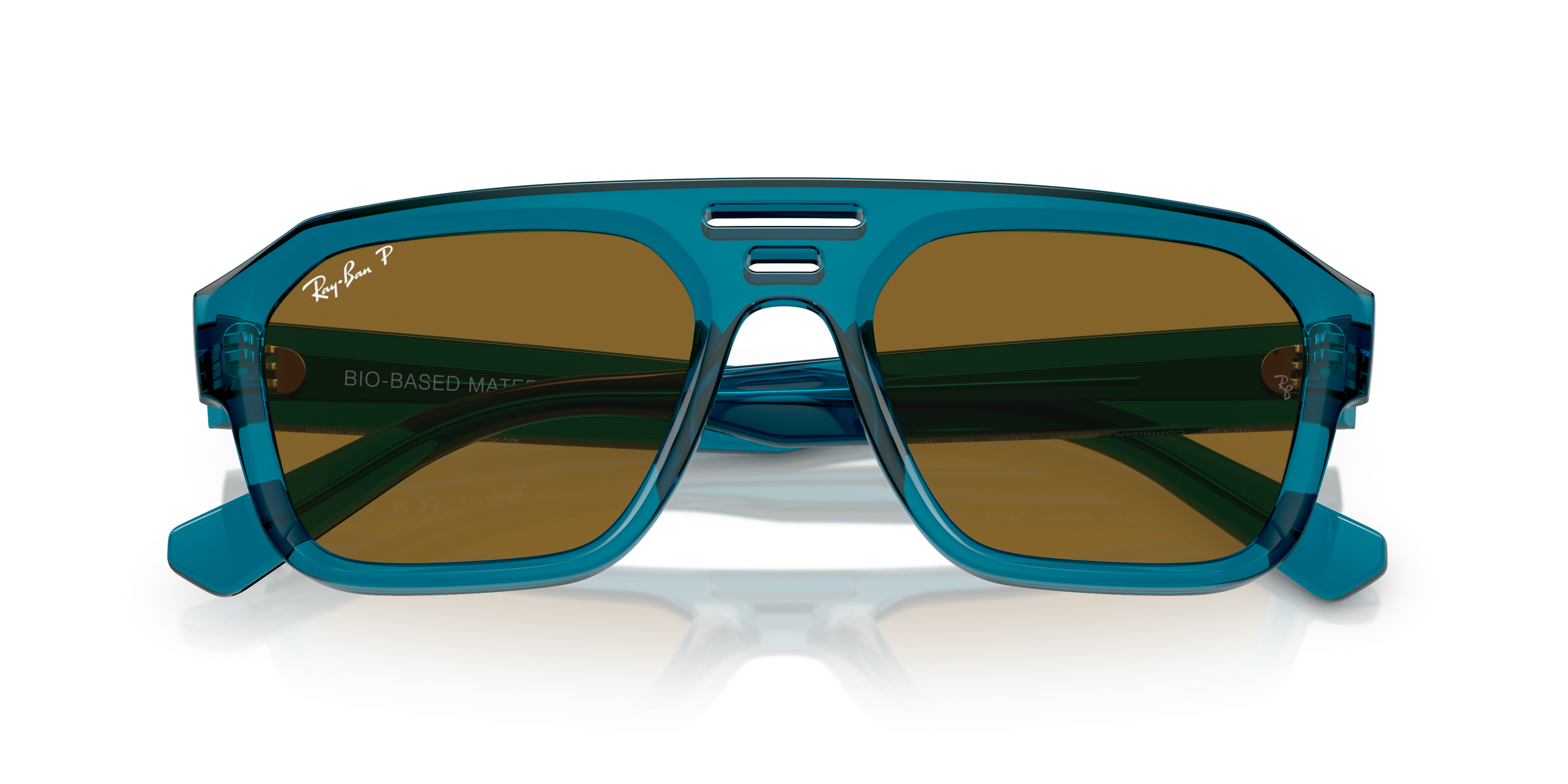 Ray-Ban RB4397 Corrigan Bio-Based Sunglasses are a new frame, crafted from bio-acetate having 67% bio-based carbon content. The lightweight frame has classic dark brown lenses and transparent light blue temples, perfect for those looking for style and performance. The Corrigan Bio-Based series is the ideal choice for a stylish look.