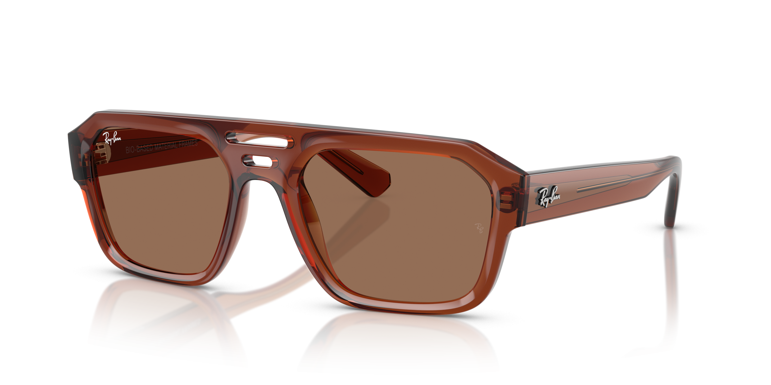 Blending eco-design with autumnal flair, Corrigan Bio-Based Fall Limited delivers sustainable boldness in just 325 pieces worldwide. With a transparent brown bio-based acetate* frame, dark brown lenses and an intricate triple bridge, this style is only available on ray-ban.com.