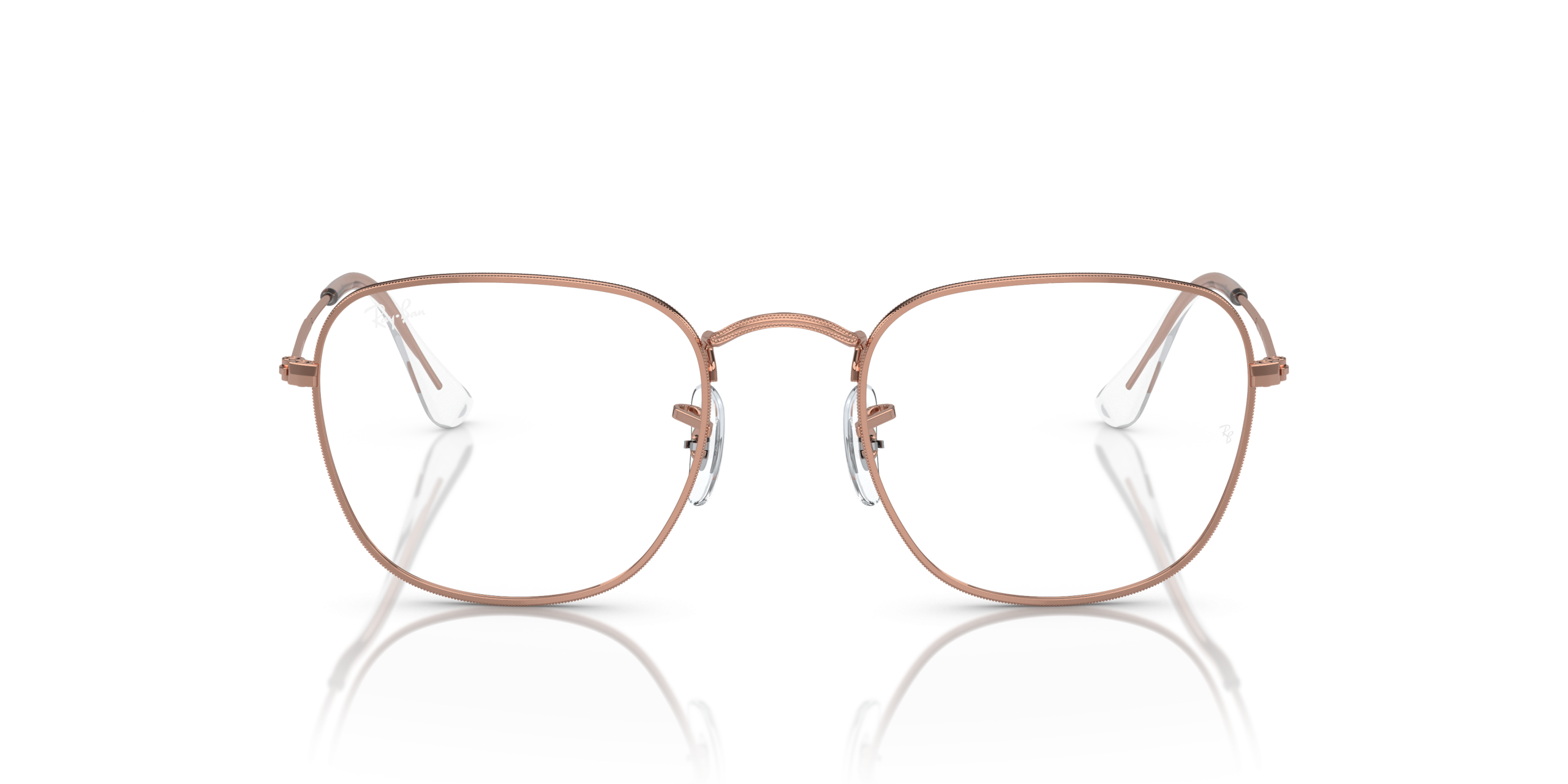 Ray-Ban RB3857V Frank Optics Rose Gold eyeglasses are a modern interpretation of the iconic square frame. Made of metal, these eyeglasses feature a soft square edge and adjustable fitting temples for a perfect fit.