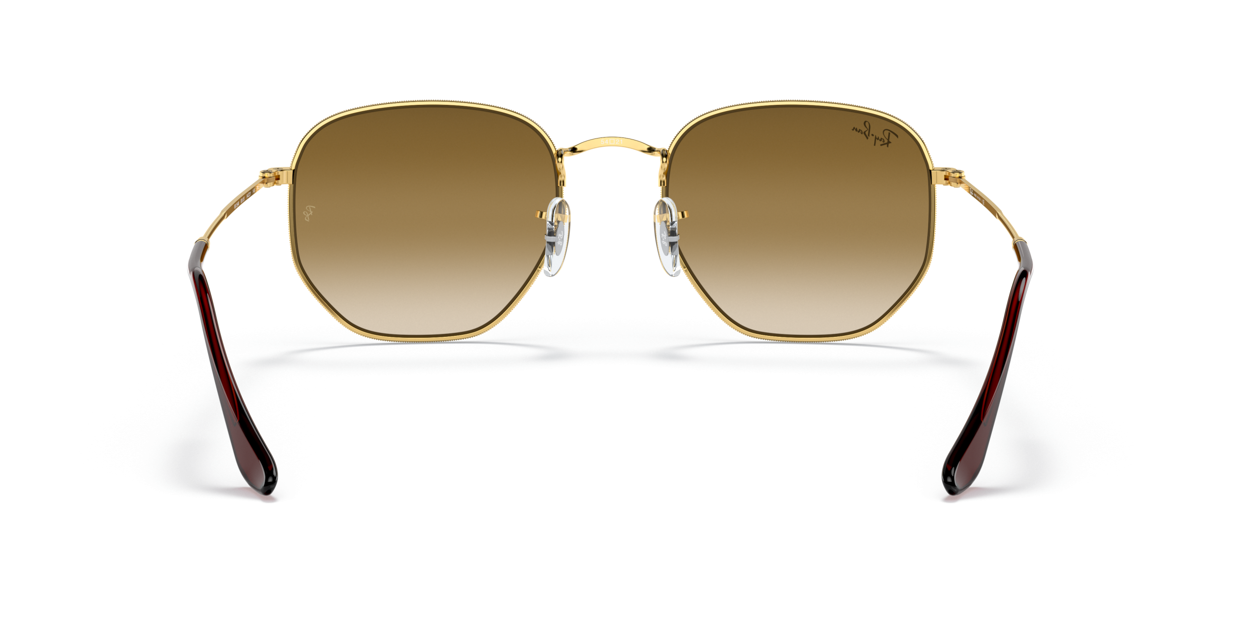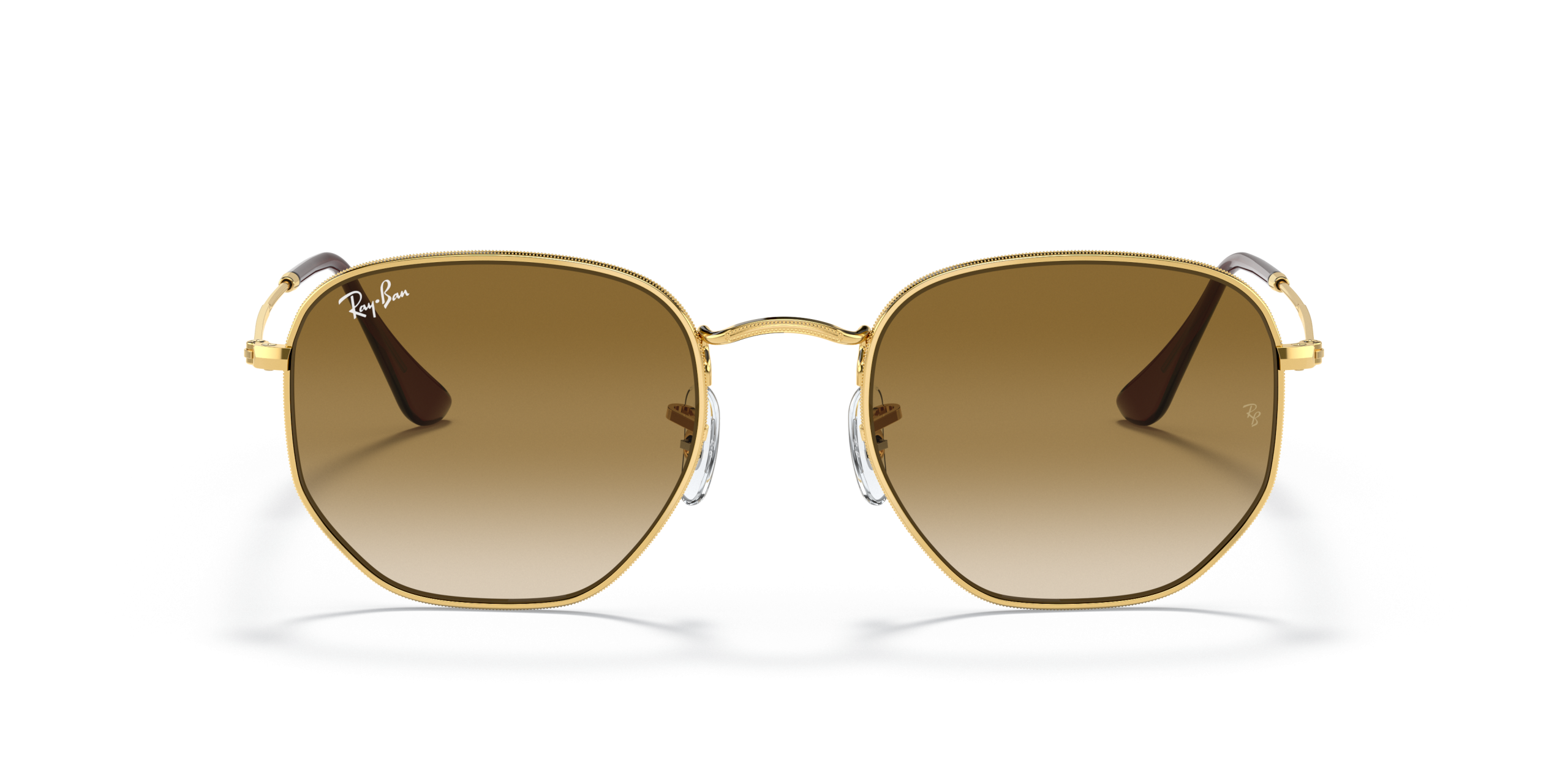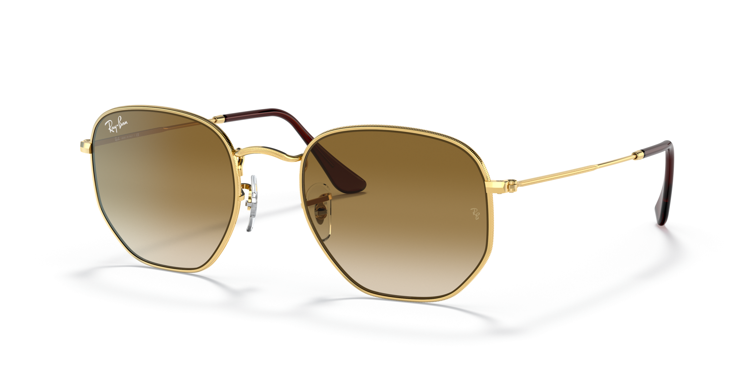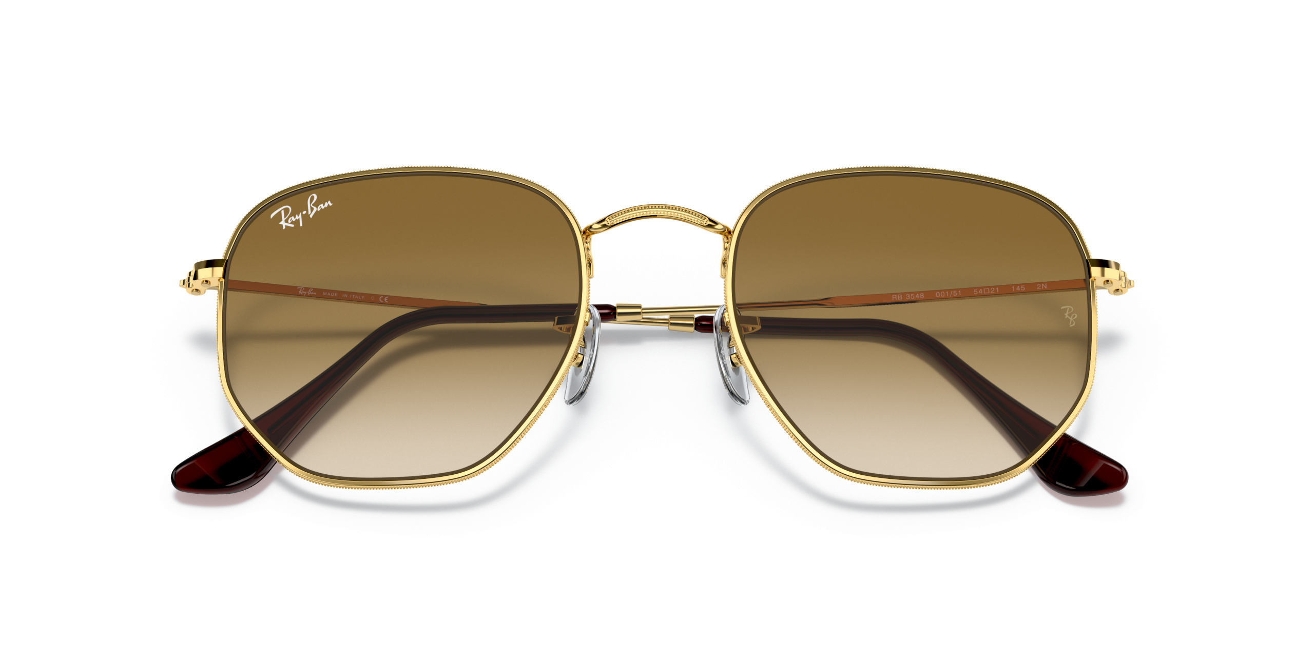 What do you get when you cross a circle with a square? You get the hexagonal RB 3548, the evolution of round featuring crystal lenses. This hexagonal metal shape features thin coined profiles on legend gold frames and temples. Experience the thrill of wearing an updated classic that will never make you feel like a square peg in a round hole. Available with Legend Gold lens logo, straight from the archive.