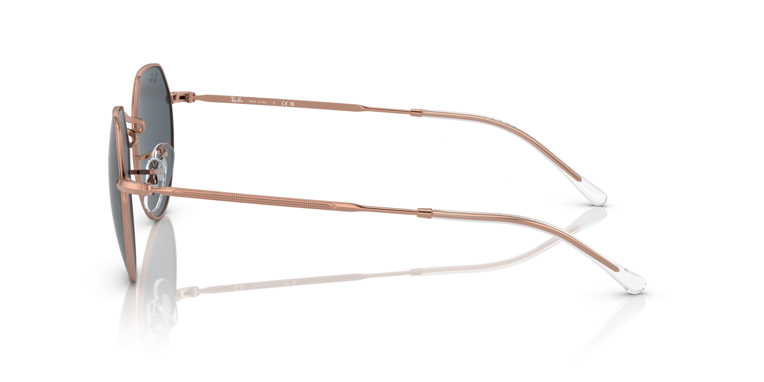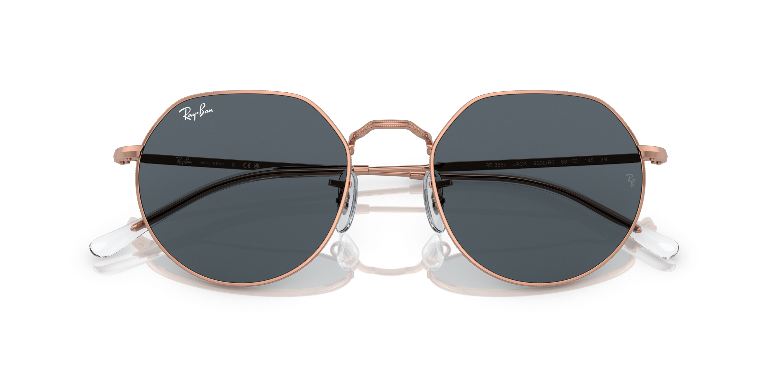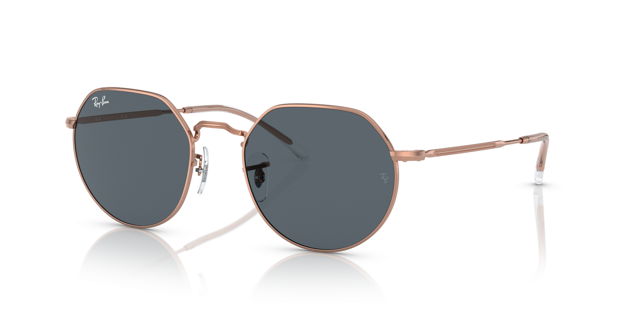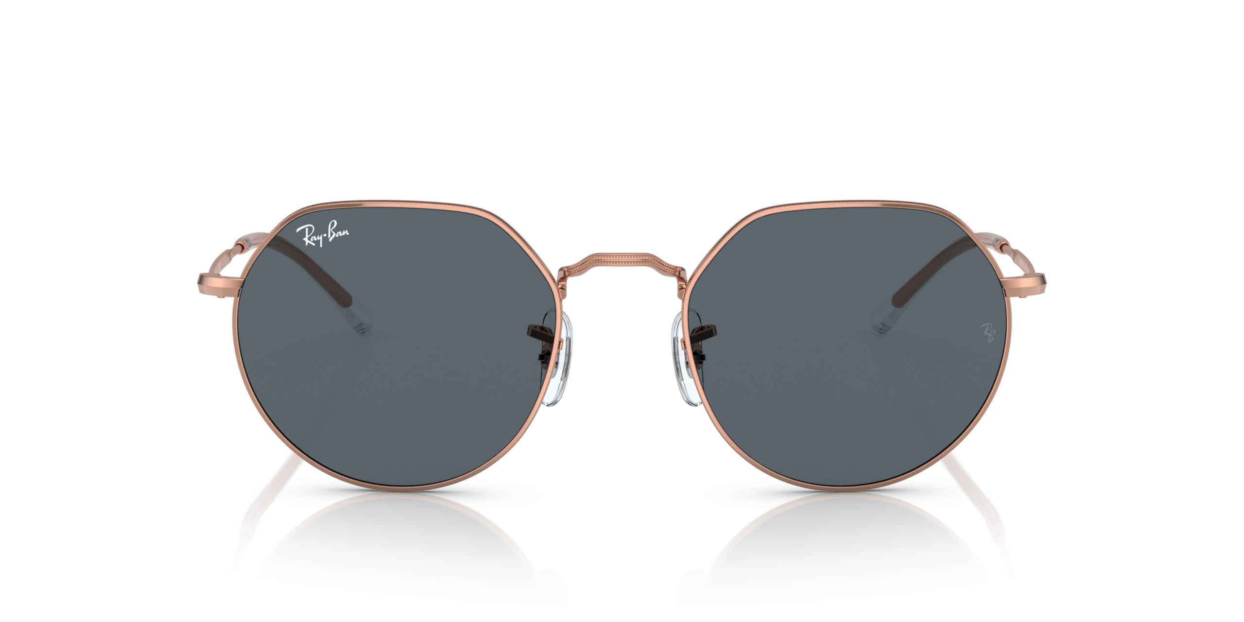 Personalize your favorite frames with our range of custom sunglasses. Create your own custom Jack and stand out from the crowd. The iconic Ray-Ban RB3565 Jack Rose Gold Sunglasses frame gets a metal upgrade in a brand new shape. The frame’s metal construction has been paired with rose gold temples and blue lenses for a polished look that’s sure to turn heads.