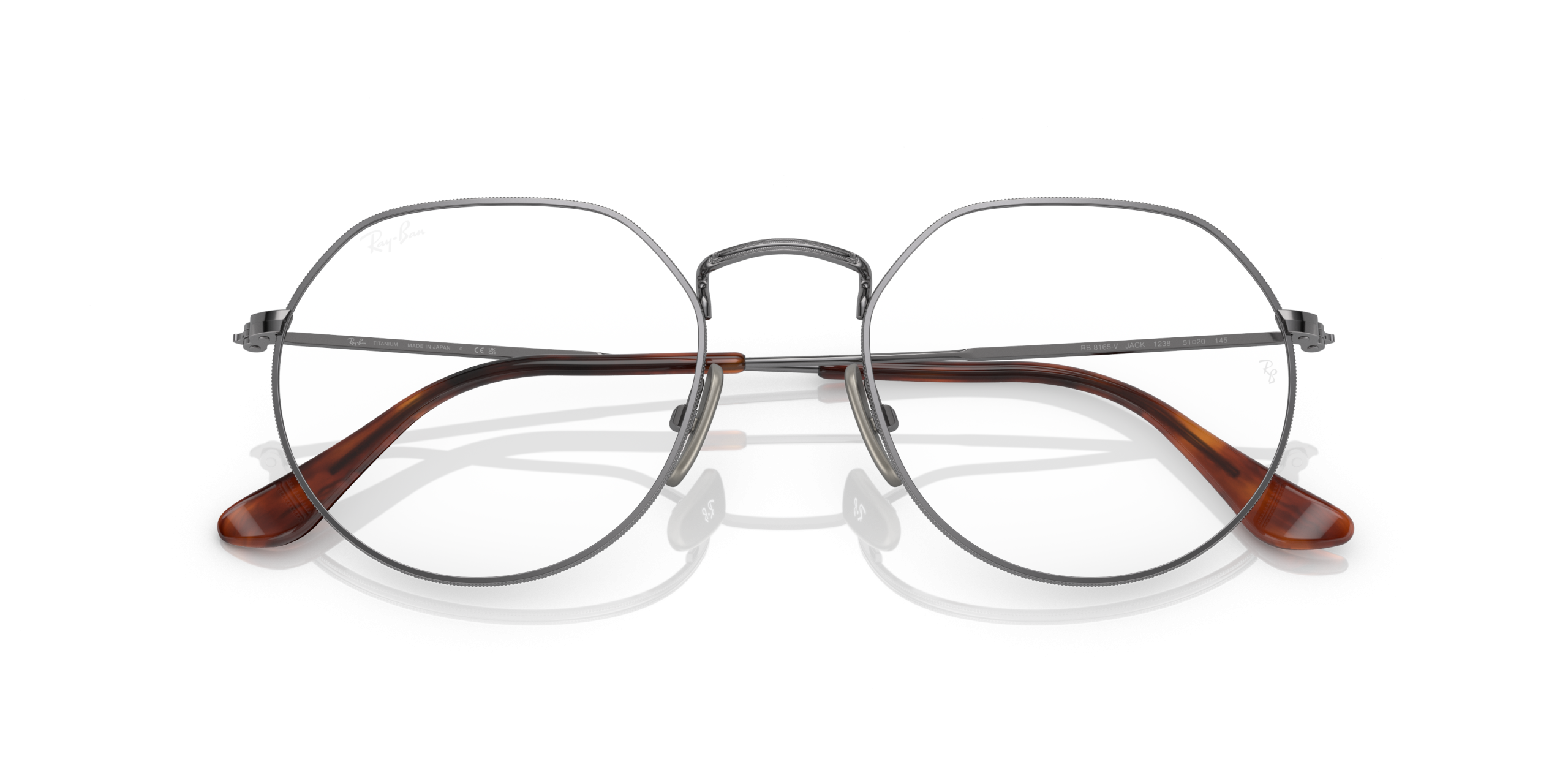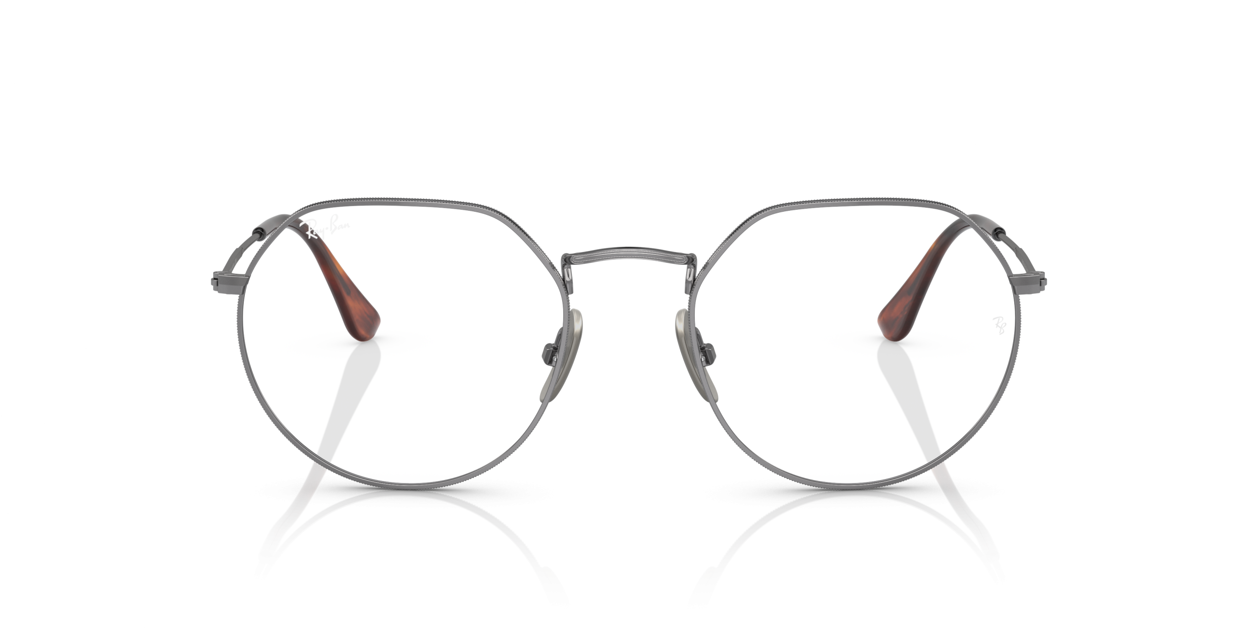As edgy as it is smooth, the Jack is pure Ray-Ban fusion. The slim metal frame is a riff on two i-shape icons \u2013 Round and Hexagonal. The Jack joins the Titanium family, featuring world-renowned Japanese craftsmanship, immaculate design and high-end quality. All-day comfort with an ultra-lightweight optic frame that hides the lens thickness. Available in classic colours or classic metal finishes.