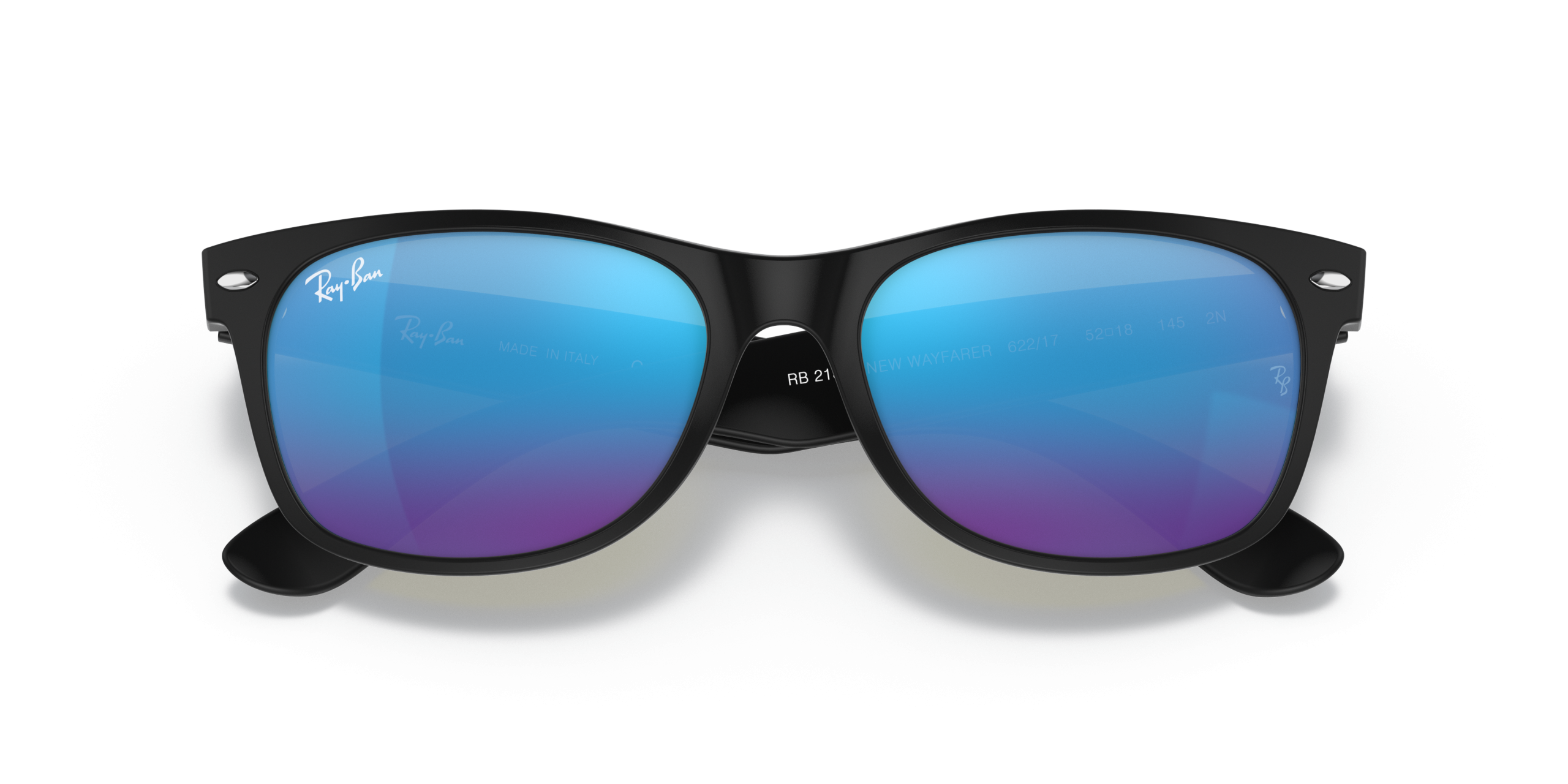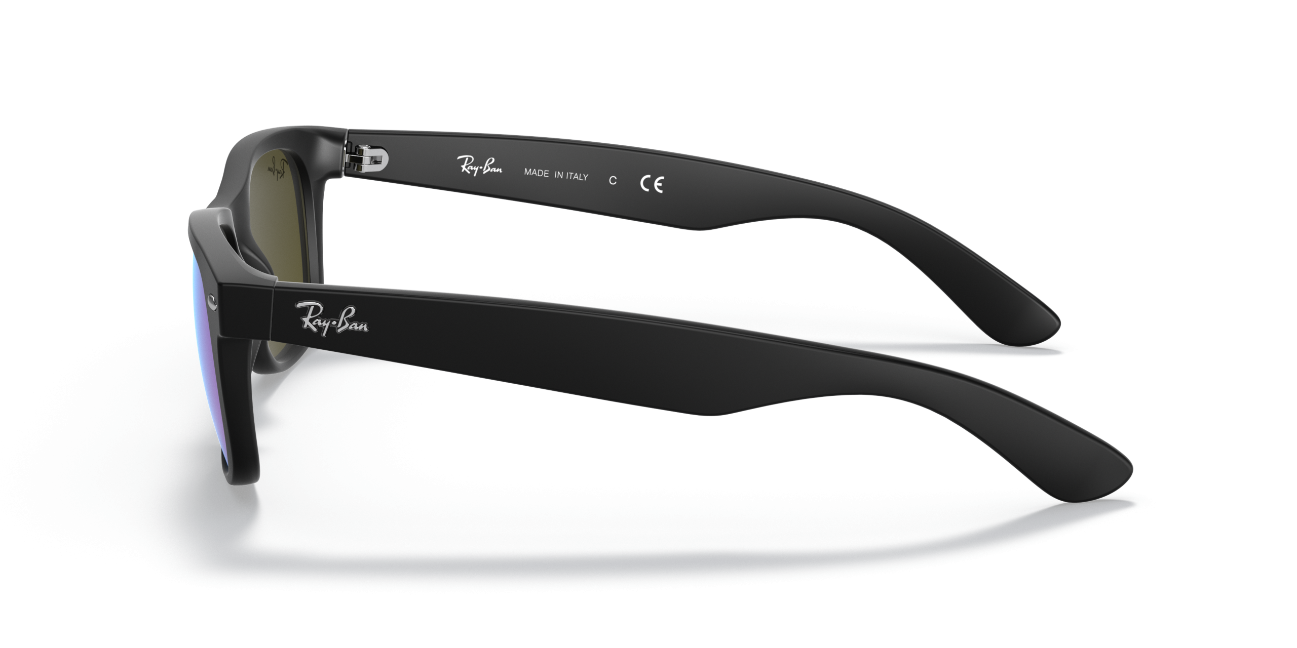 Ray-Ban New Wayfarer Matte Flash sunglasses are an exclusive model of the Wayfarer family. Featuring the same style and fit as the New Wayfarer Classic, New Wayfarer Matte Flash RB2132 Sunglasses are designed with a bright splash of color to assure you won’t go unnoticed. Ray-Ban New Wayfarer Matte Flash is offered in matte black and a variety of lens treatments such as green flash, blue flash and orange flash.