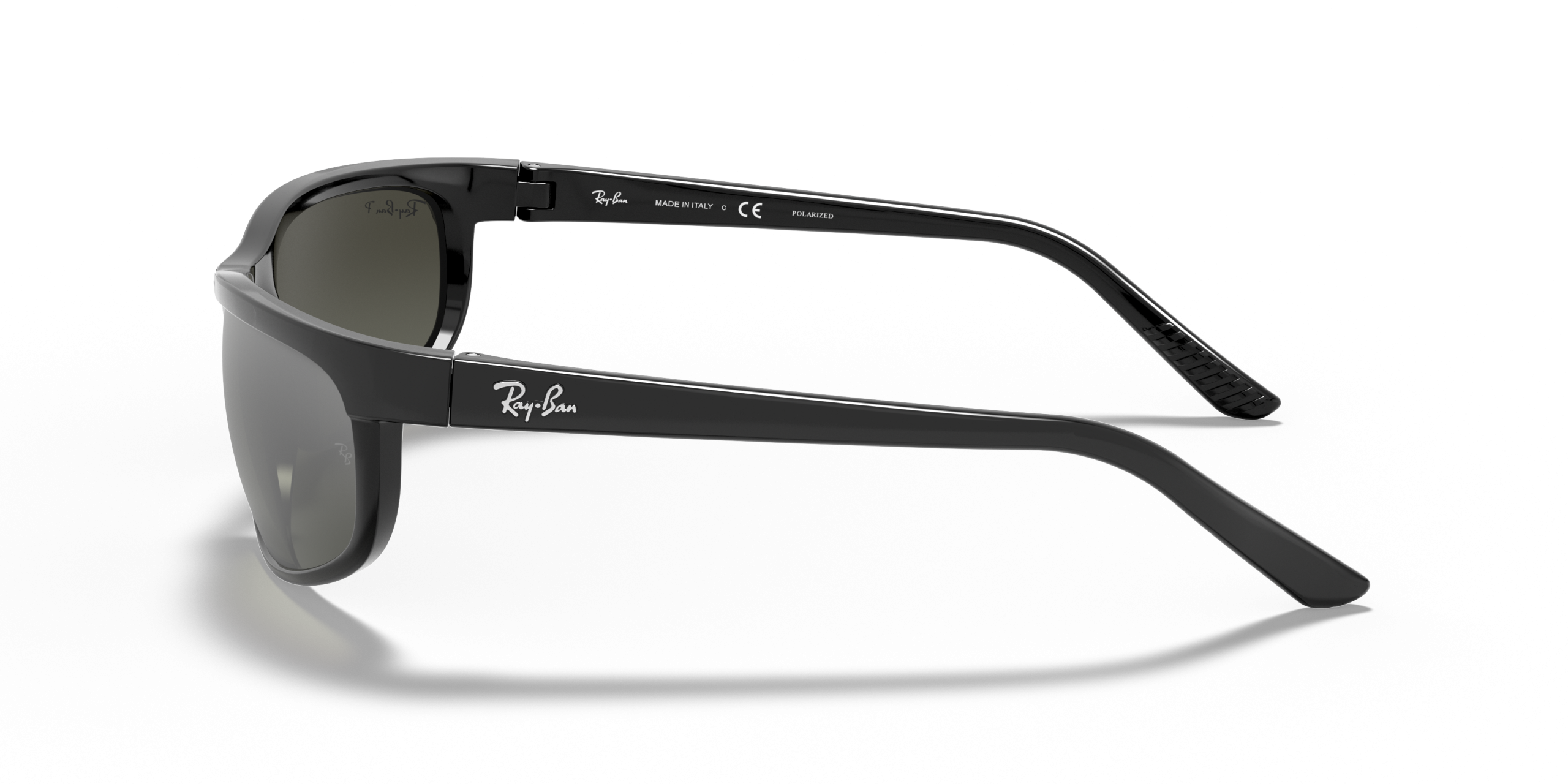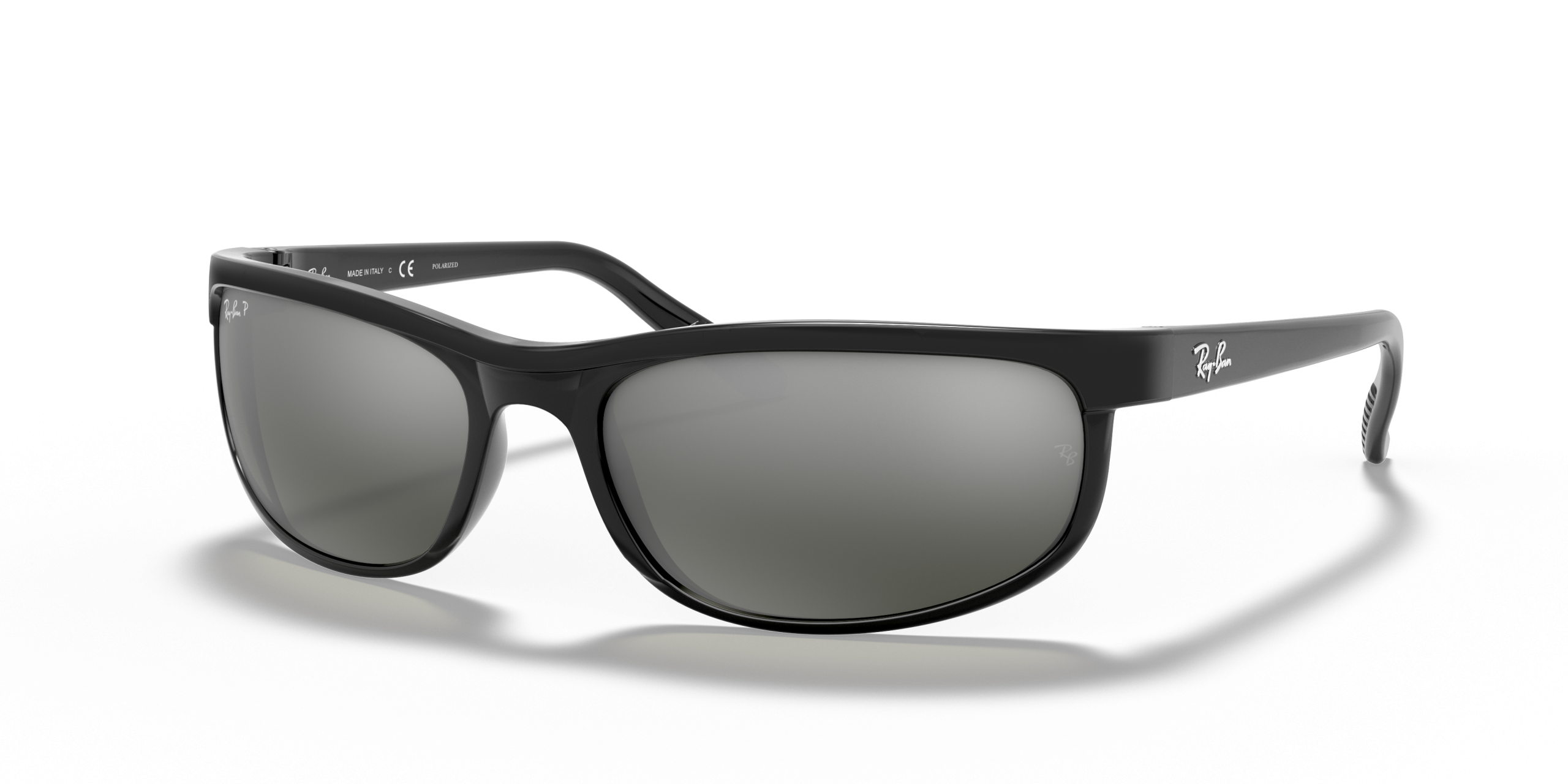Wear RB2027 Predator 2 Sunglasses in a black frame and a variety of lens treatments including Polarized Sunglasses, mirror grey solid, crystal green solid and silver gradient.