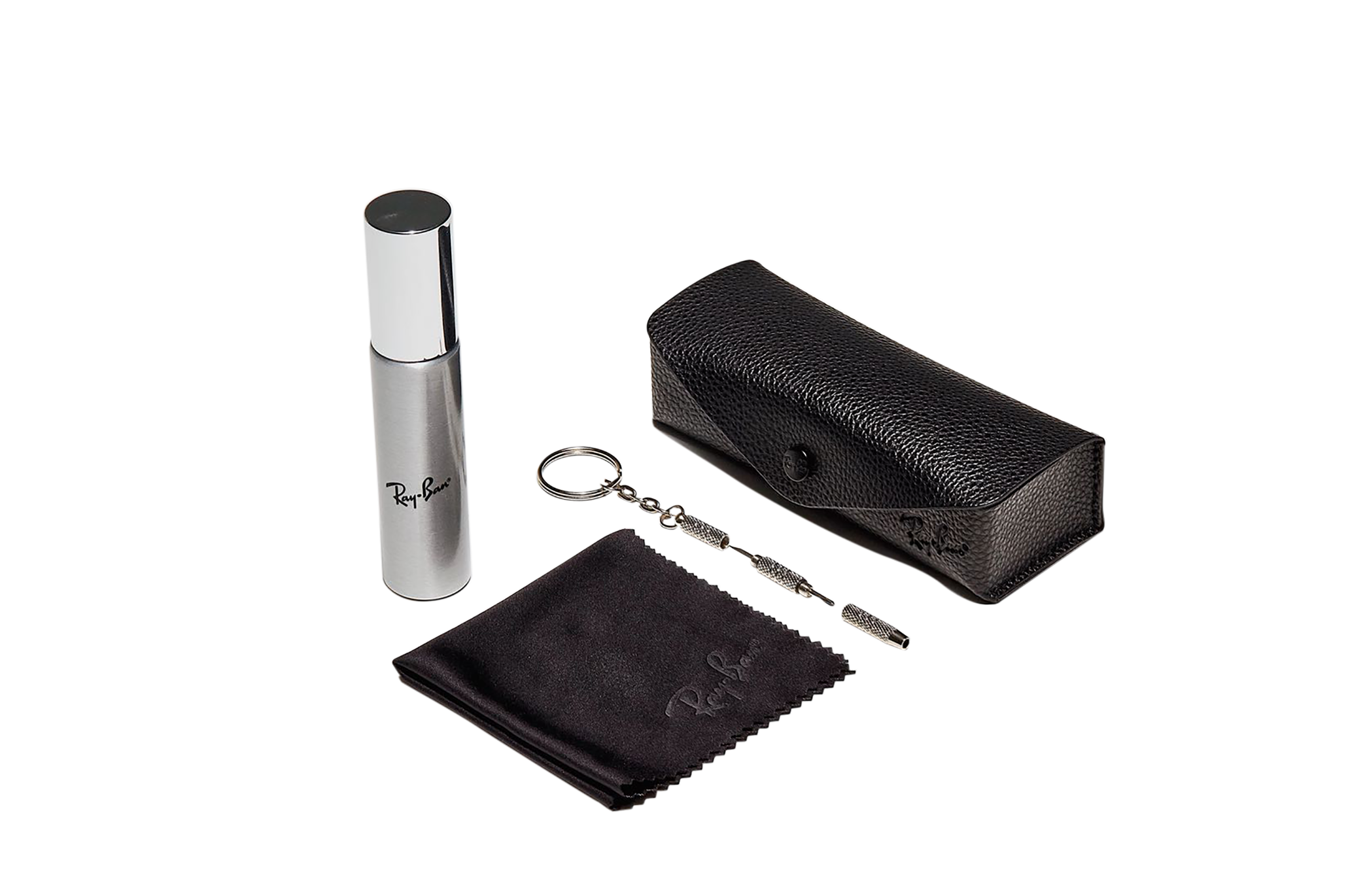 The official Ray-Ban care kit includes a cloth with embossed logo, cleaning liquid in an elegant branded aluminum bottle, a screwdriver to adjust the screws if they loose and an exclusive case. Buy it now and get the accessory your pair deserves.