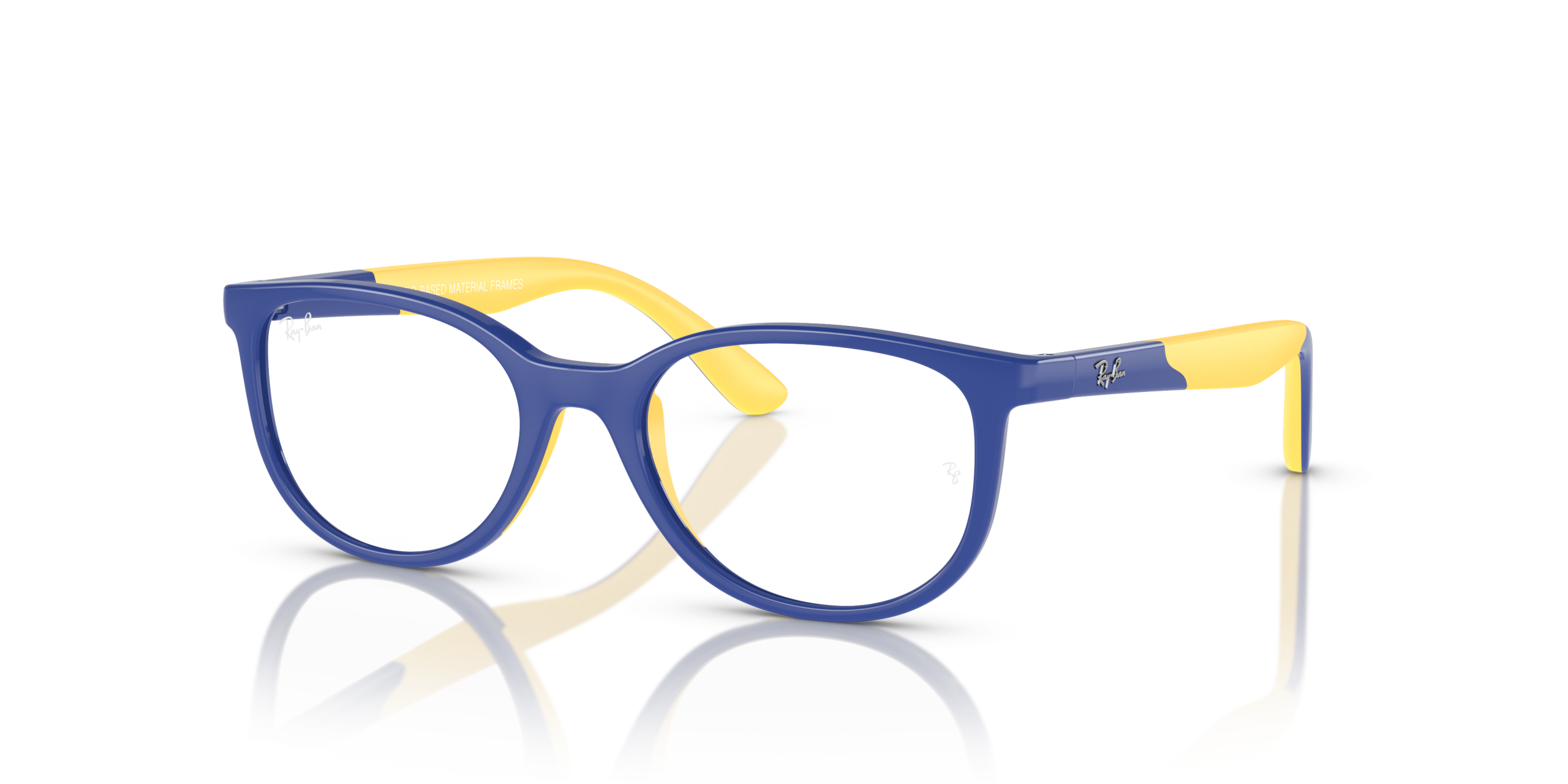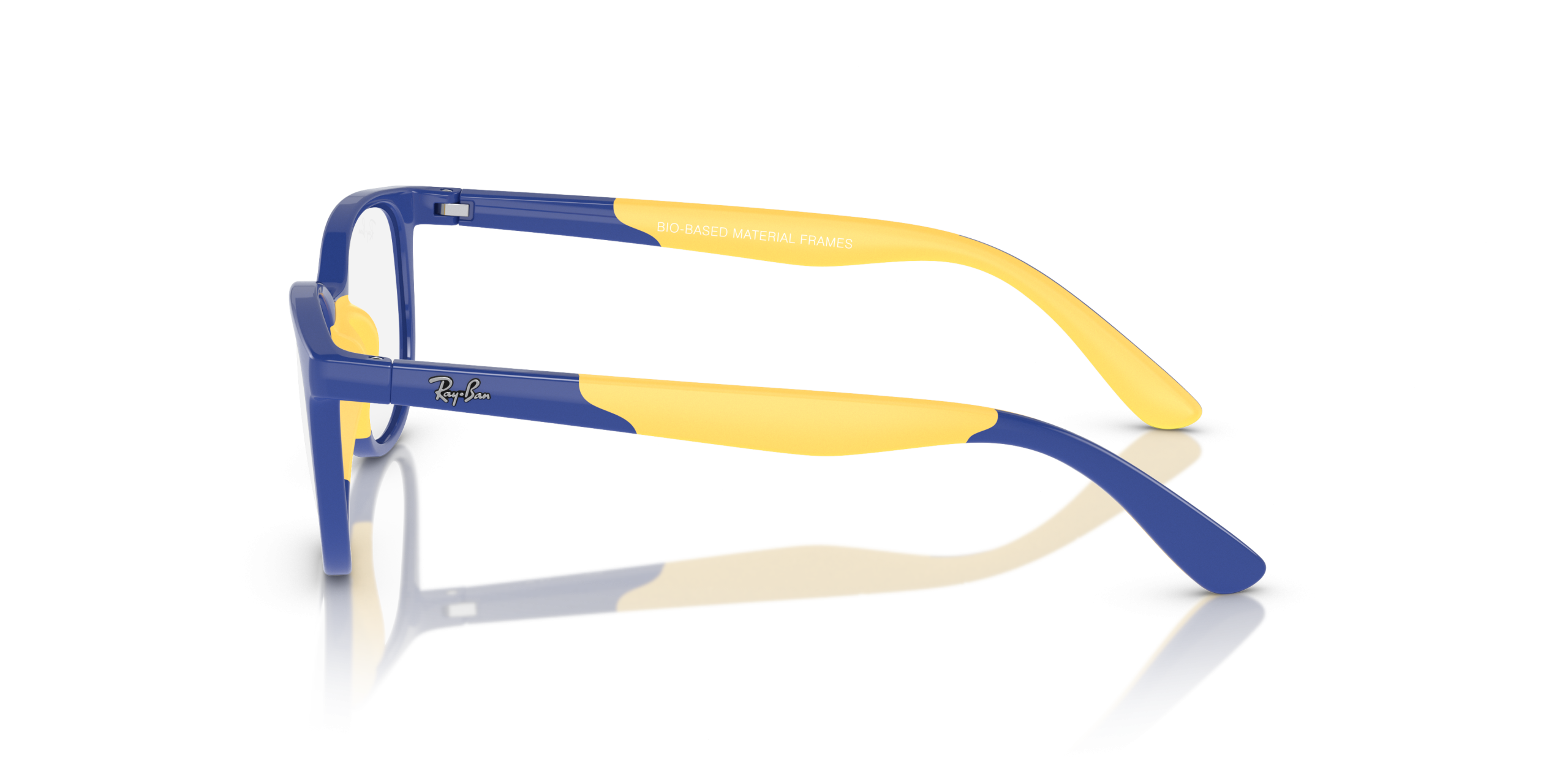 Ray-Ban RB1622 Optics Kids Bio-Based eyeglasses are a great choice for kids who want to look and feel good. These bio-based frames are made with bio-nylon having 59% bio-based carbon content from plant-based sources. The frames come with blue on yellow color combination.