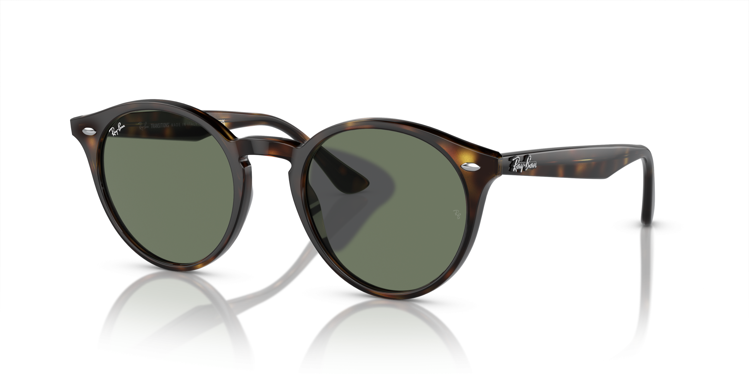 Personalize your favorite frames with our range of custom sunglasses. Create your own custom RB2180 and stand out from the crowd. The modern design has gone full circle as Ray-Ban takes the classic round shape on another revolution. Along with distinctive rivets and Ray-Ban shaped temples, the Ray-Ban RB2180 features a sleek flattened bridge and stylish Transitions\u00ae lenses that adapt to all light conditions for optimum vision performance \u2013 inside and outside, day to night, up a mountain or in front of digital devices.