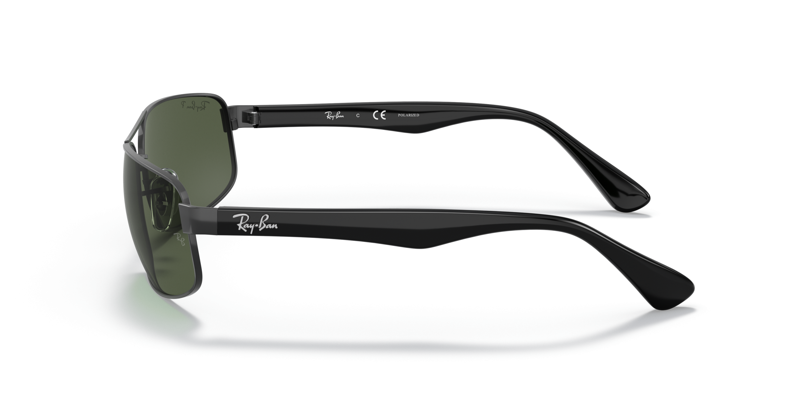 The elbow wrapped plates hide hinge hardware while allowing frame design to flow cohesively fitting your face like a glove. An engraved silver Ray-Ban signature decorates the curved temples. These Sunglasses come in polarized styles and are prescription friendly.