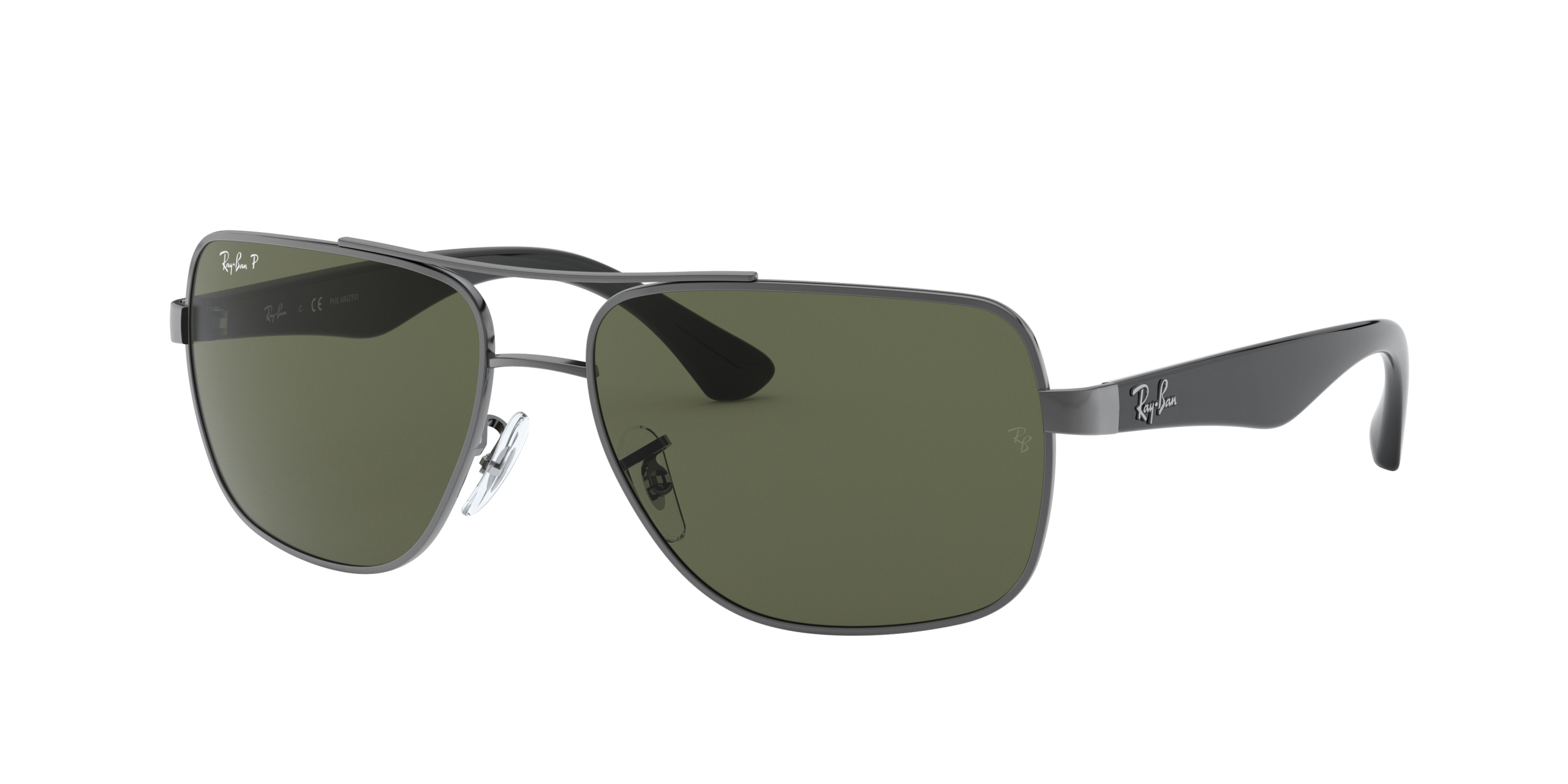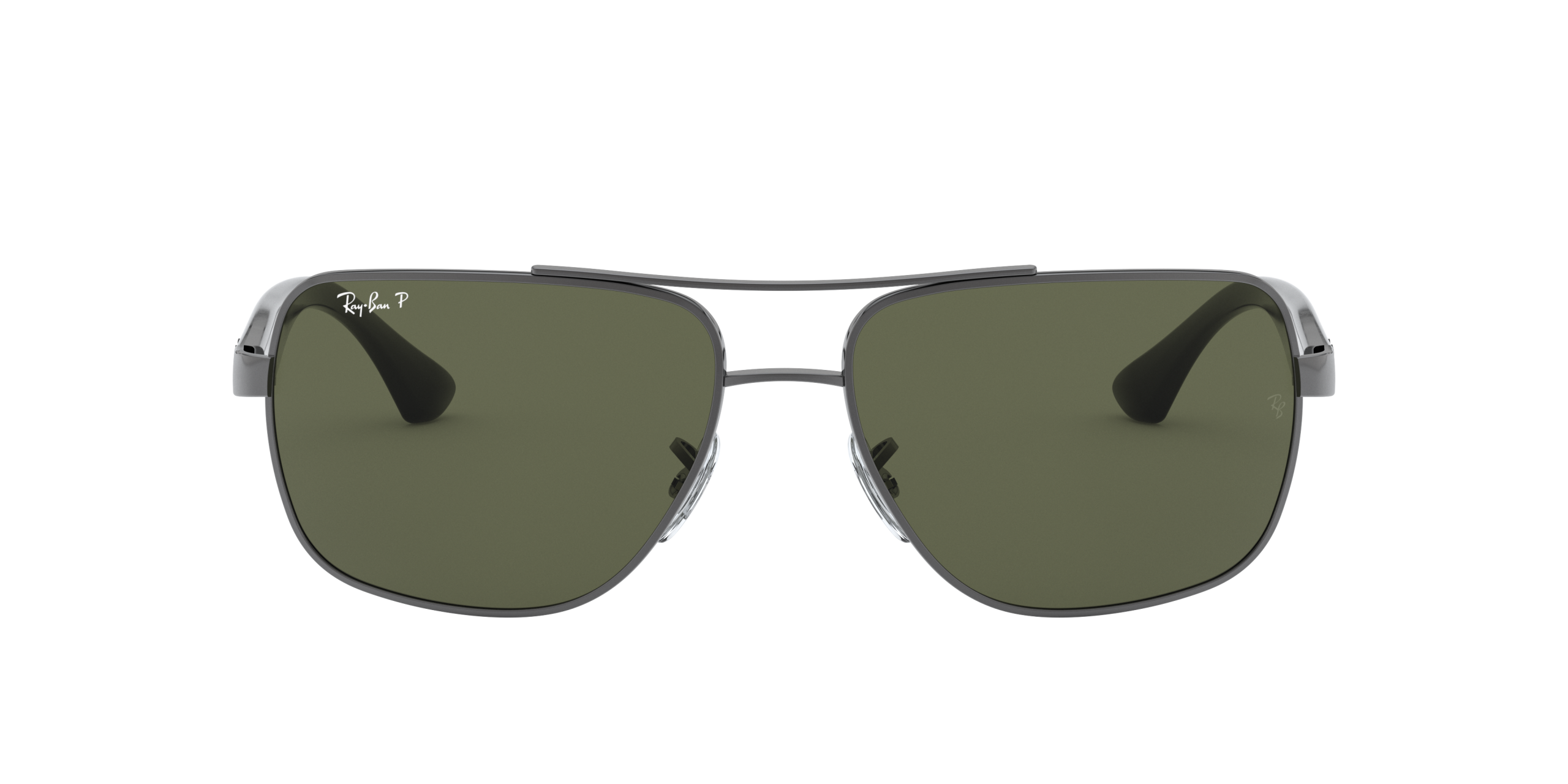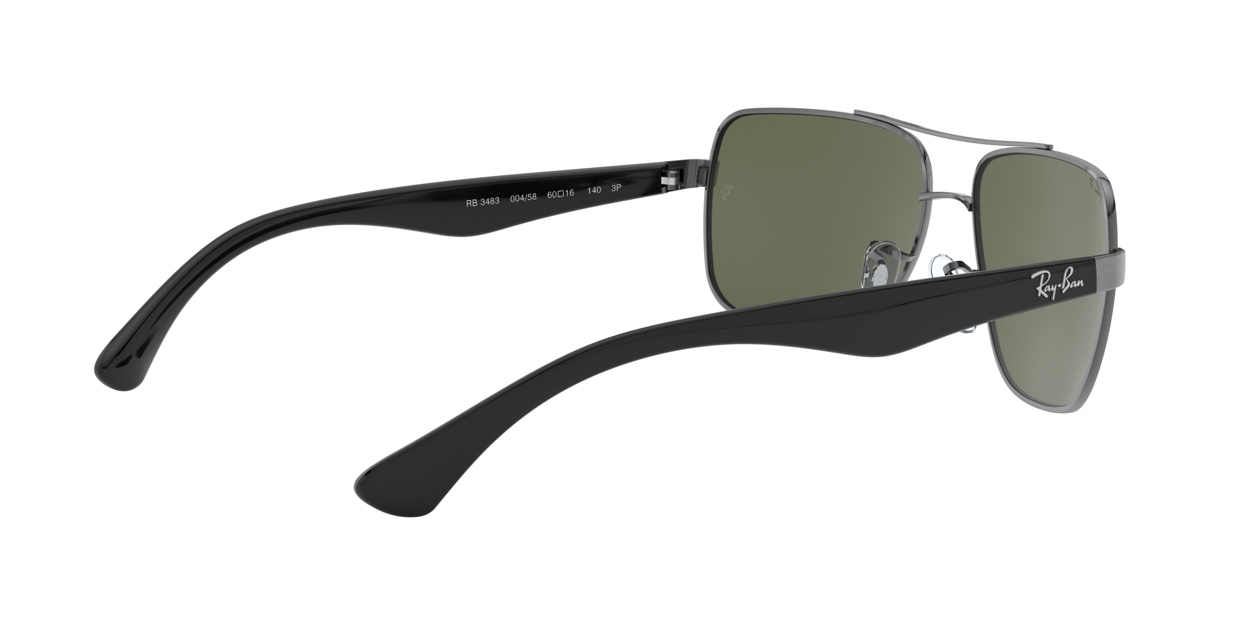 Ray-Ban \u00ae RB3483 Sunglasses are a distinguished design with a classic metal double brow bar sitting on an oversized squared metal frame. Classic plastic temples create a timeless Ray-Ban look with uncompromisable quality. Decorated with a Ray-Ban signature logo on temples and lens, the adjustable nose pads provide you with a comfortable and customized fit. This model comes with this season’s latest lens colors and treatments in polarized, gradient, and mirrored lenses. The universally flattering fit will look great on medium to large faces.