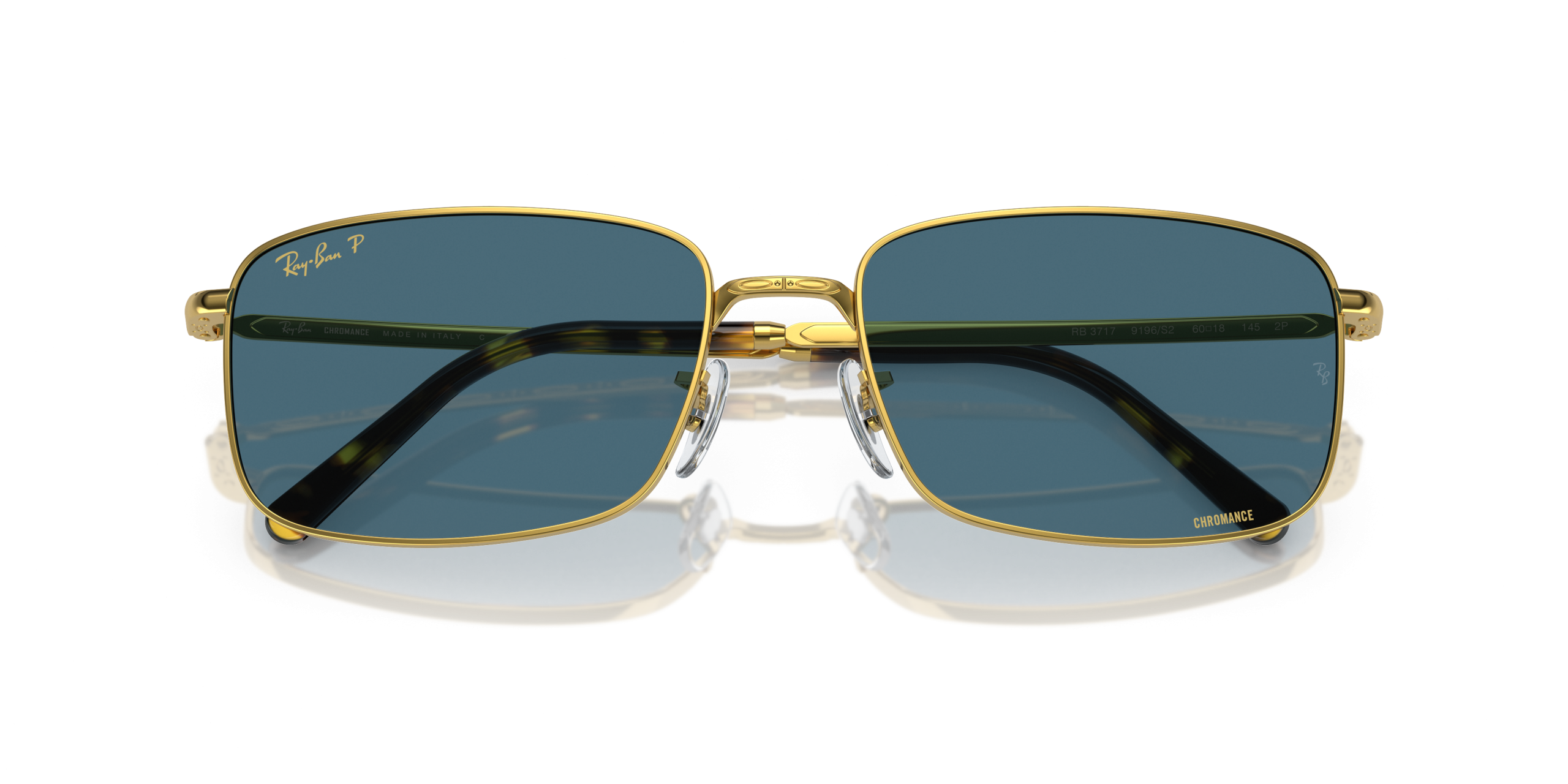 Ray-Ban RB3717 Sunglasses are designed to change the game with a brand new frame. The metal frame comes in gold and features blue lenses. Ray-Ban brand name is displayed prominently on the right lens and on the metal part on the left lens.