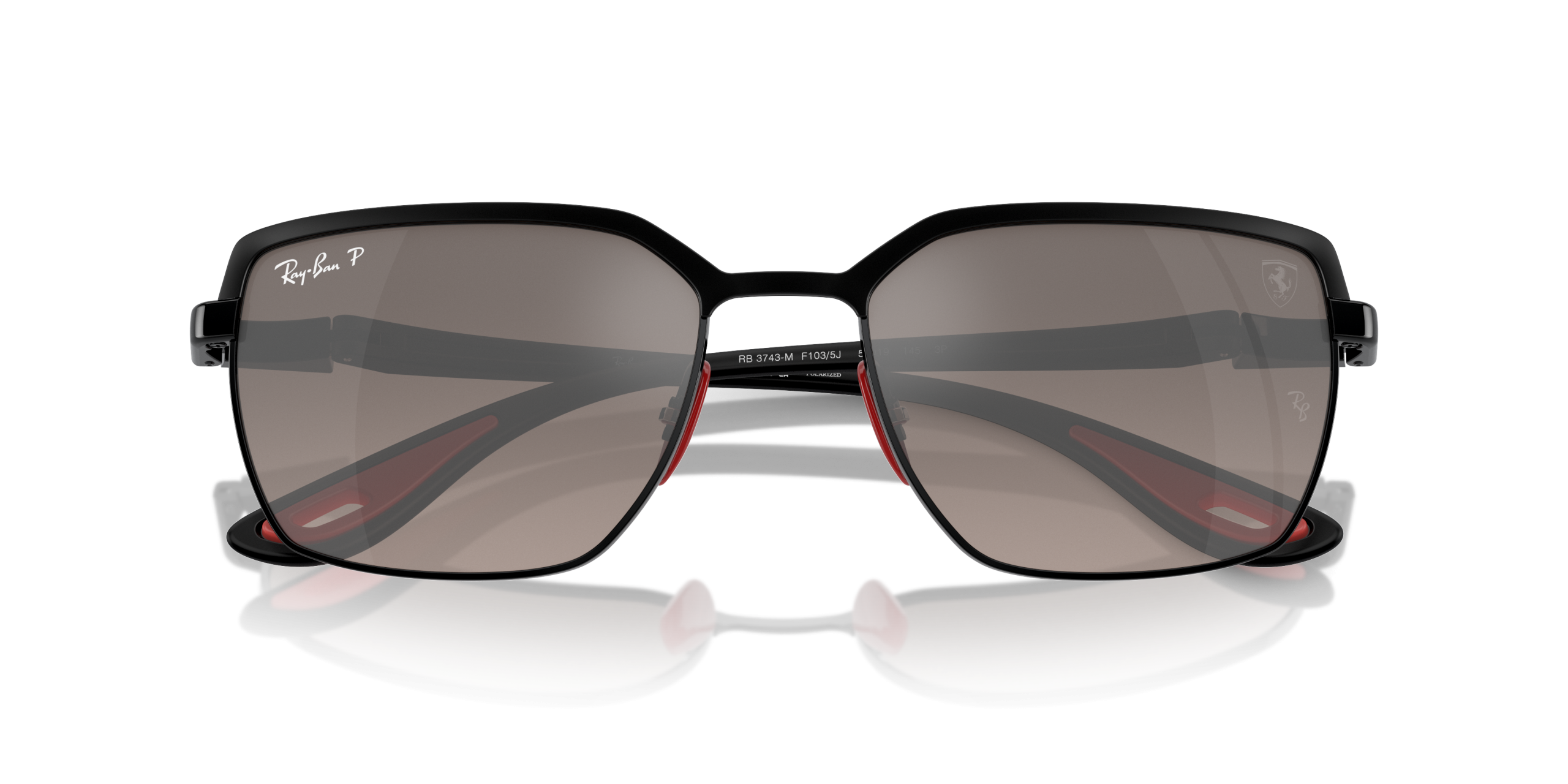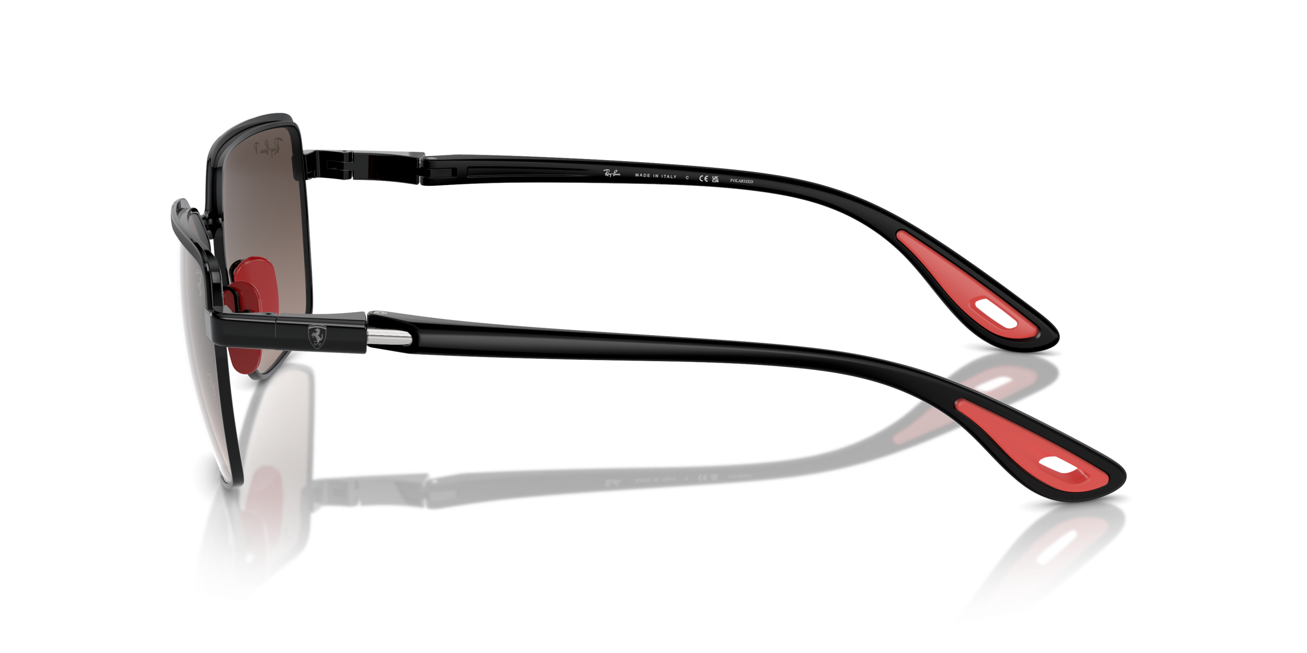 Introducing Ray-Ban RB3743M Scuderia Ferrari Collection in black on black: a must-have for any fan of the iconic racing team. The sleek steel frame, with its distinct square shape, combined with the grey polarized lenses, offers a modern edge that is hard to resist. With their durable construction and high-quality materials, these square-framed sunglasses are perfect for everyday wear. Whether you’re hitting the track or just running errands around town, you’ll be sure to turn heads in these unmistakably stylish shades.