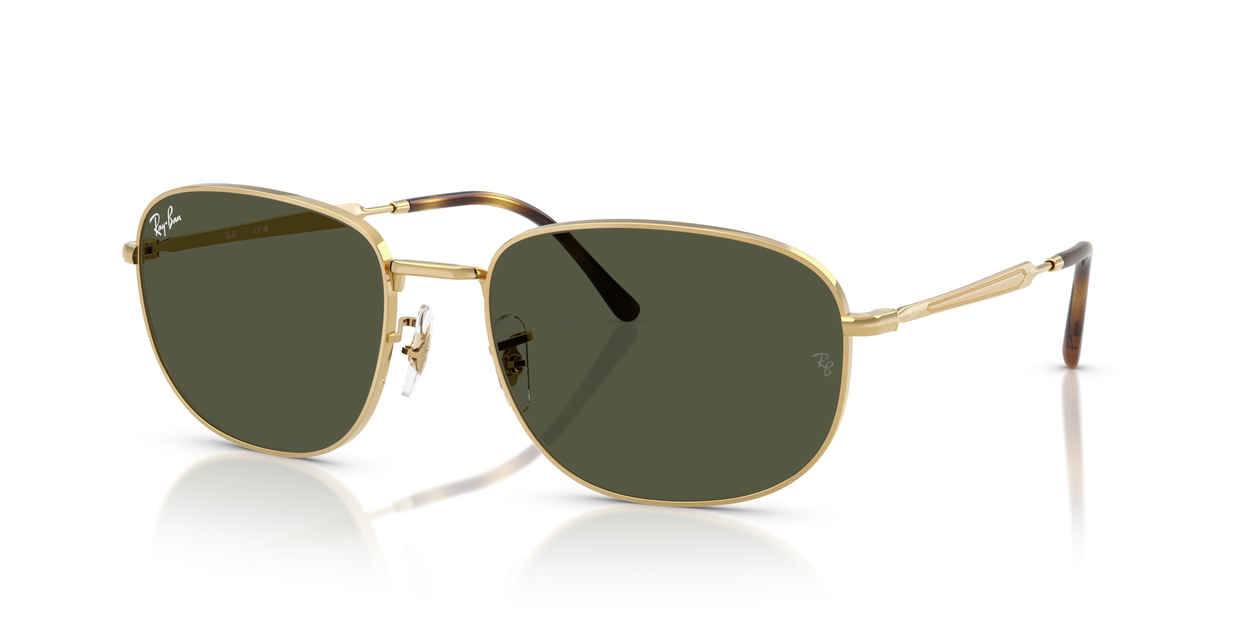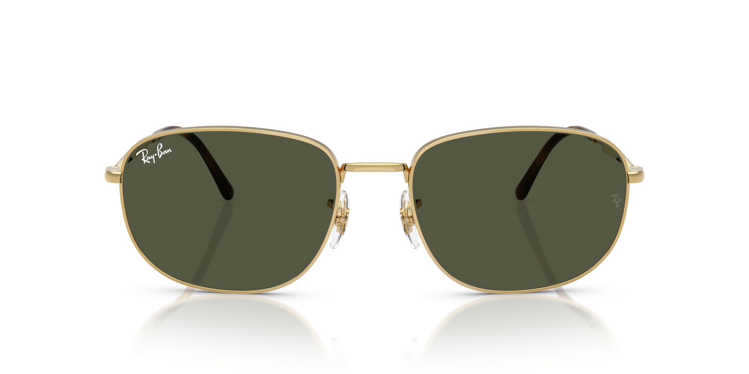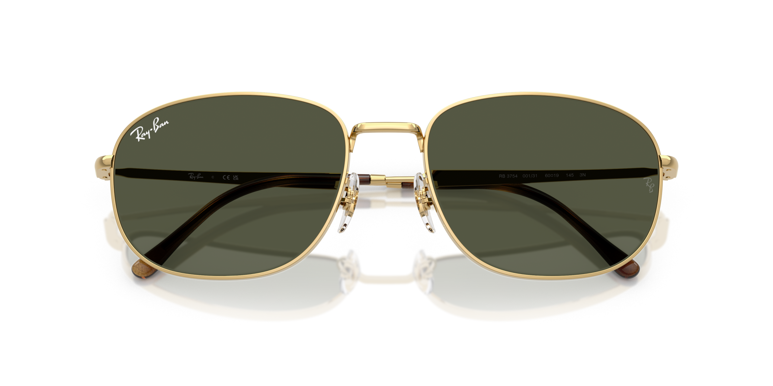 Ray-Ban RB3754 features an arista (gold) frame with green solid color lenses. The pillow-shaped lenses and polished metal material add a modern touch to this timeless style. These sunglasses are perfect for those who want to make a statement while staying stylish.