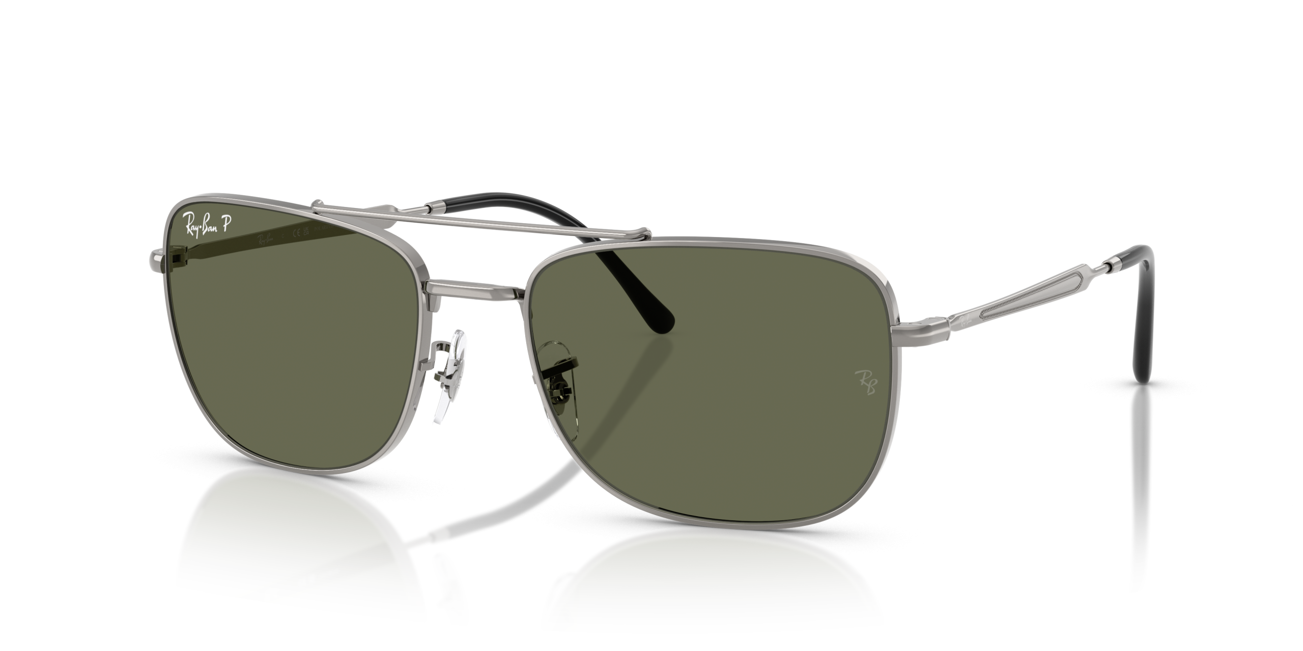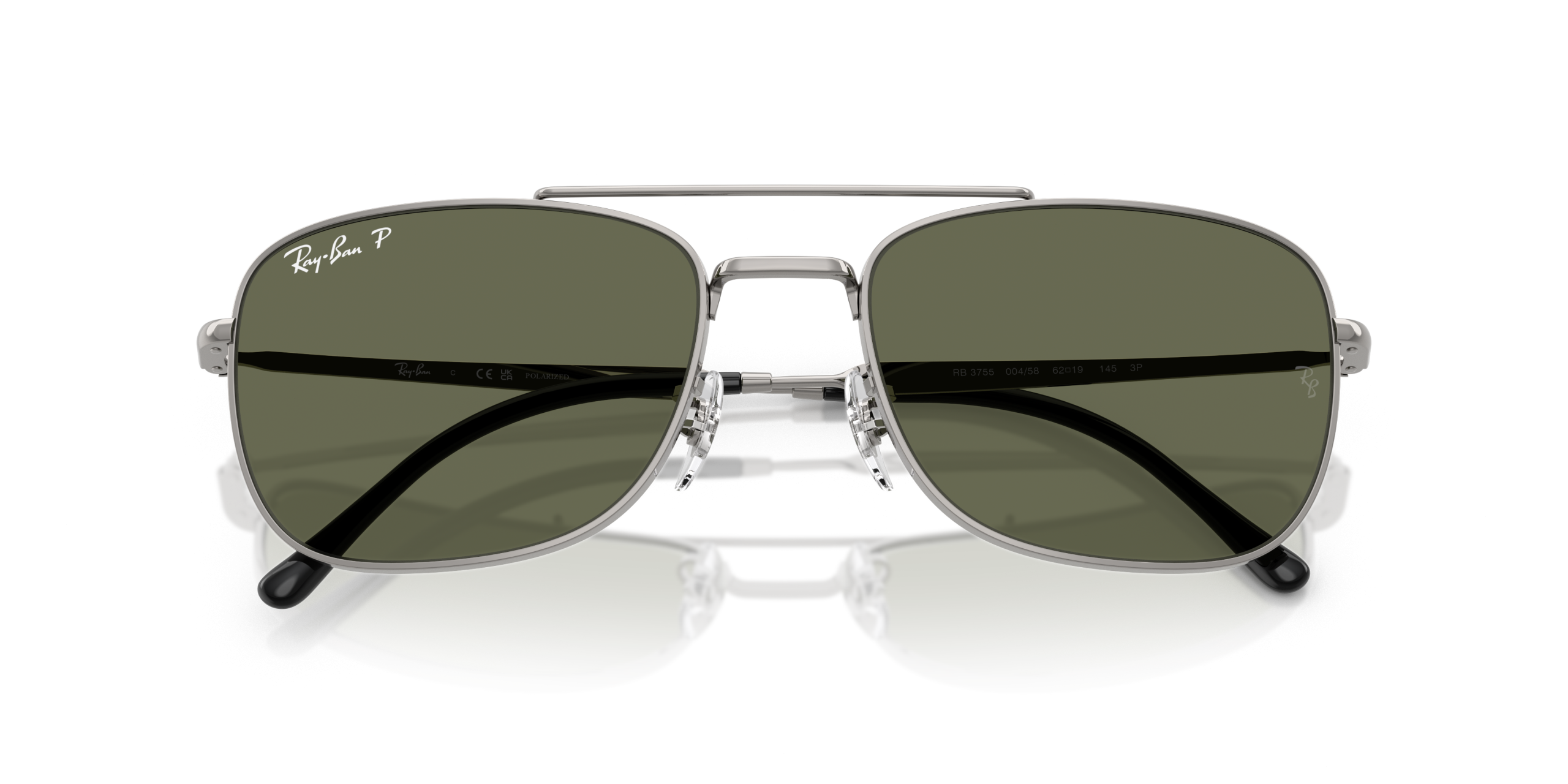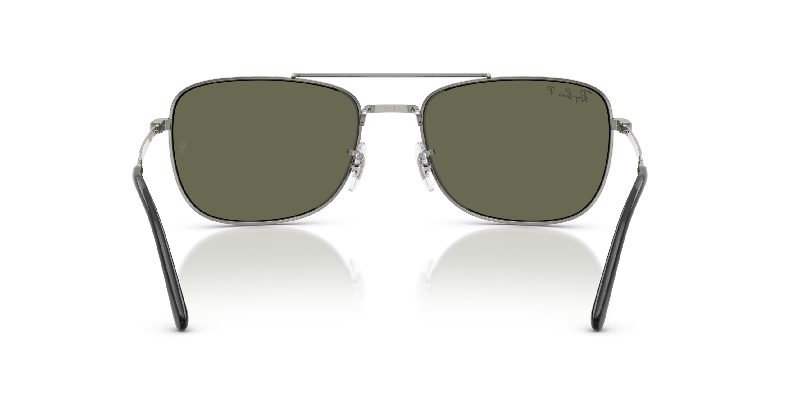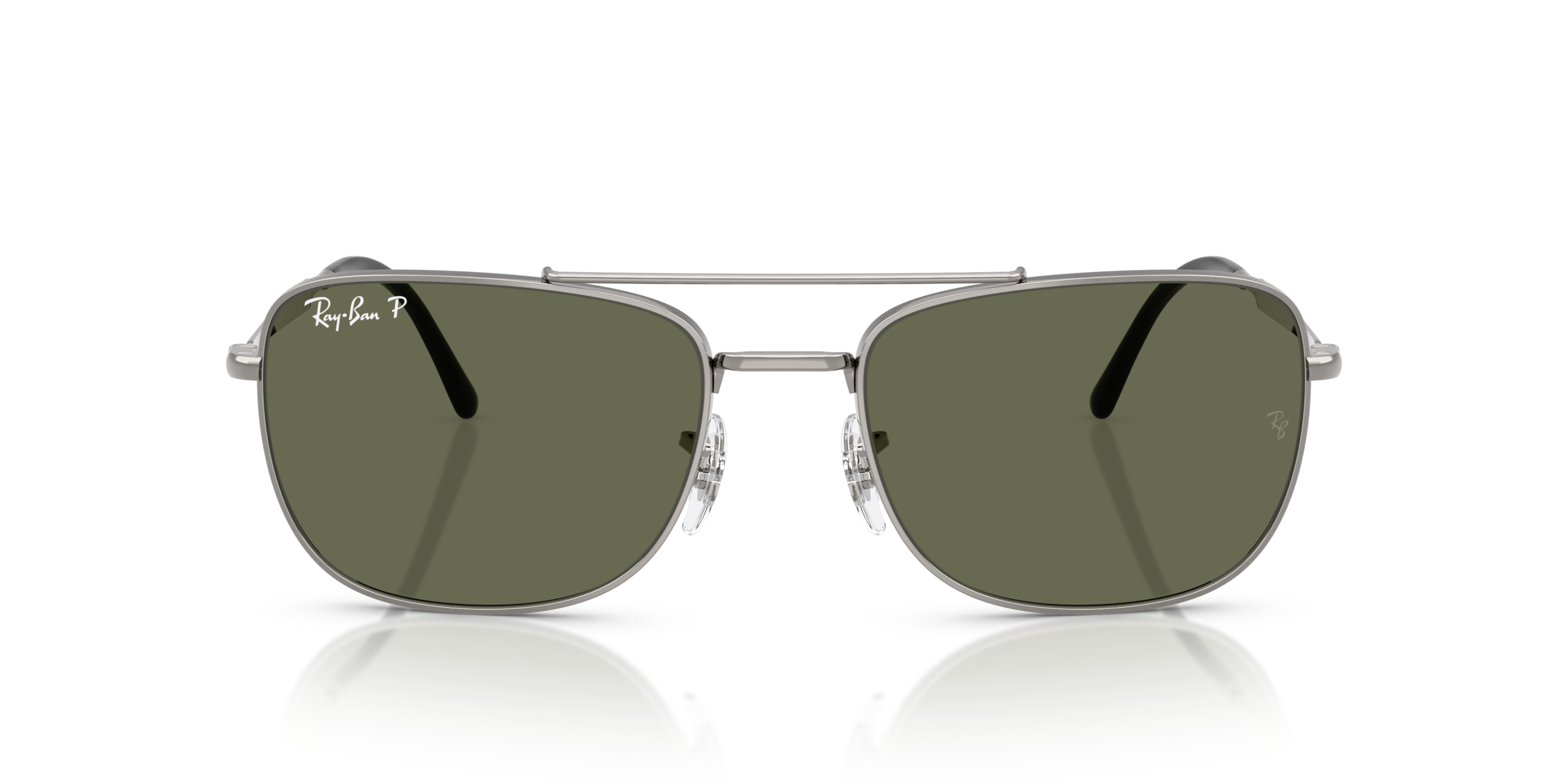 Ray-Ban RB3755 sunglasses features a sleek gunmetal metal frame with the iconic green polarized lenses. The rectangle shape and polished finish add a modern touch to this timeless style, while the green polar lenses provide enhanced vision and sun protection. These sunglasses are perfect for those looking to make a statement while staying protected from the sun.