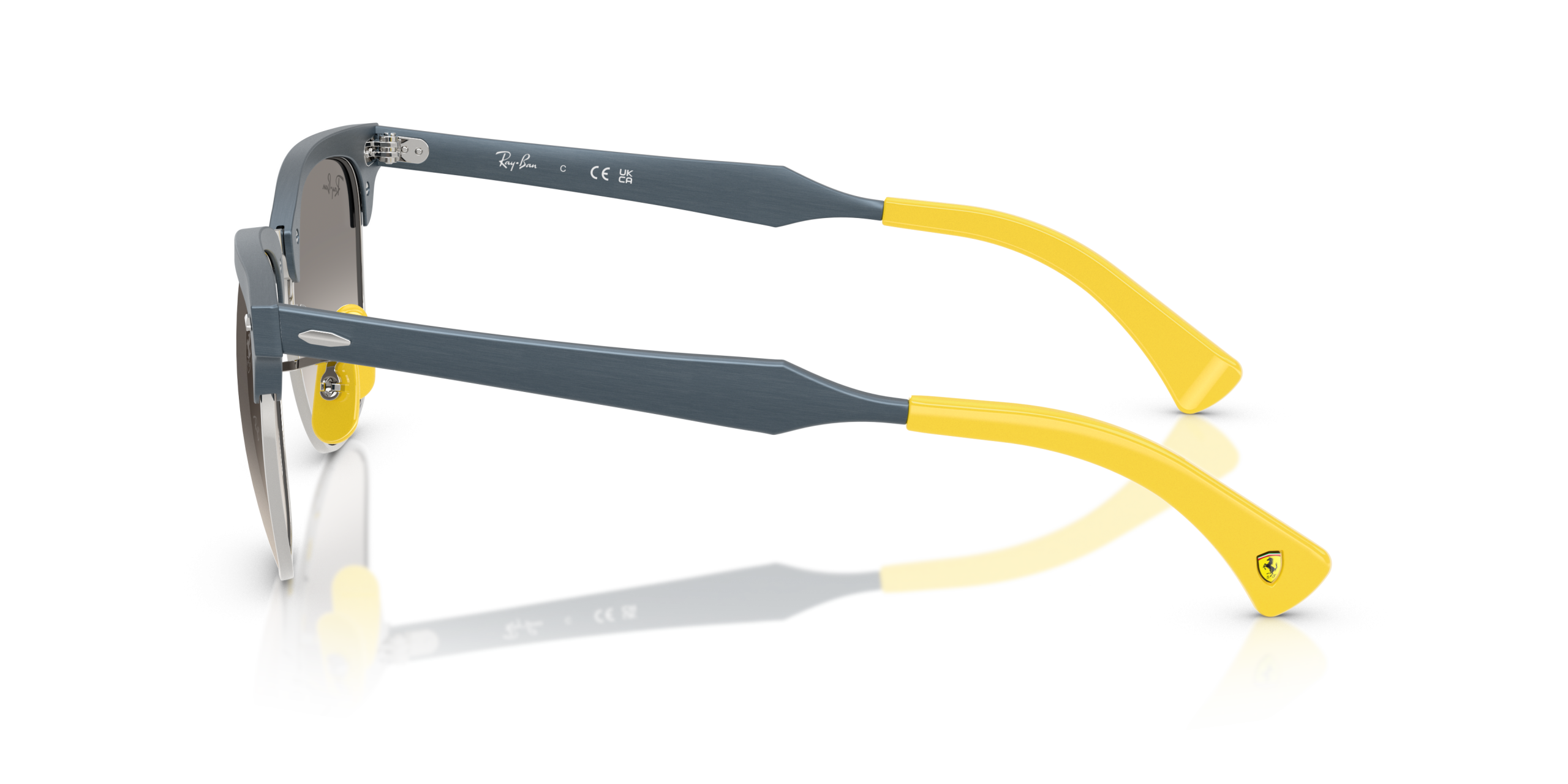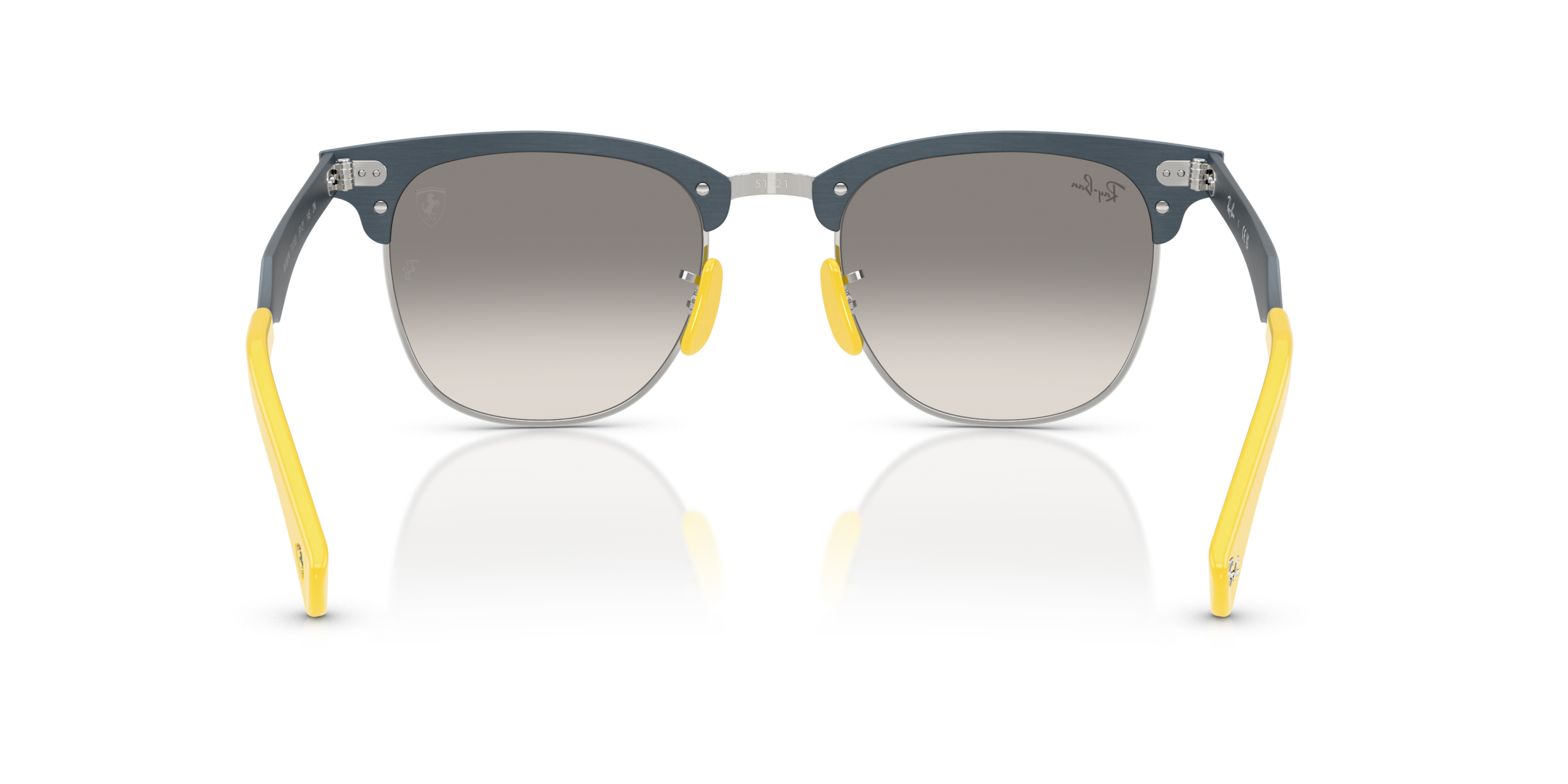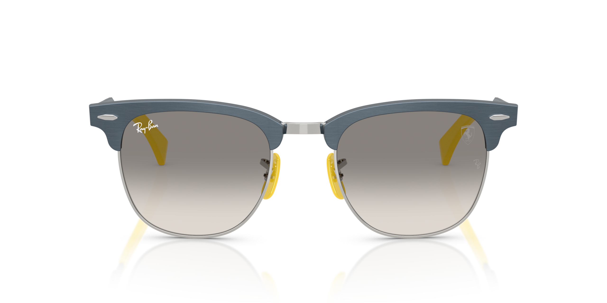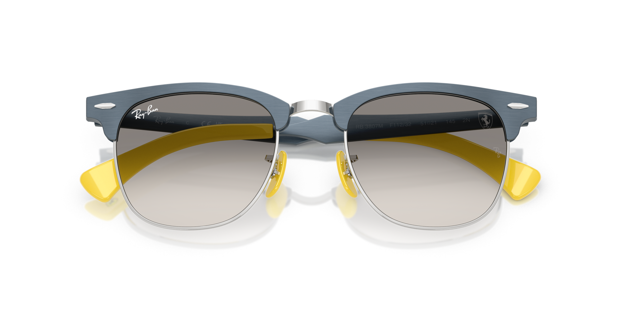 Ray-Ban RB3807M Scuderia Ferrari Collection sunglasses pay tribute to the legendary racing team with their iconic square shape and matte brushed blue on silver frame, while featuring a sleek and stylish design that is perfect for those who want to showcase their passion for speed and style. The clear gradient grey lenses, which add a sophisticated touch, enhance both the clarity and elegance of the overall look.