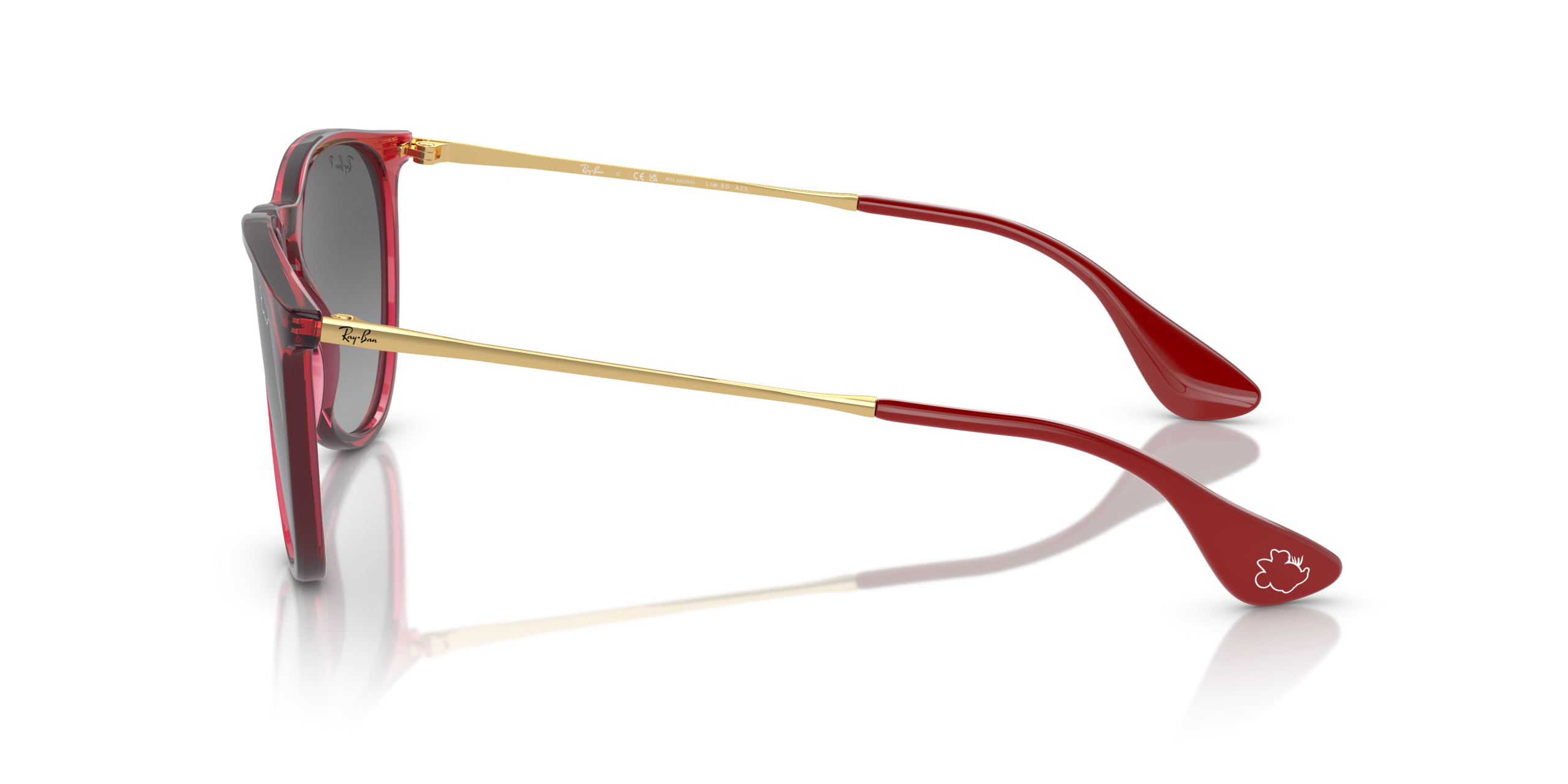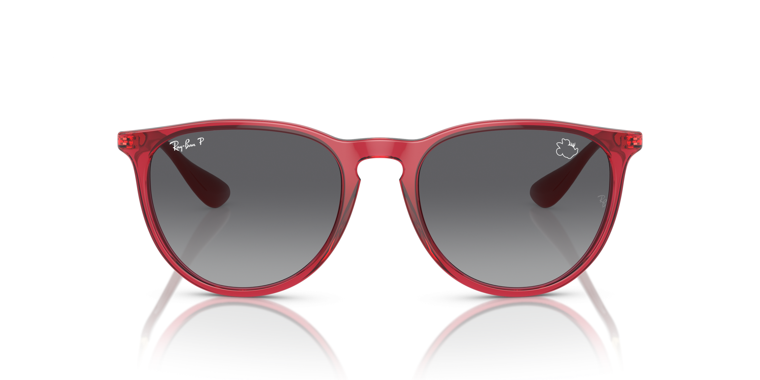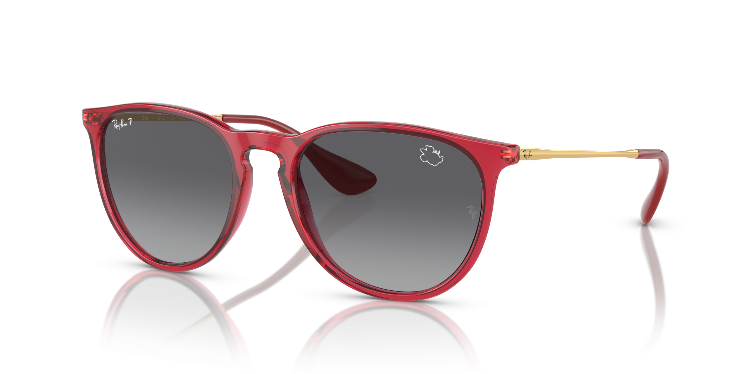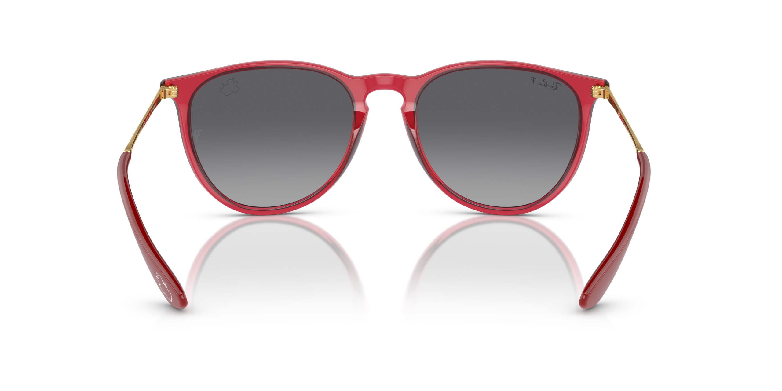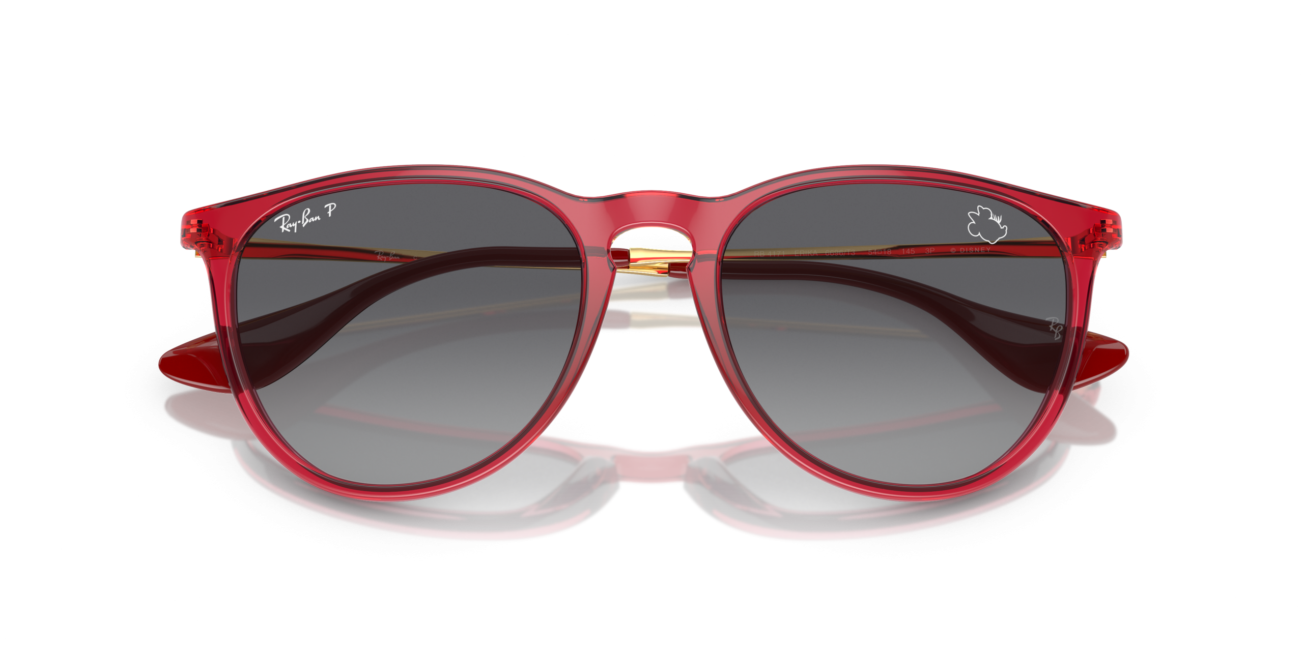 Personalize your favorite frames with our range of custom sunglasses. Create your own custom Erika and stand out from the crowd. A special edition style from the Ray-Ban X Disney collection celebrating one of Disney’s most stylish characters: Minnie Mouse. This unique Erika has a striking gold metal and transparent red frame paired with gray-gradient Polarized lenses. Minnie’s inimitable profile, featuring her iconic bow and eyelashes, is subtly etched on both the right lens and temple tips to complement Erika’s understated design. Every pair comes in an exclusive red case and box, complete with a certificate of authenticity.
