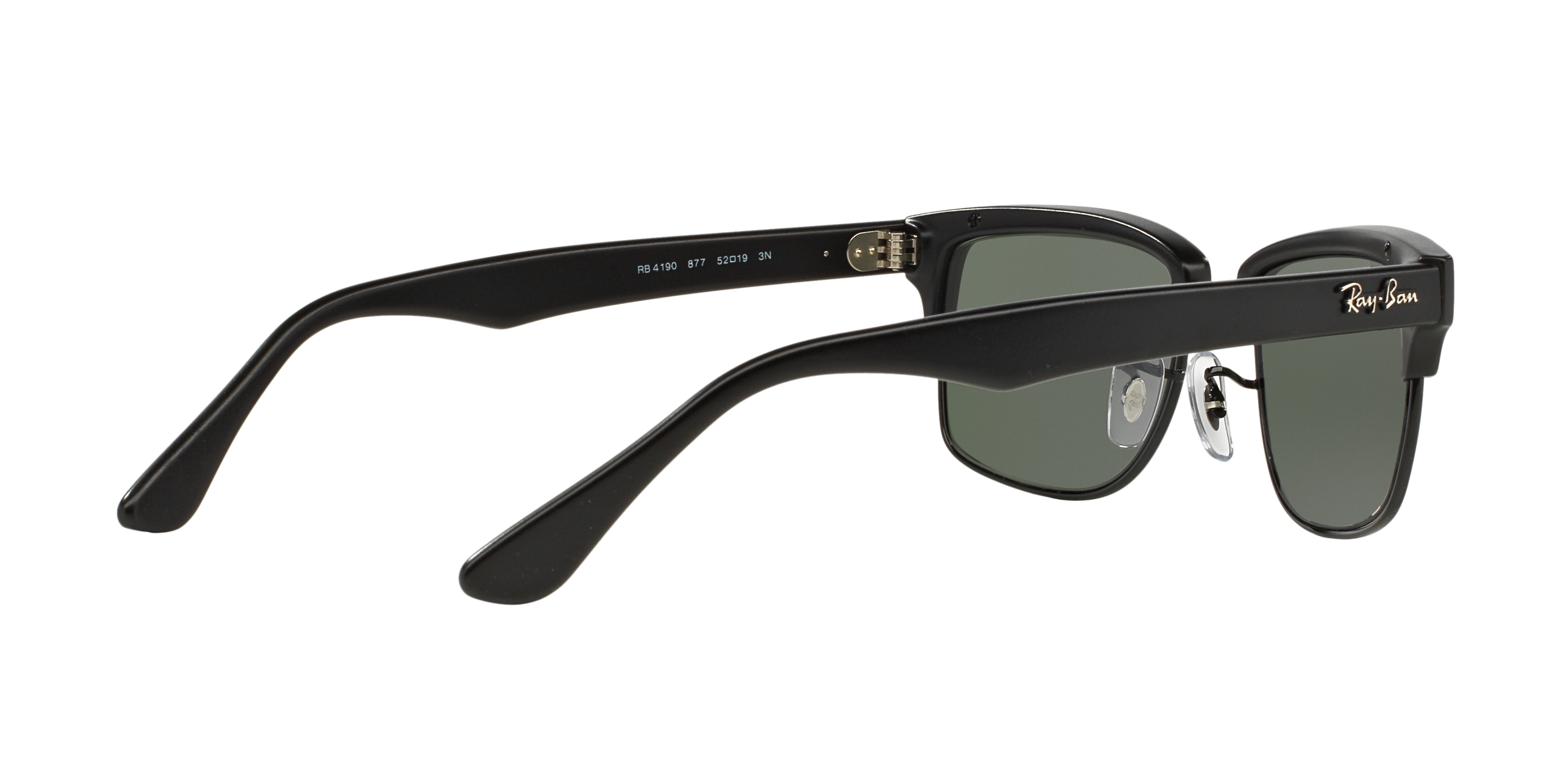 The classic Ray-Ban Clubmaster just received a modern and trendy makeover with Ray-Ban Clubmaster Square sunglasses. Featuring stylish square lenses, these Clubmaster spinoffs will ensure you stand out while still fashioning one of todays most popular Sunglasses. Clubmaster Square RB4190 sunglasses have been engineered by Ray-Ban designers to have unique rivets in the frame and slick new temples bearing the famous Ray-Ban signature. This comfortable and versatile sunglass style looks great on all face shapes and is offered in a variety of frame colors such as black, blue and tortoise as well as multiple lens treatments including polarized, crystal green, crystal grey and gradient brown.
