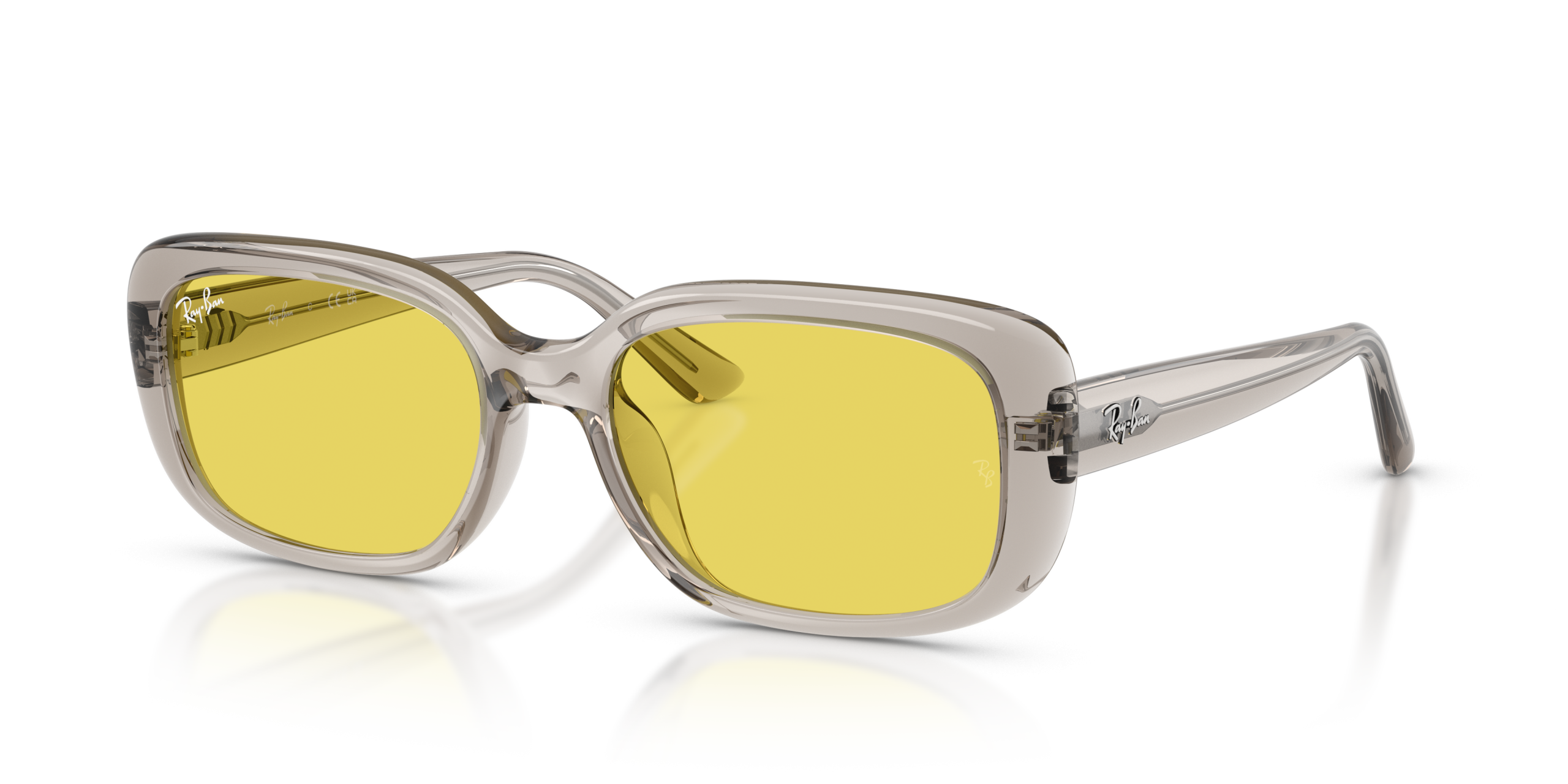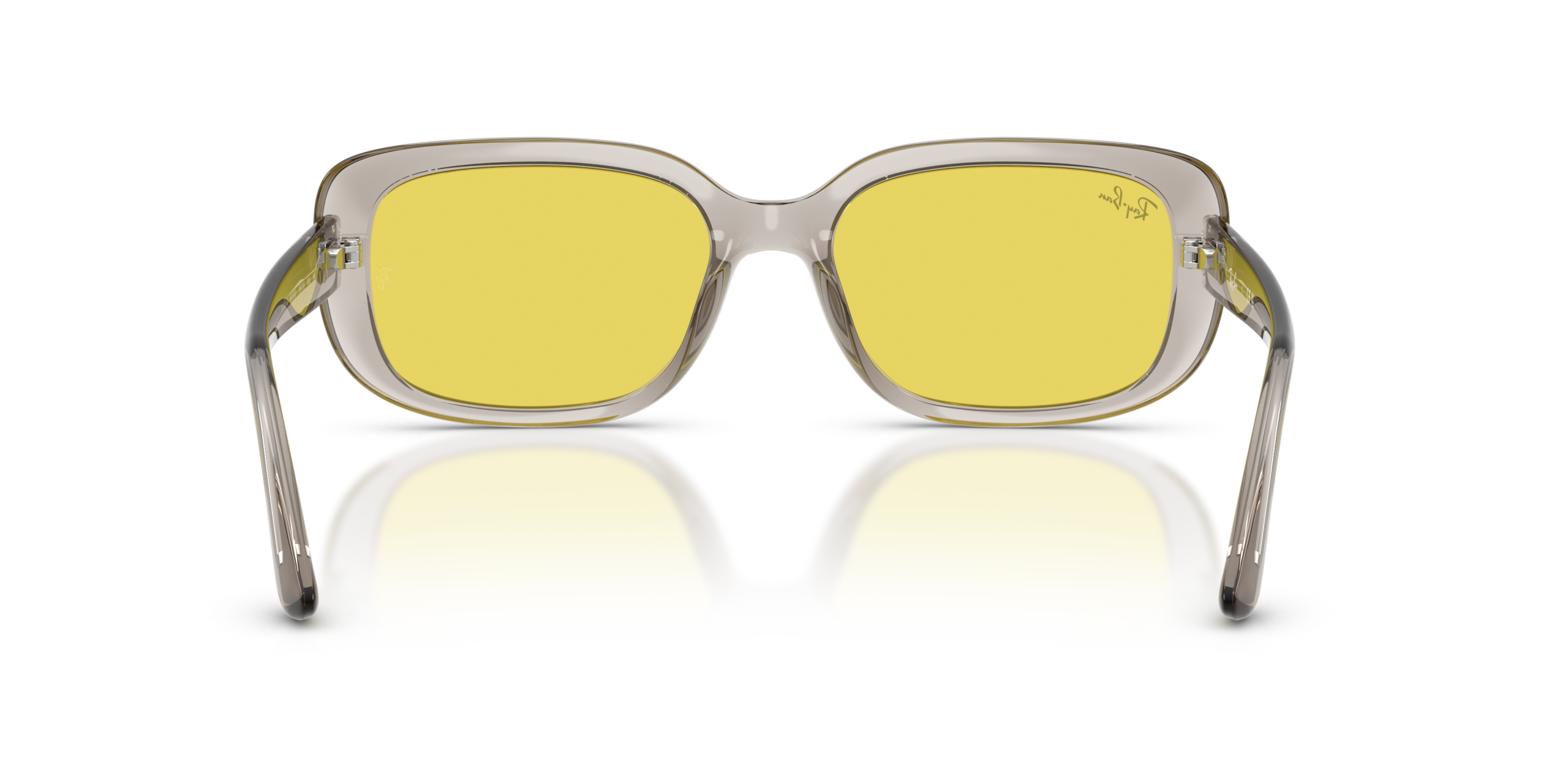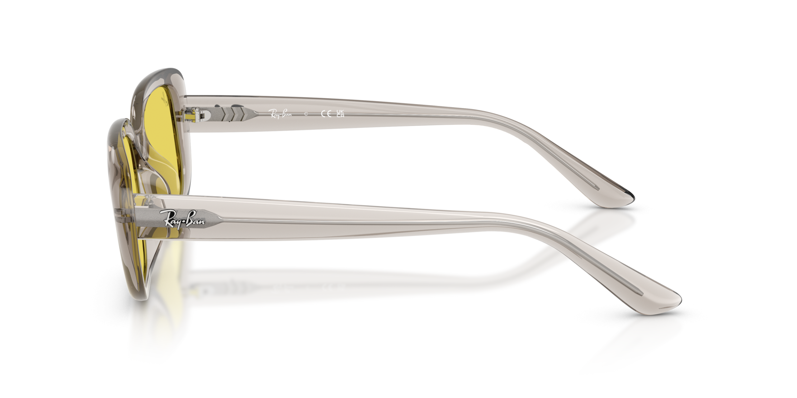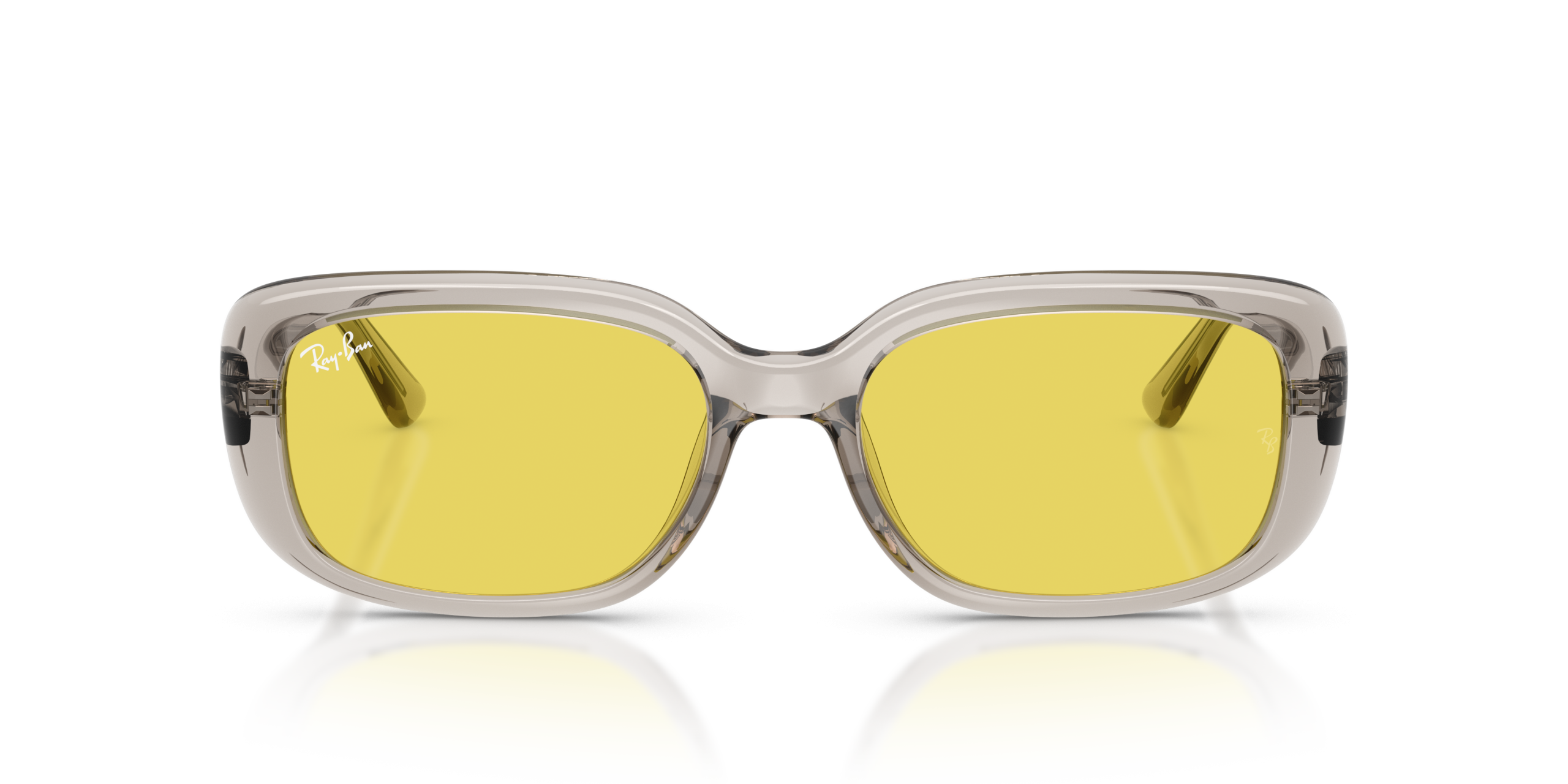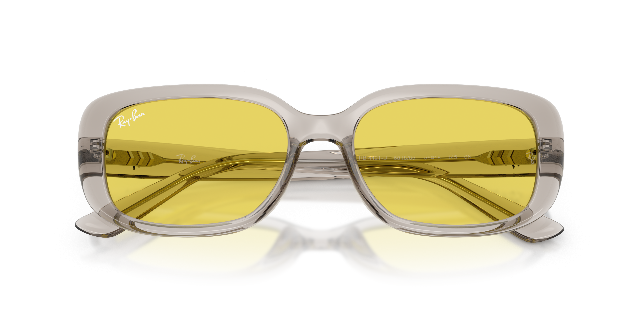 Ray-Ban RB4421D Bio-Based sunglasses features a pillow-shaped frame in transparent light beige, adding a unique touch to your style. The solid yellow lenses offer 100% UV protection and enhance the overall look of these sunglasses.