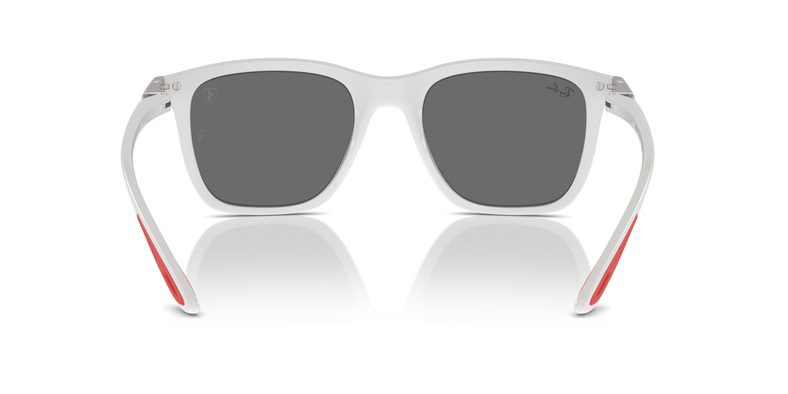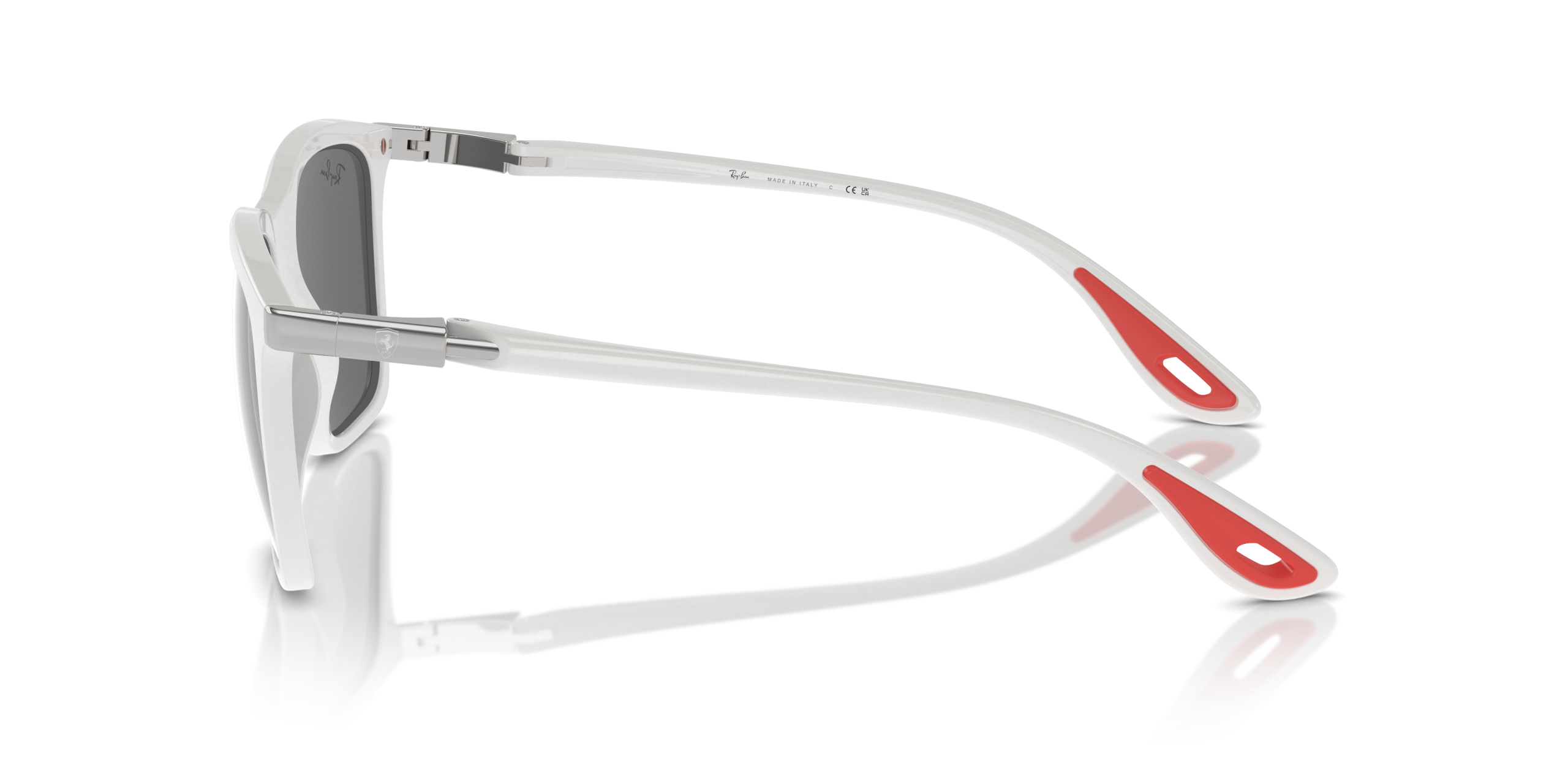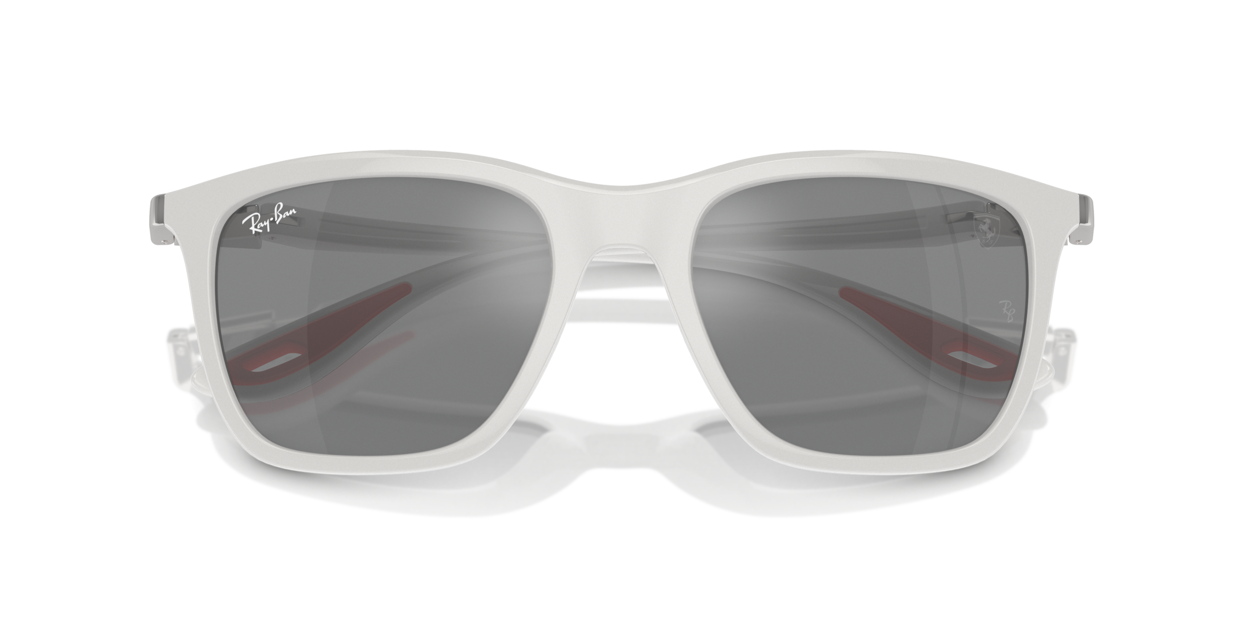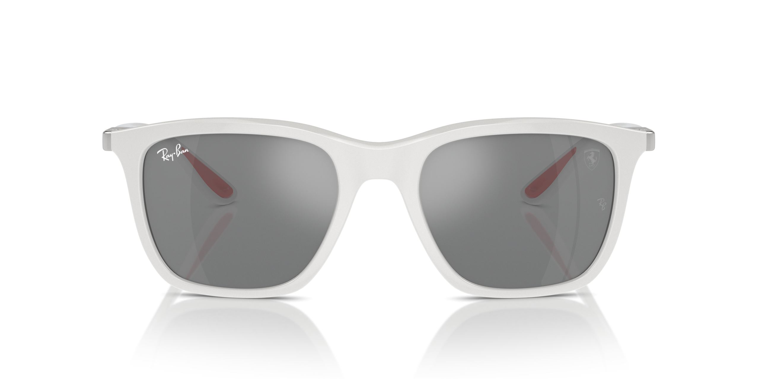 Ray-Ban RB4433M Scuderia Ferrari Collection feature the iconic square shape with a polished white frame, paying homage to the legendary racing team. The grey mirror lenses add a sleek and sporty touch, while the red Scuderia Ferrari shield on the temples adds a pop of color and style. These sunglasses are perfect for those who want to stand out from the crowd and show their love for speed and style.