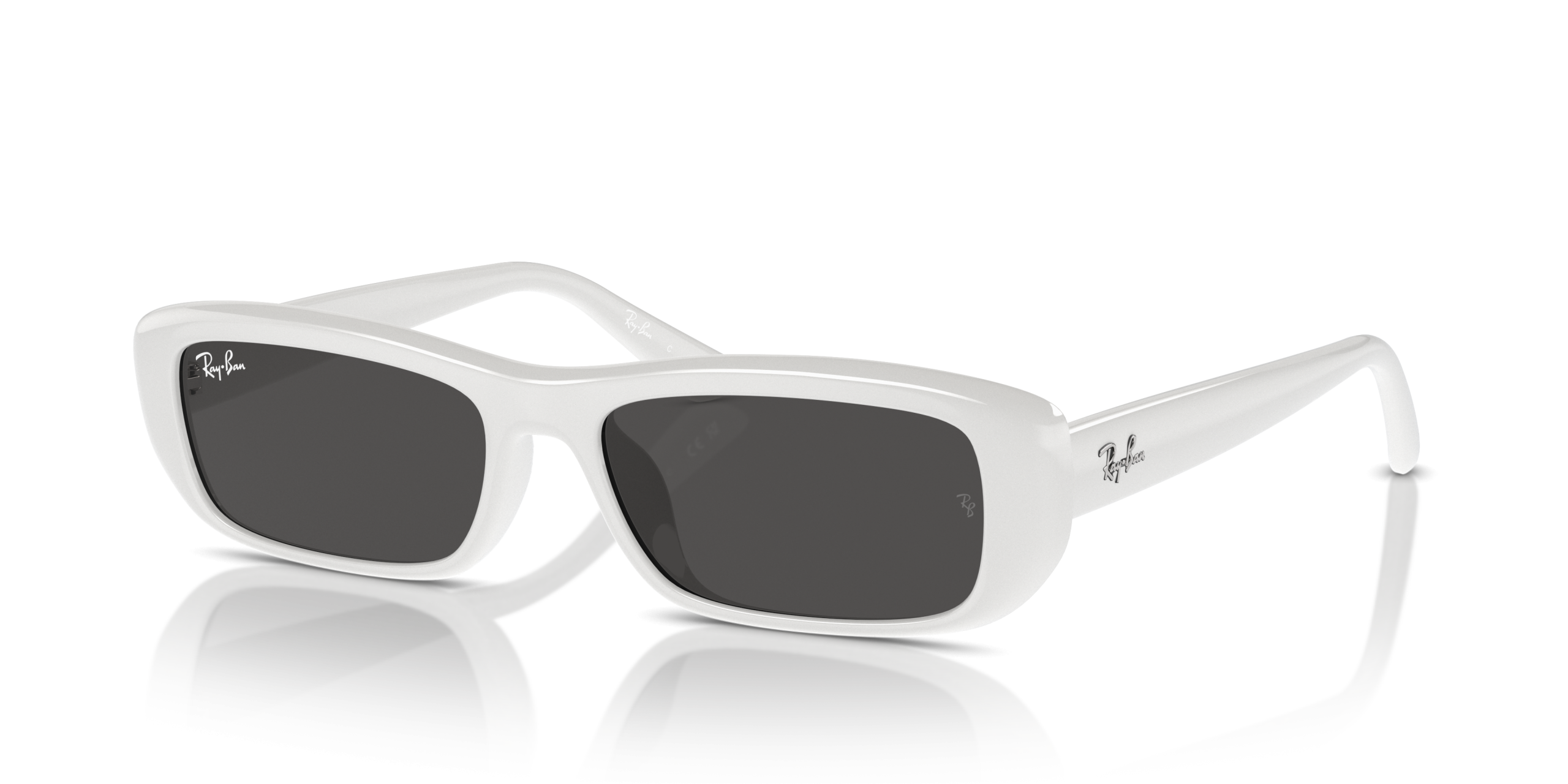 Ray-Ban RB4436D Bio-Based are a modern and stylish choice for anyone. The pillow-shaped white frame, paired with dark grey lenses, offers a sleek and sophisticated look. These sunglasses are perfect for adding an edge to any outfit.