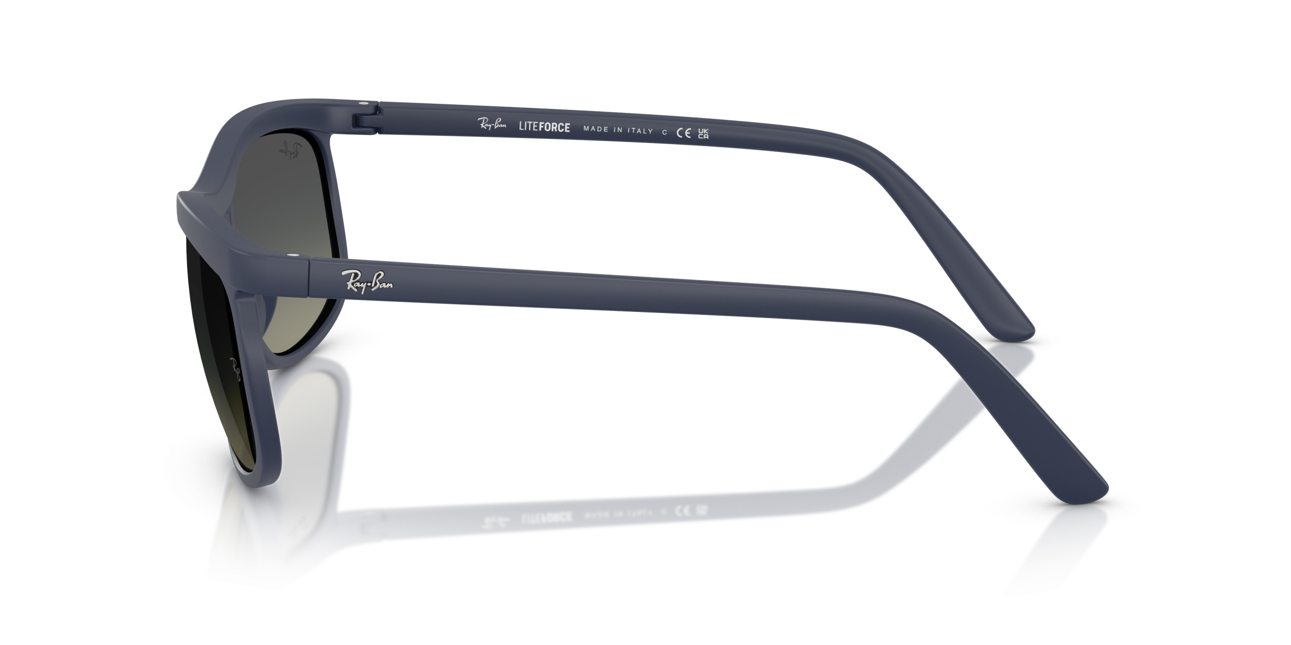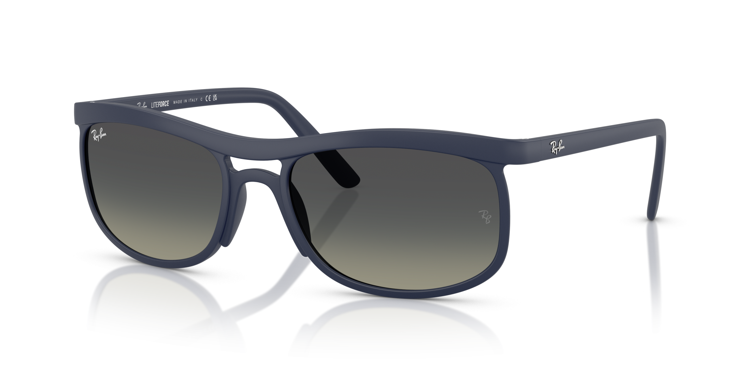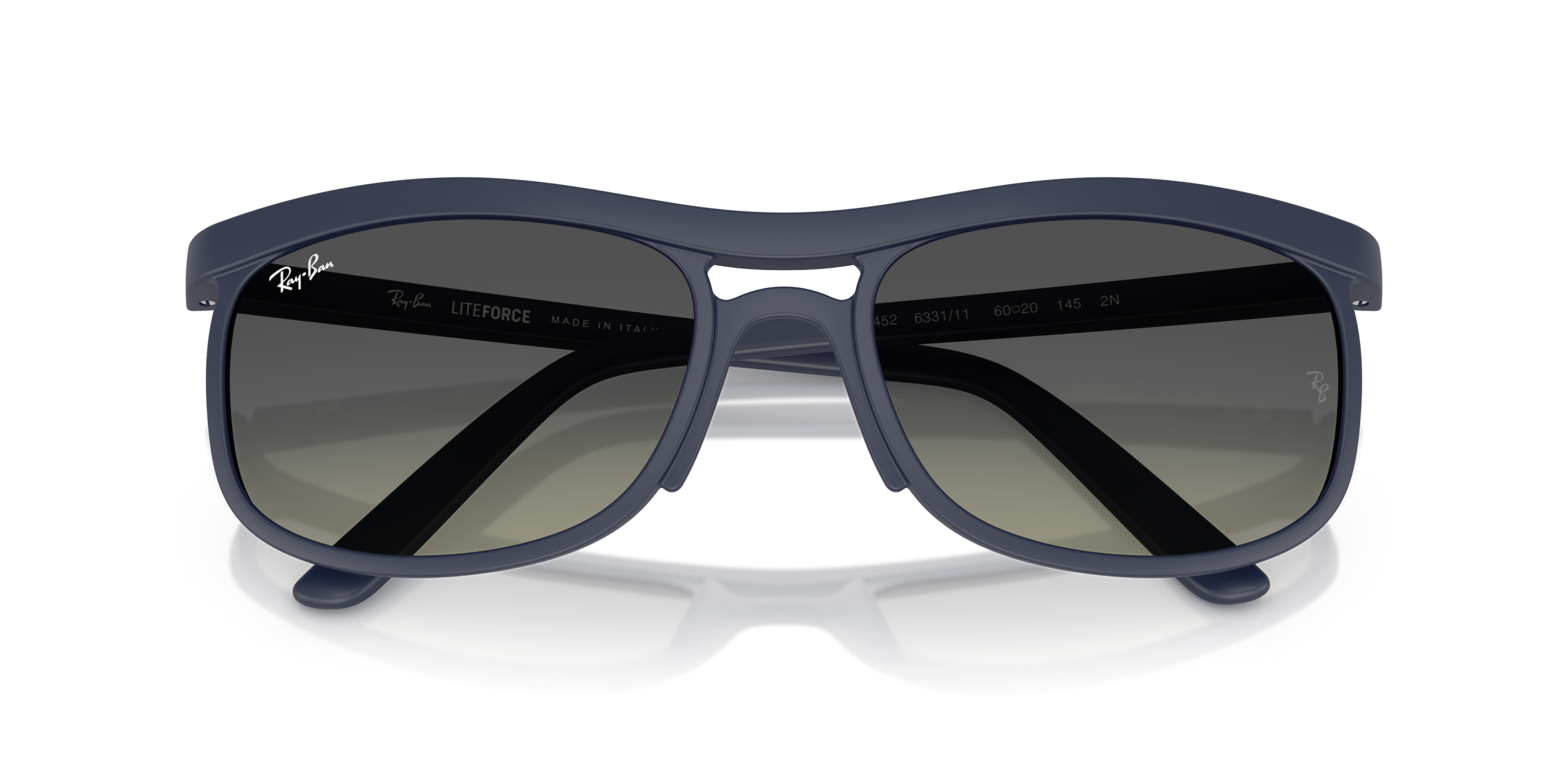 Ray-Ban RB4452 Liteforce features a square peek frame in sand dark blue with gradient grey lenses. The matte finish adds a sleek touch to these lightweight and durable shades. Perfect for both casual and sporty looks, these sunglasses offer 100% UV protection and are sure to make a statement wherever you go.