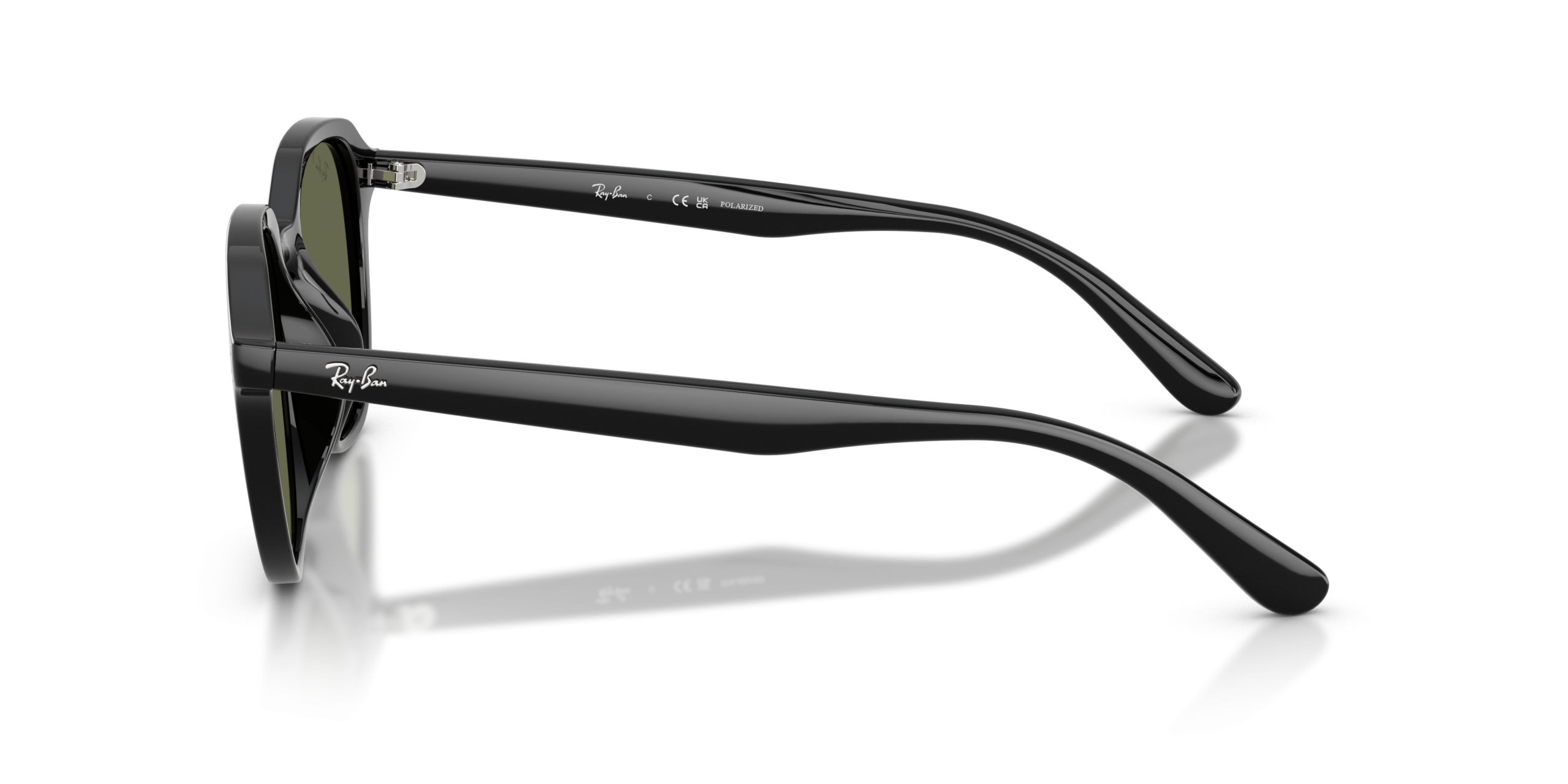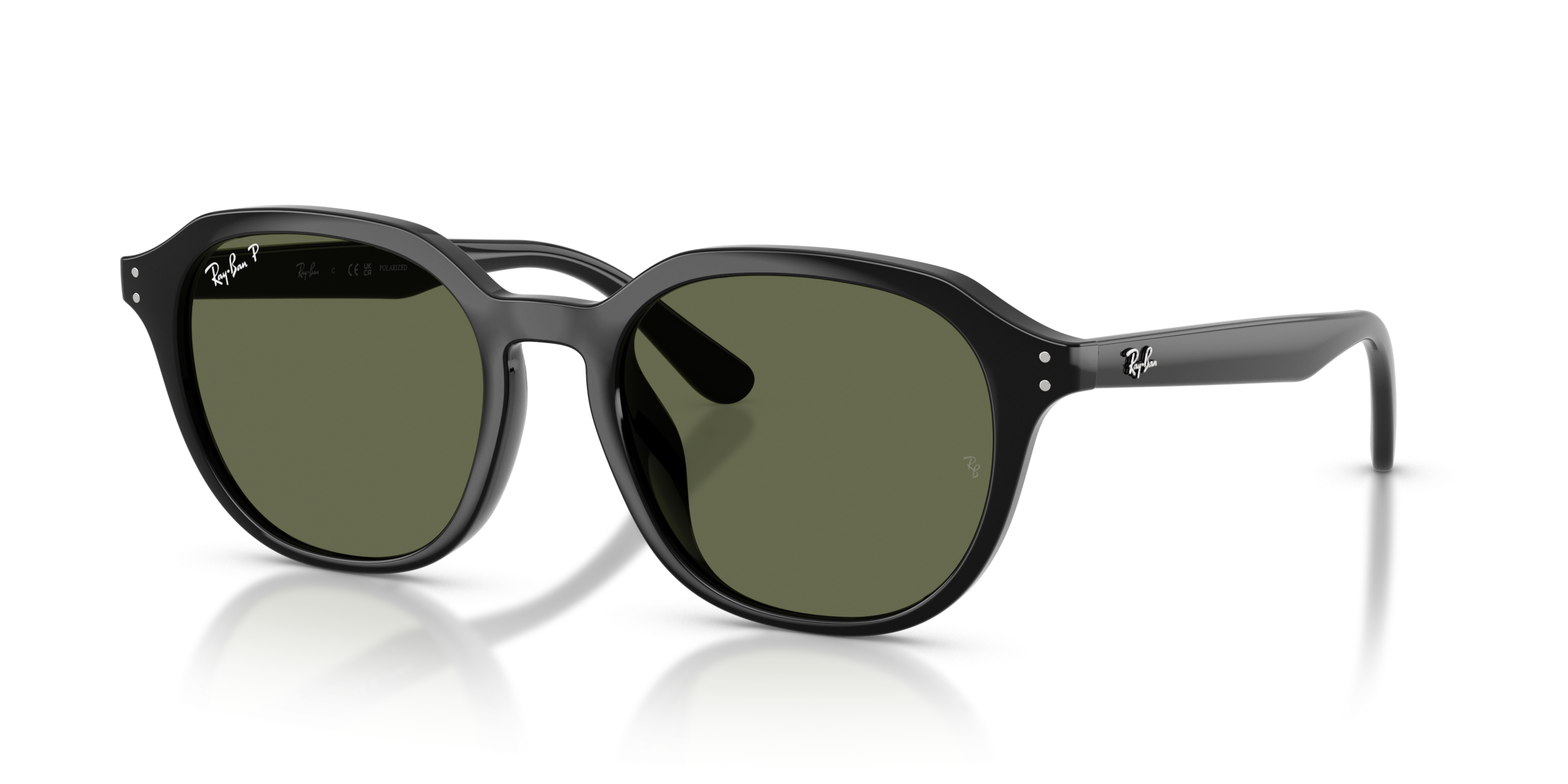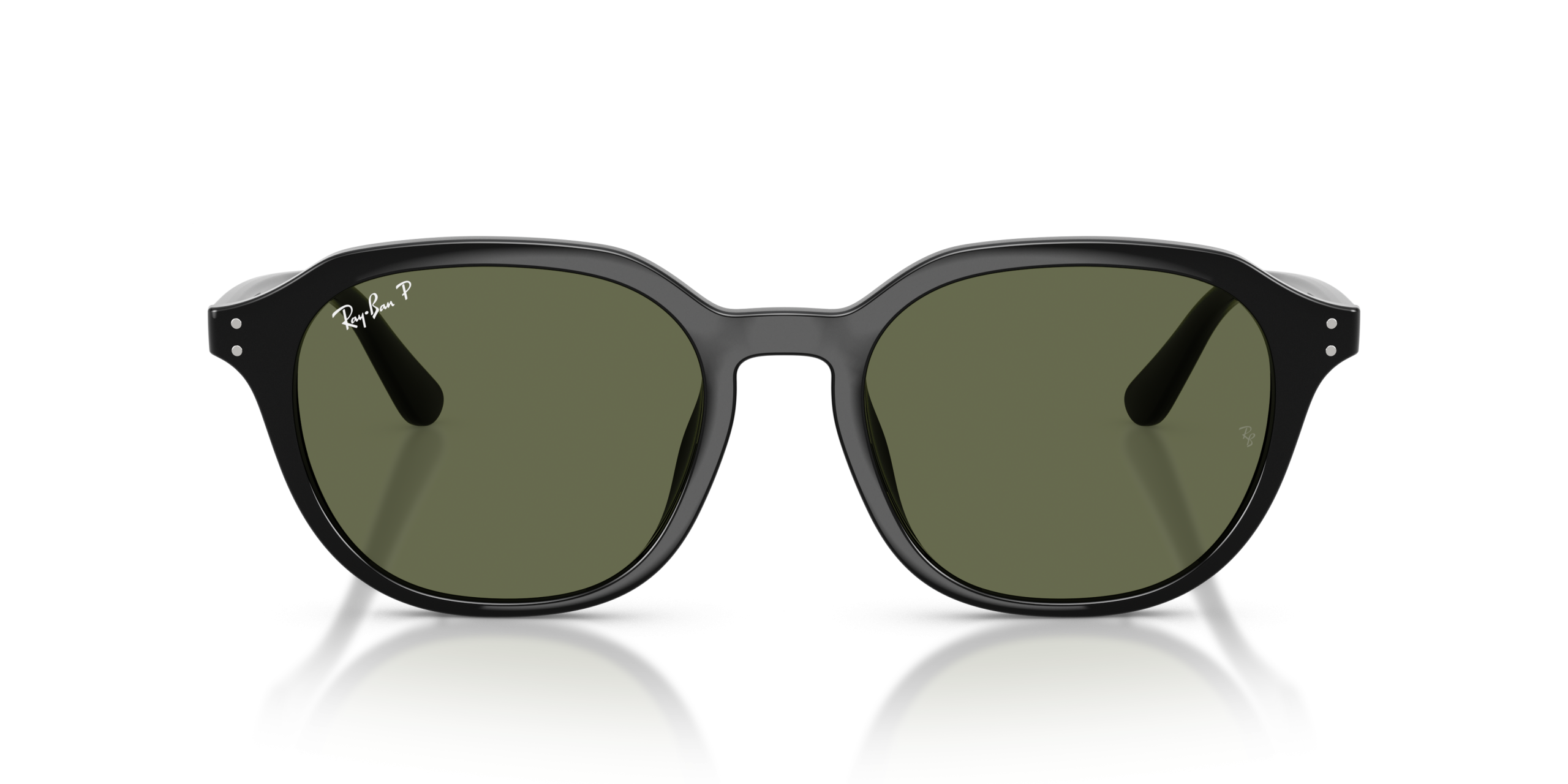 Ray-Ban RB4459D features a square-shaped frame in polished black, with dark green polarized lenses, providing a sleek and stylish look. These sunglasses offer both comfort and durability for all-day wear.