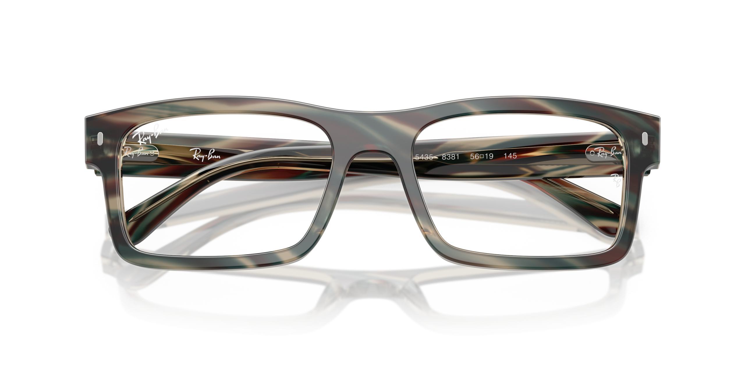 Ray-Ban RB5435 Optics eyeglasses are perfect for those who want to make a statement with their eyewear. The rectangle shape and polished striped grey acetate material give these glasses a modern and edgy look. Plus, the branding on the temples adds a touch of style. The light-responsive frame is made with photochromic dyes that activate in seconds under UV. The pigments change to reveal unique markings, and as the light gets stronger, so does the pattern.
