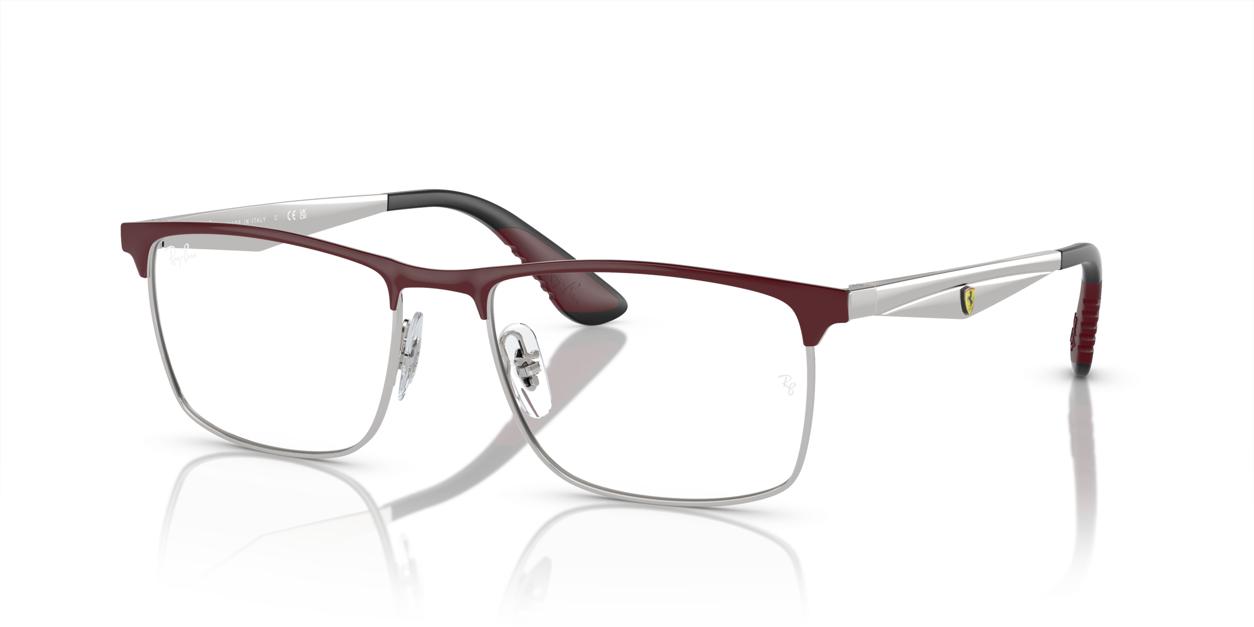 Ray-Ban RB6516M Optics Scuderia Ferrari Collection in a sleek rectangle shape, pay homage to the iconic racing team with its metal frame in dark red on silver. This design adds a modern touch, making it perfect for everyday wear and ensuring that these eyeglasses, both on and off the track, make a statement.
