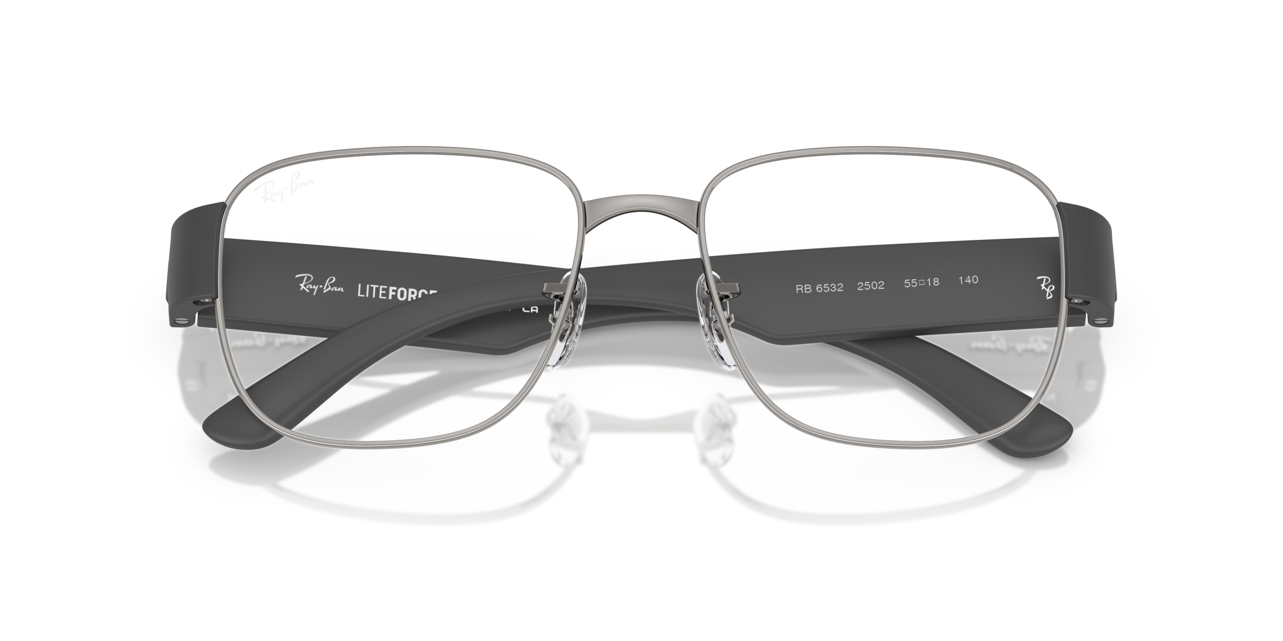 Ray-Ban RB6532 Optics showcase a timeless square metal frame in gunmetal hue, perfect for everyday wear. The polished finish adds a sleek touch to this versatile style. These eyeglasses are sure to make a statement wherever you go.
