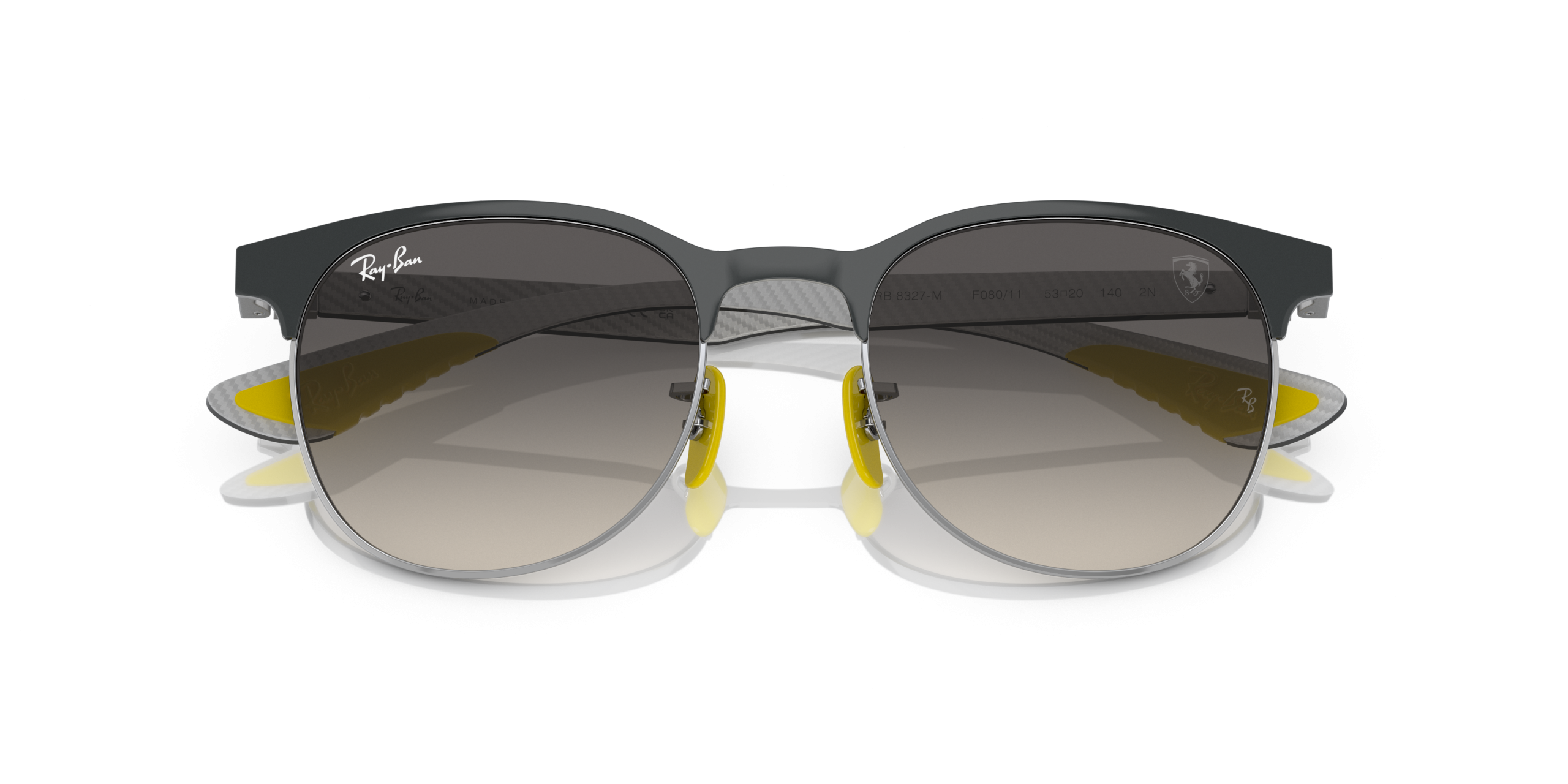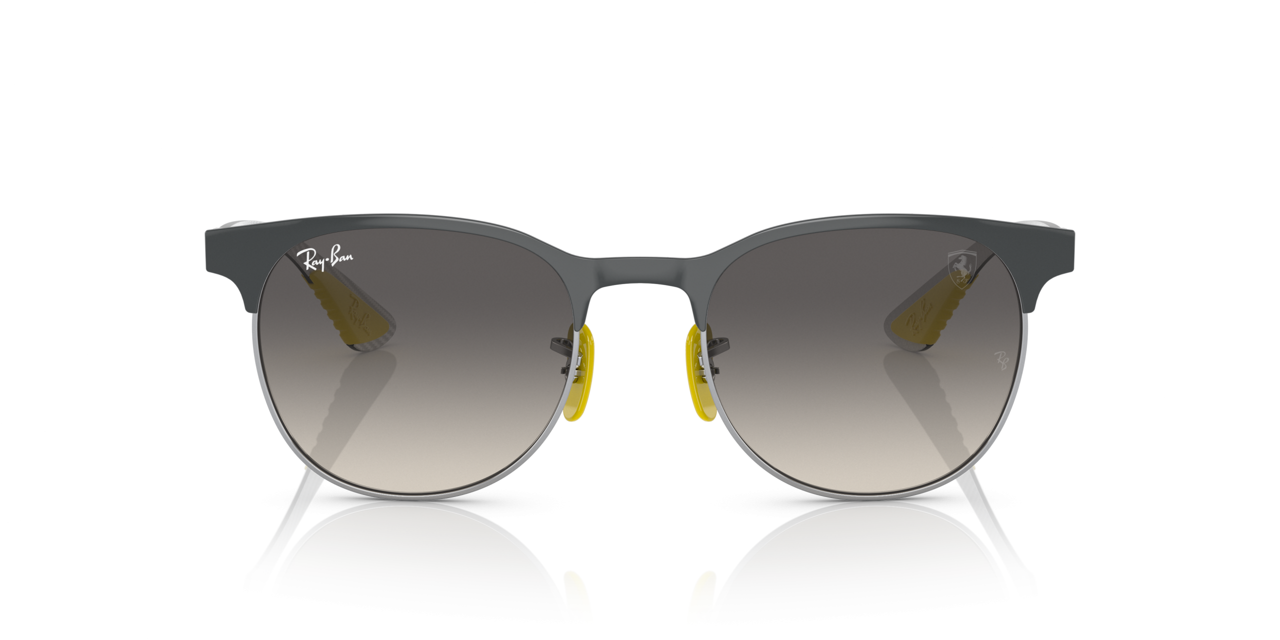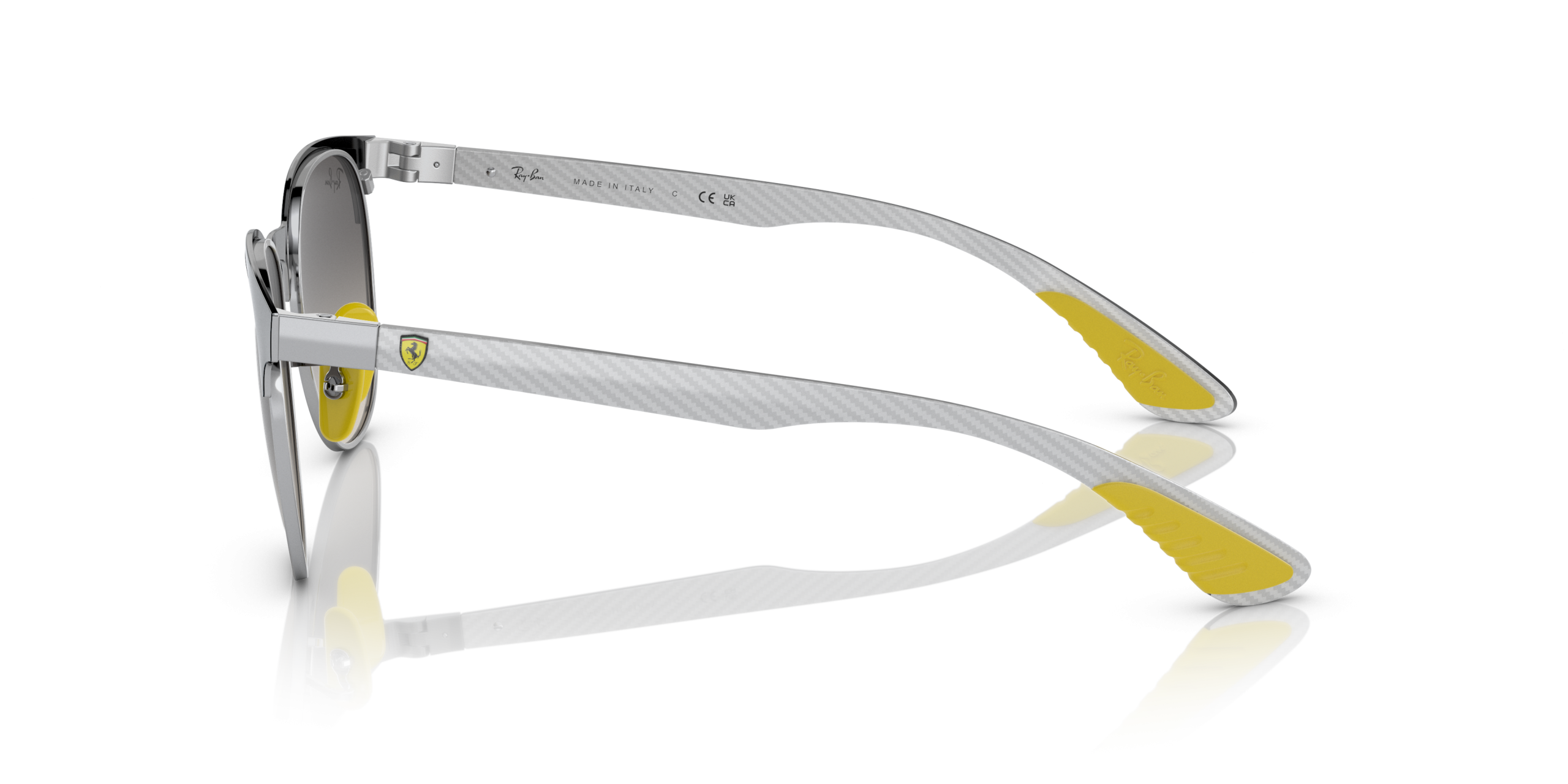 A mix between high-tech & lifestyle models, inspired by the iconic F1 team and made from state-of-the-art racing materials.The iconic Clubmaster, reinterpreted to feature ultra-light carbon fibre elements. Made with premium materials, these light yet robust frames showcase Ferrari’spersonality – with Chromance mirror lenses and featuring colours such as Rosso Corsa red and Modena Yellow taken from the Ferrari palette.