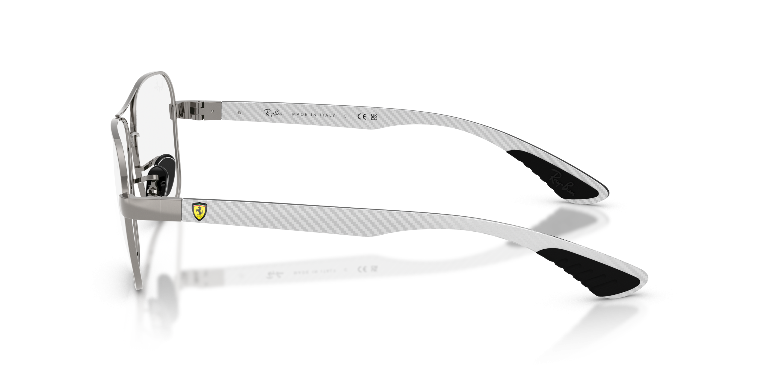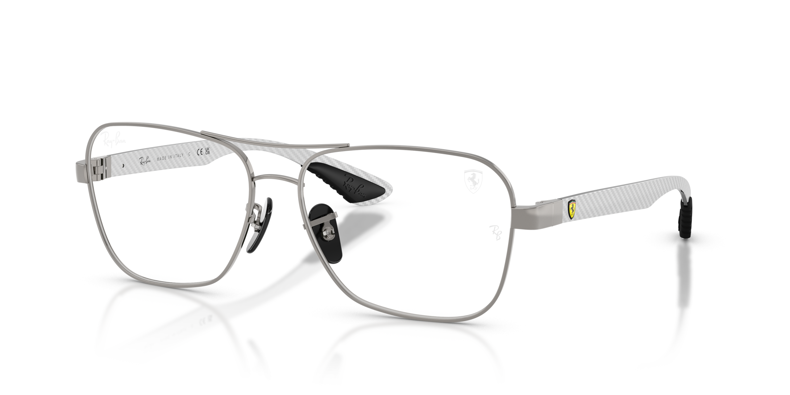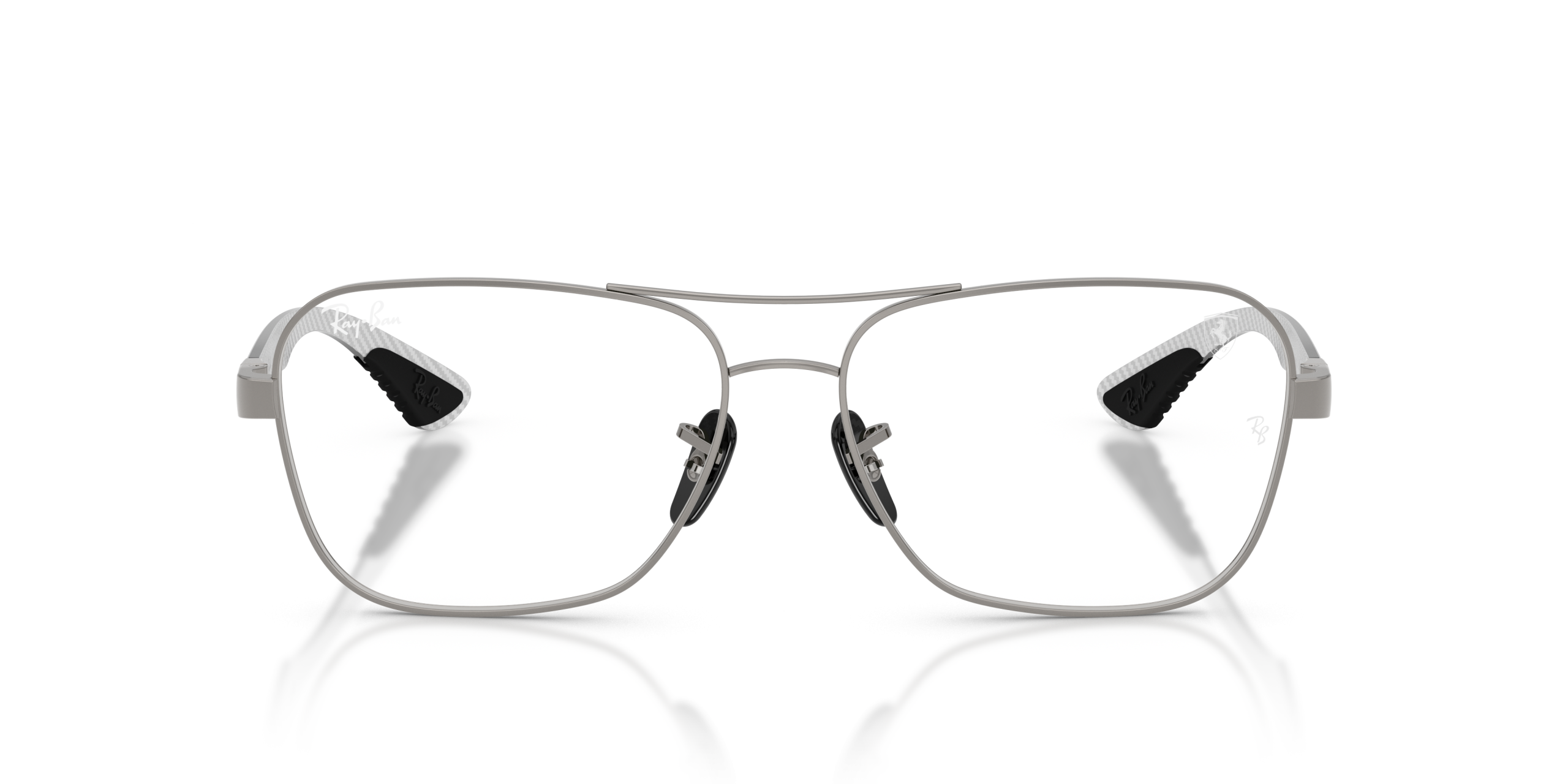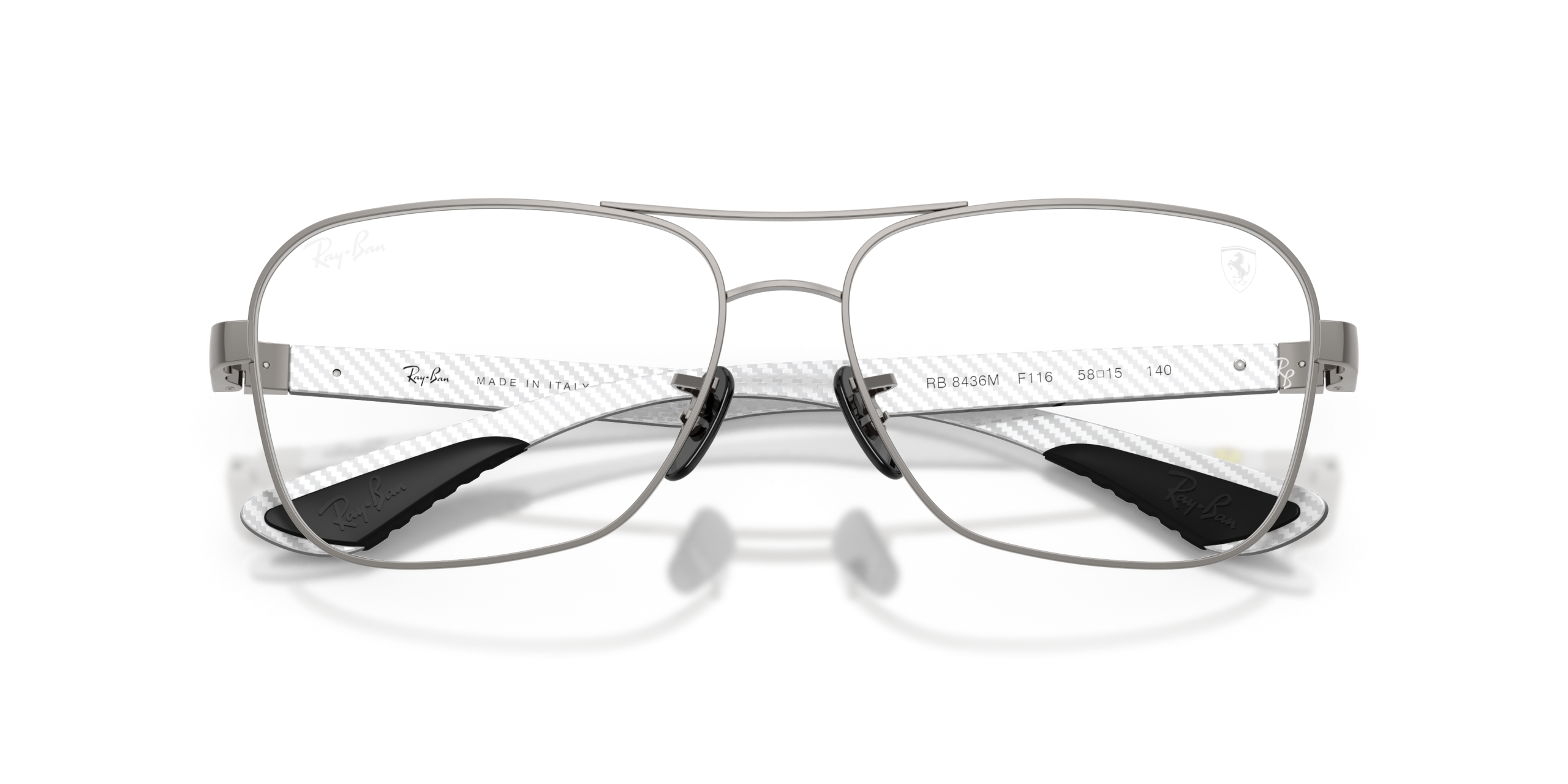 Ray-Ban RB8436M Optics Scuderia Ferrari Collection showcases the iconic metal square frame in a polished gunmetal finish. The temples are embellished with the legendary Ferrari shield and red accents, honoring the racing heritage of Ray-Ban and Ferrari. These eyeglasses are perfect for individuals who desire to make a statement while embracing a sleek and stylish appearance.