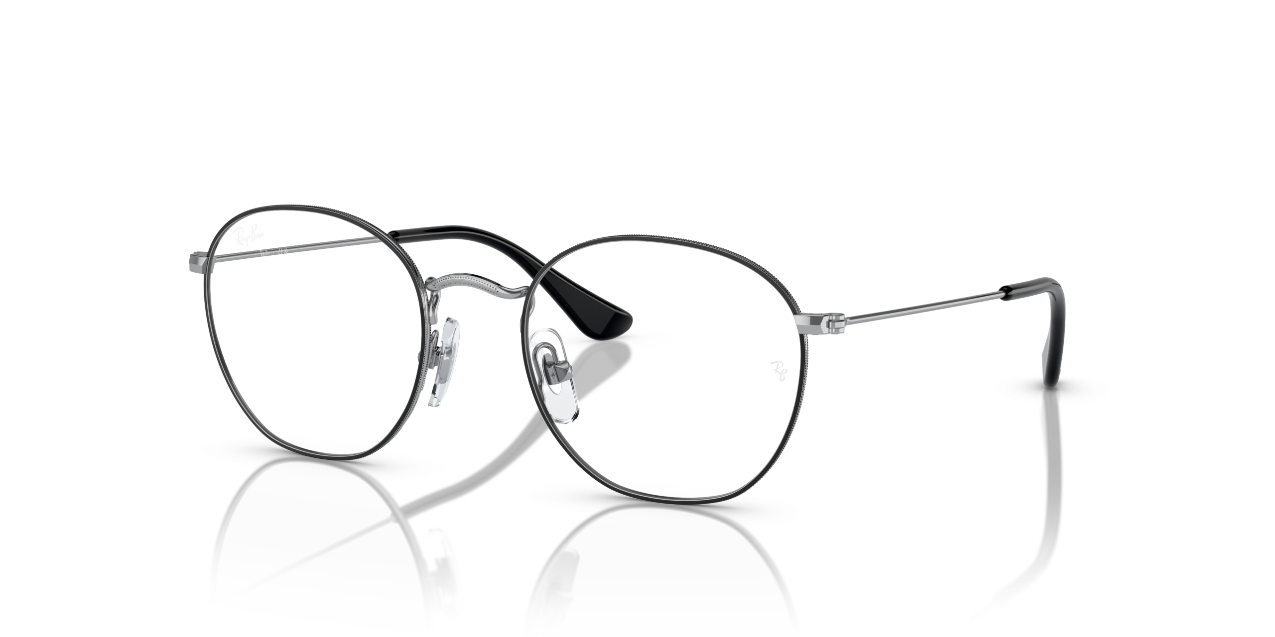 RB9572V eyeglasses Ray-Ban Rob Optics Kids is a unique metal frame that’s both tough and playful. The irregular shape and silver frame add edge to this otherwise cool metal frame. Perfect for the kid who’s ready to take on the world.