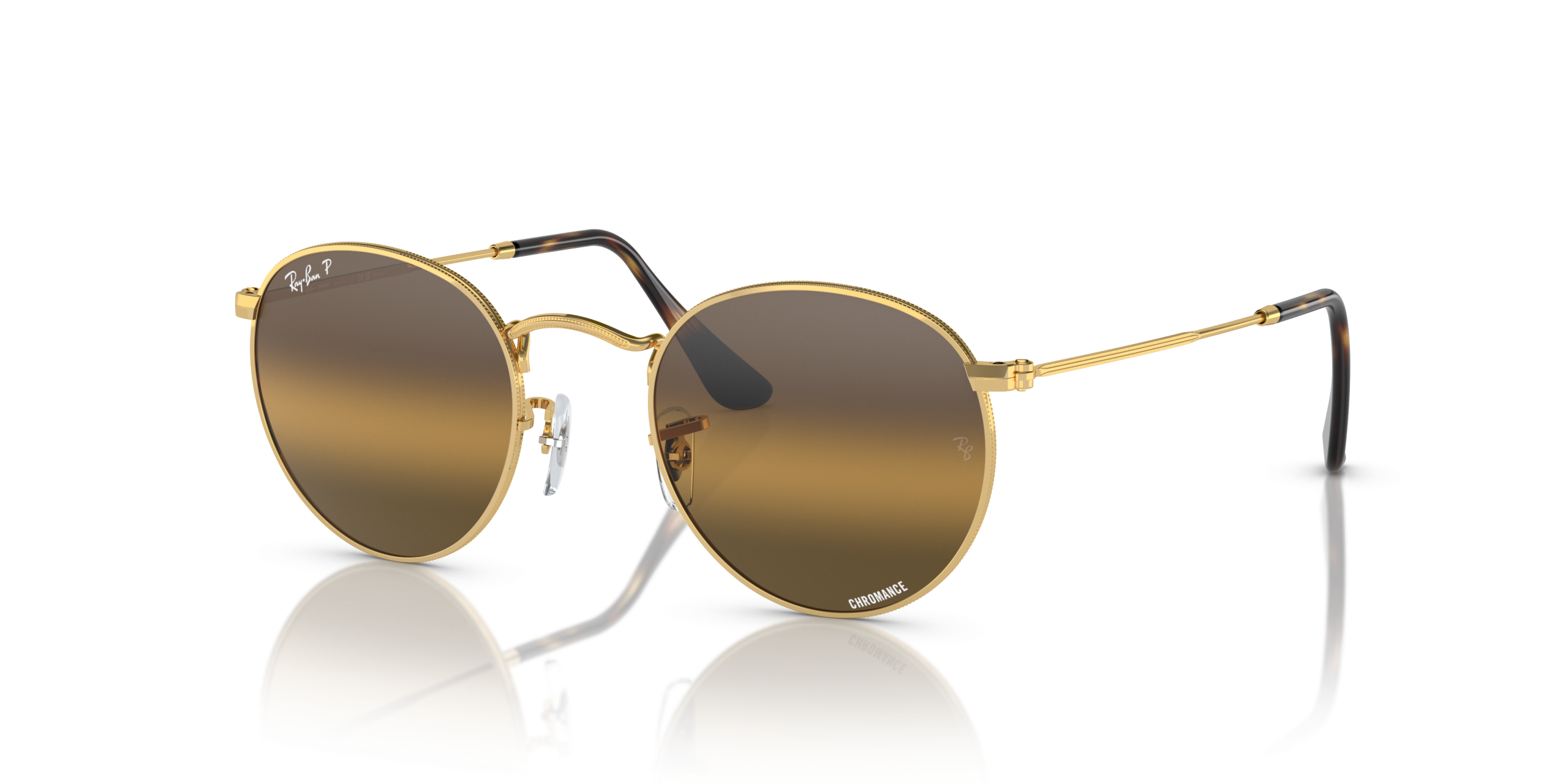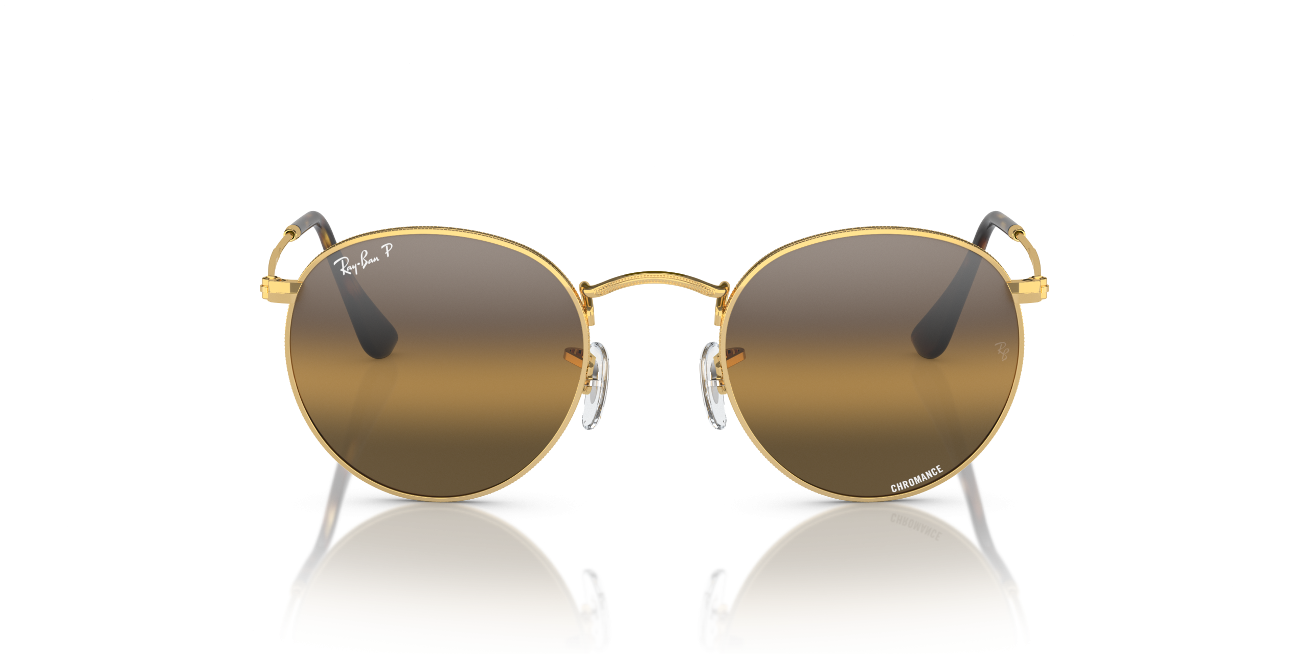 Personalize your favorite frames with our range of custom sunglasses. Create your own custom Round and stand out from the crowd. Ray-Ban Round Metal Chromance sunglasses are a stylish and versatile choice for any occasion. The round metal frame in gold with silver/brown polarized lenses adds a touch of sophistication to your look. Perfect for sunny days out or just for adding some flair to your outfit, these sunglasses are sure to make a statement wherever you go.