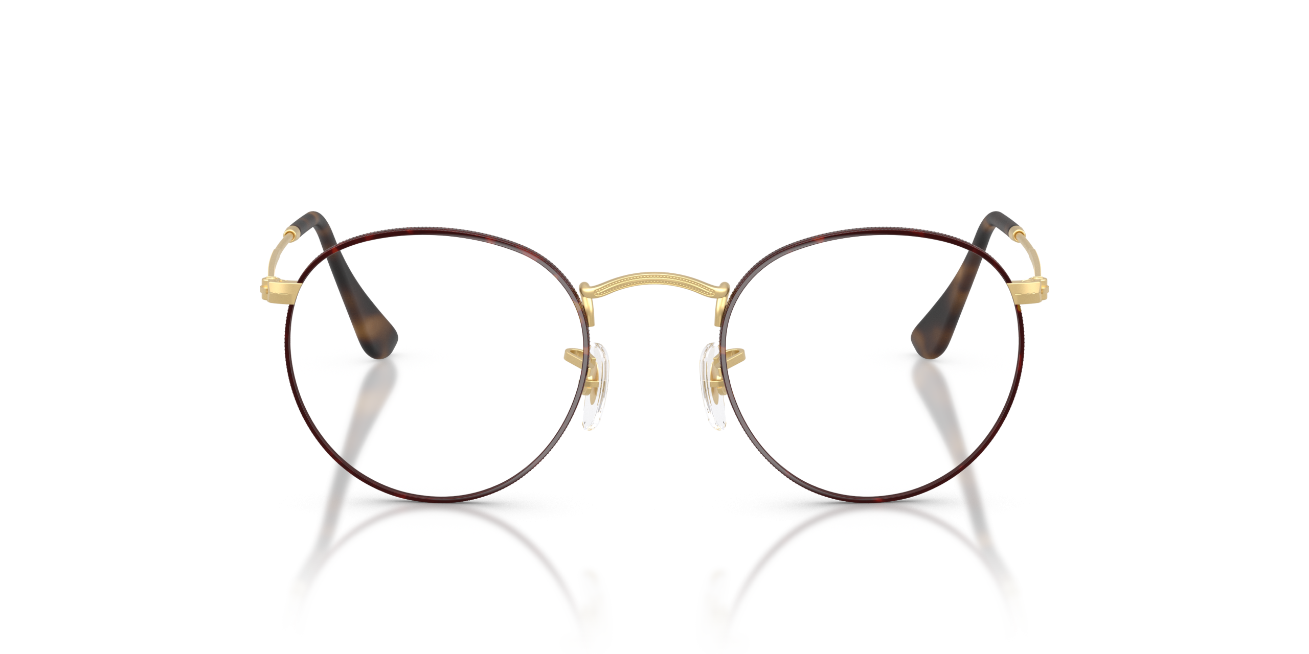Personalize your favorite frames with our range of custom sunglasses. Create your own custom Round Optics and stand out from the crowd. Ray-Ban Round Metal eyeglasses in a matte havana on matte arista color combination features a round metal frame and thin temples, providing enhanced comfort with adjustable silicone temple tips. This iconic style highlights the versatility of these eyeglasses, perfect for those looking to make a statement with their eyewear.