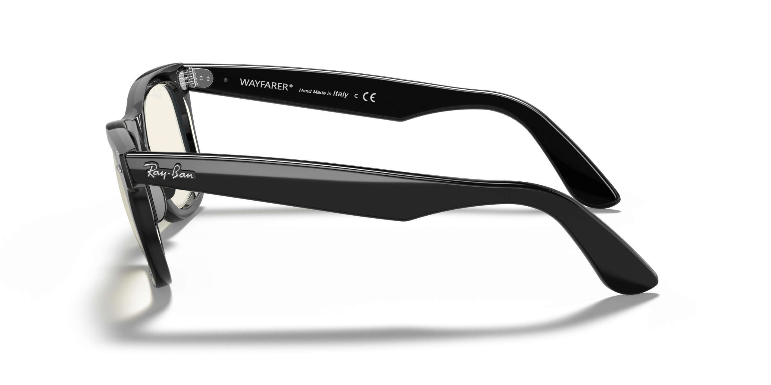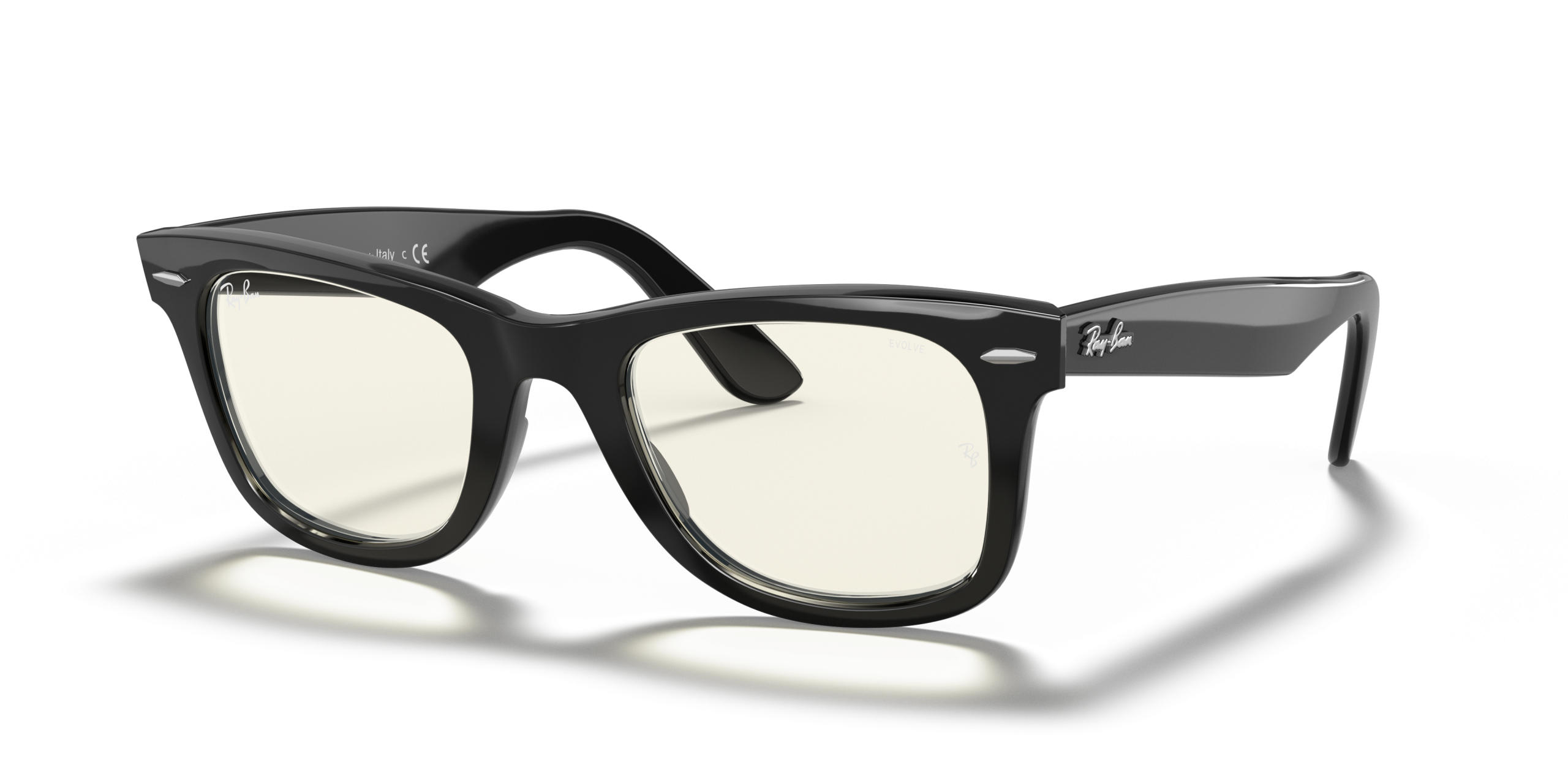 Ray-Ban Wayfarer is one of the most recognizable styles in the history of Sunglasses, gaining popularity among celebrities, musicians, artists and those with an impeccable fashion sense since its initial design in 1952. Now this iconic model is available with photochromic lenses that shift from clear to grey in changing light conditions \u2013 so you’ll never need to take them off. Wayfarer Clear Evolve in classic black combines timeless design with quality manufacturing. The crystal lenses, which offer maximum clarity, are finished with a front-side anti-reflective treatment and filter 100% of UV rays. From sunrise run to sunset bar, if they’re always on you’re always covered.