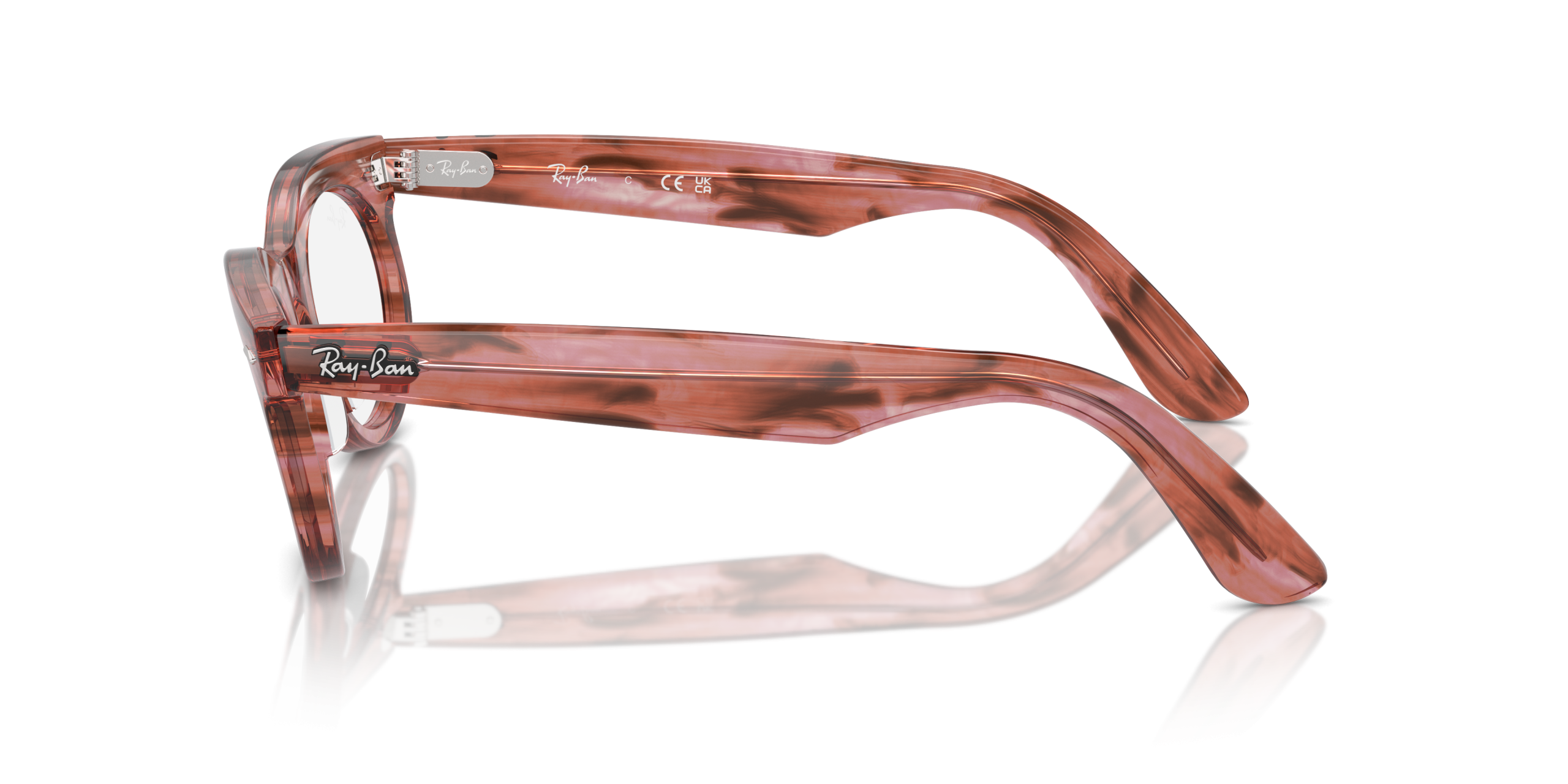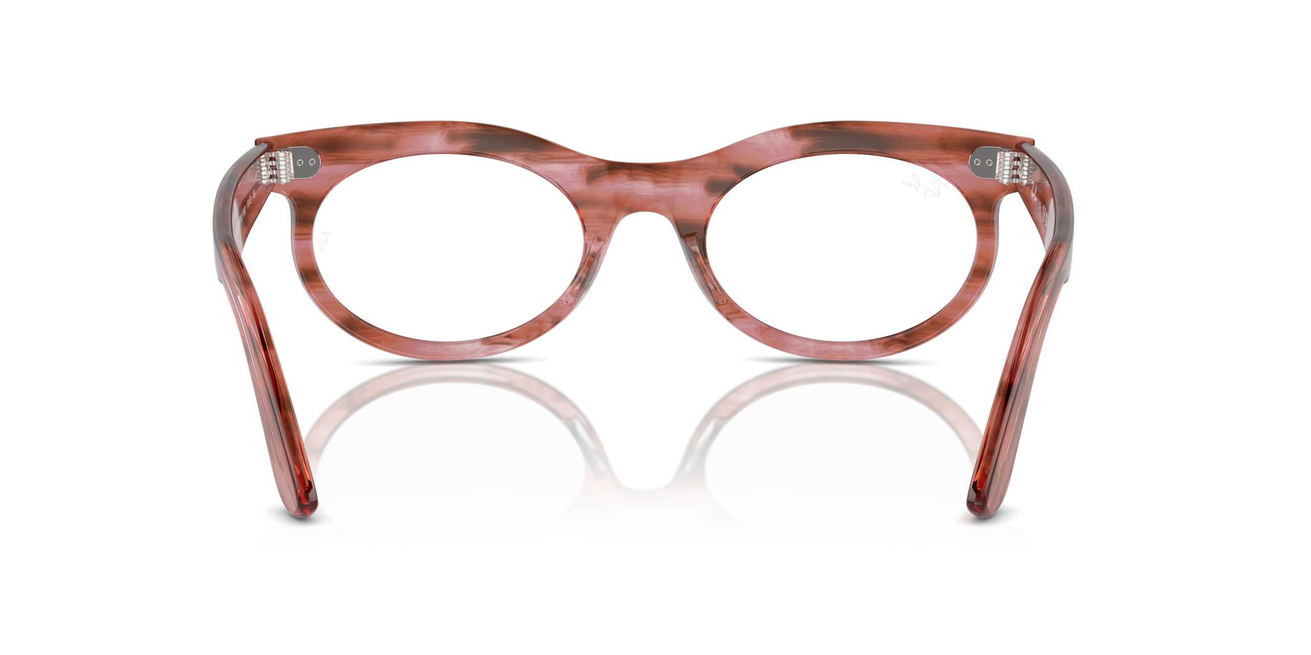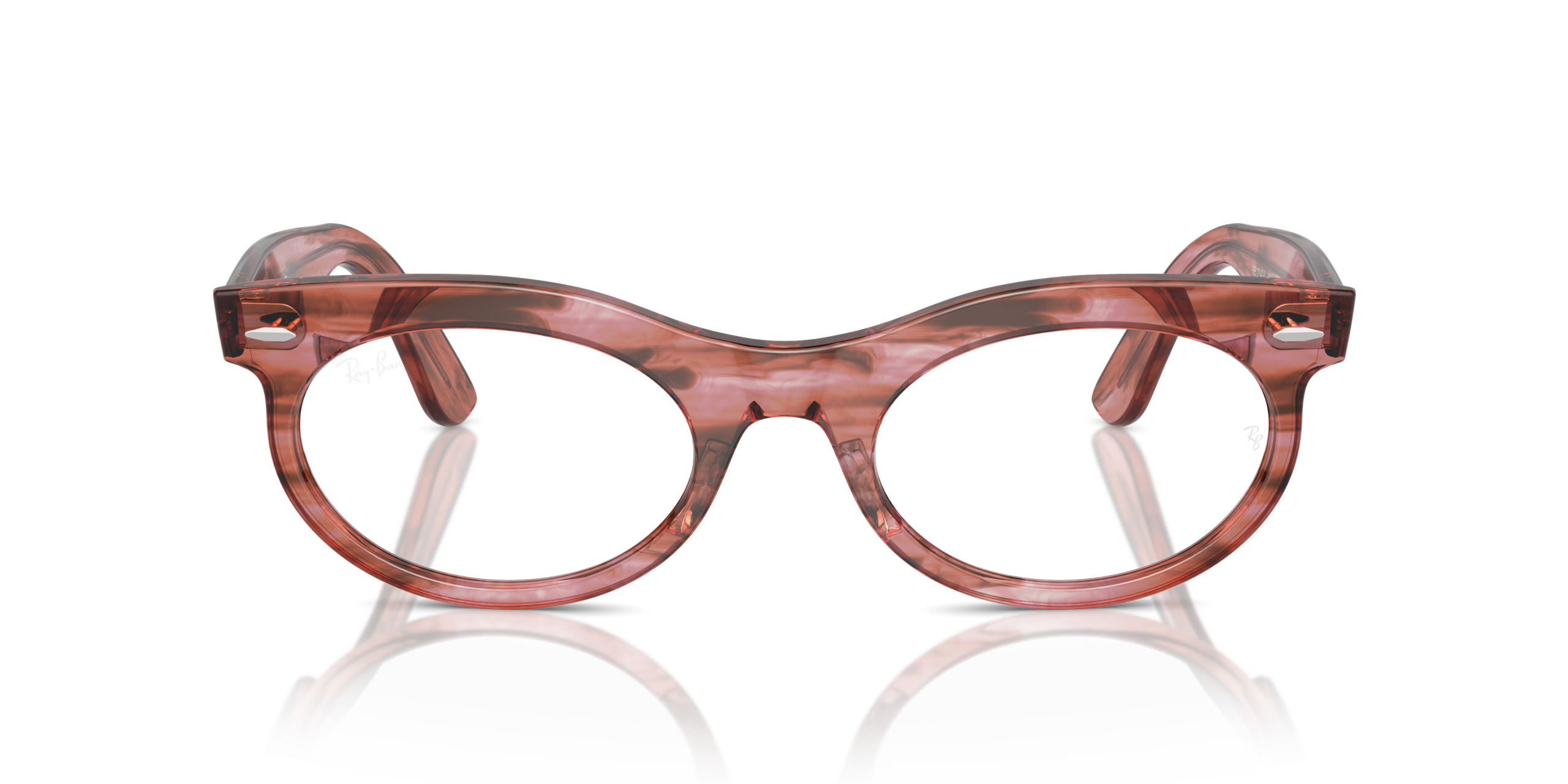 Ray-Ban Wayfarer Oval Optics are a fresh take on the iconic Wayfarer style. The oval shape and striped transparent pink color add a modern touch to this timeless design. With its polished finish, these eyeglasses are both stylish and practical for everyday wear.