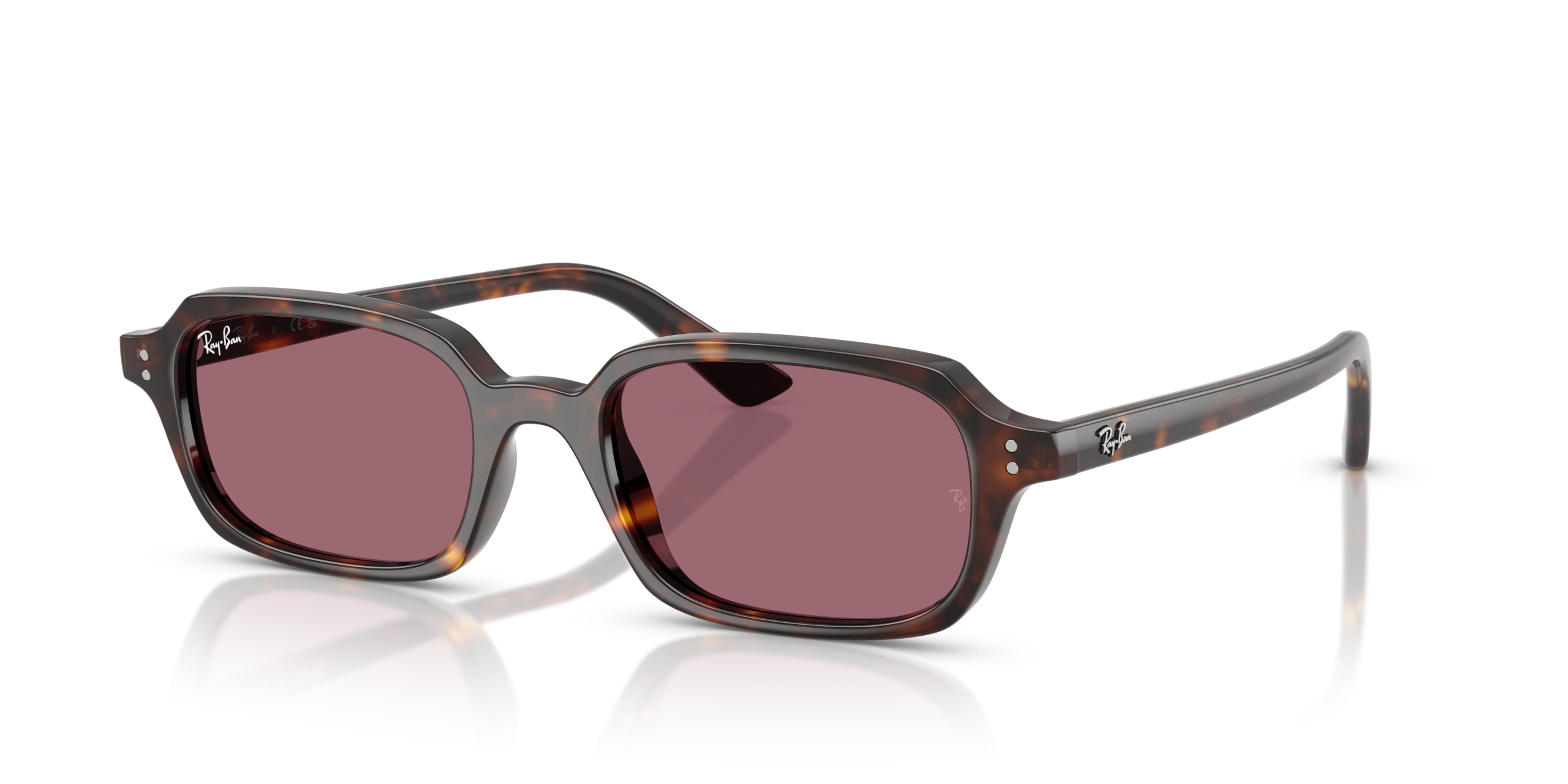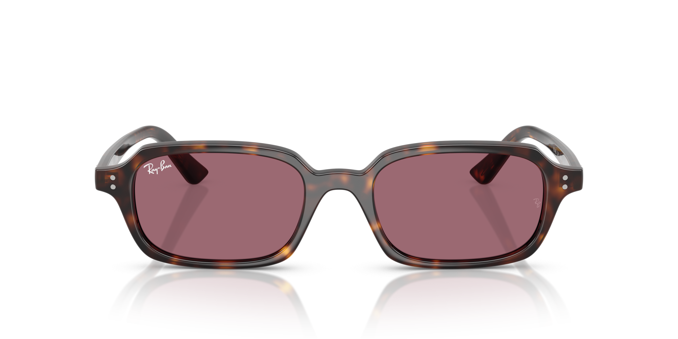 This sleek, rectangular style combines strong vintage vibes with a fresh, modern twist. With its narrow shape and lightweight bio-based* acetate construction, Zuri offers a genderless look that’s effortlessly stylish. The pillow-shaped purple lenses pop against Havana frames, while the iconic Ray-Ban logo adds a signature finish.